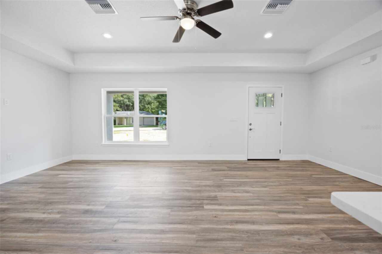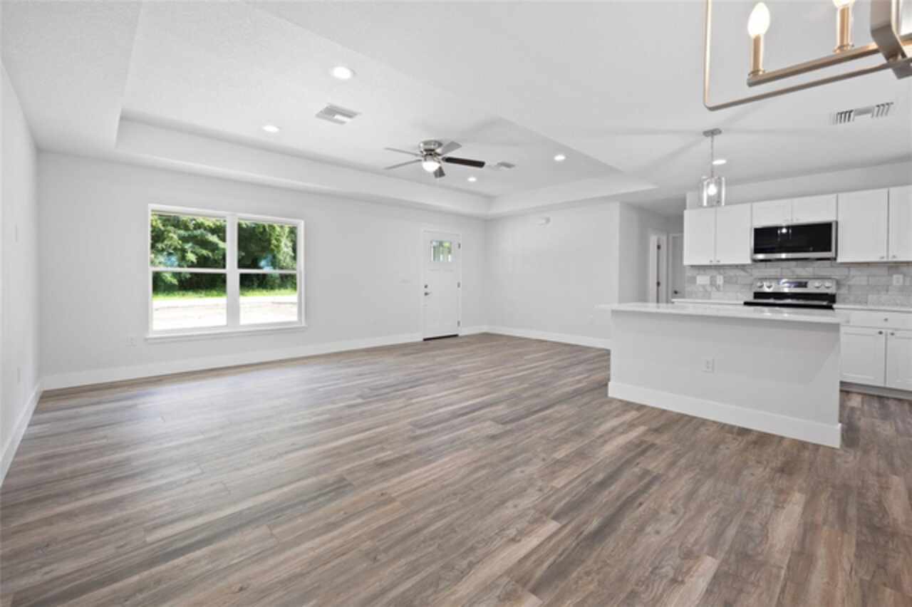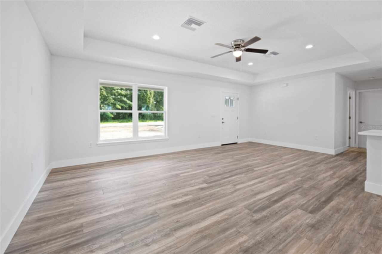 Under contract-accepting backup offers. Brand new, high-quality construction in Silver Springs Shores! NOW WITH A FENCED IN BACKYARD!! This 3-bedroom, 2-bathroom concrete block home is built by a local builder who does not cut corners—quality and attention to detail throughout! Features include luxury vinyl plank (LVP) flooring, tray ceilings, tile bathroom surrounds, ceiling fans in all bedrooms and living areas, and covered front and back porches for relaxing outdoor space. The home comes fully equipped with all appliances, so it's truly move-in ready. Fresh sod will be laid shortly. Located close to shopping, dining, and amenities, this is the perfect place to call home in a growing Ocala neighborhood