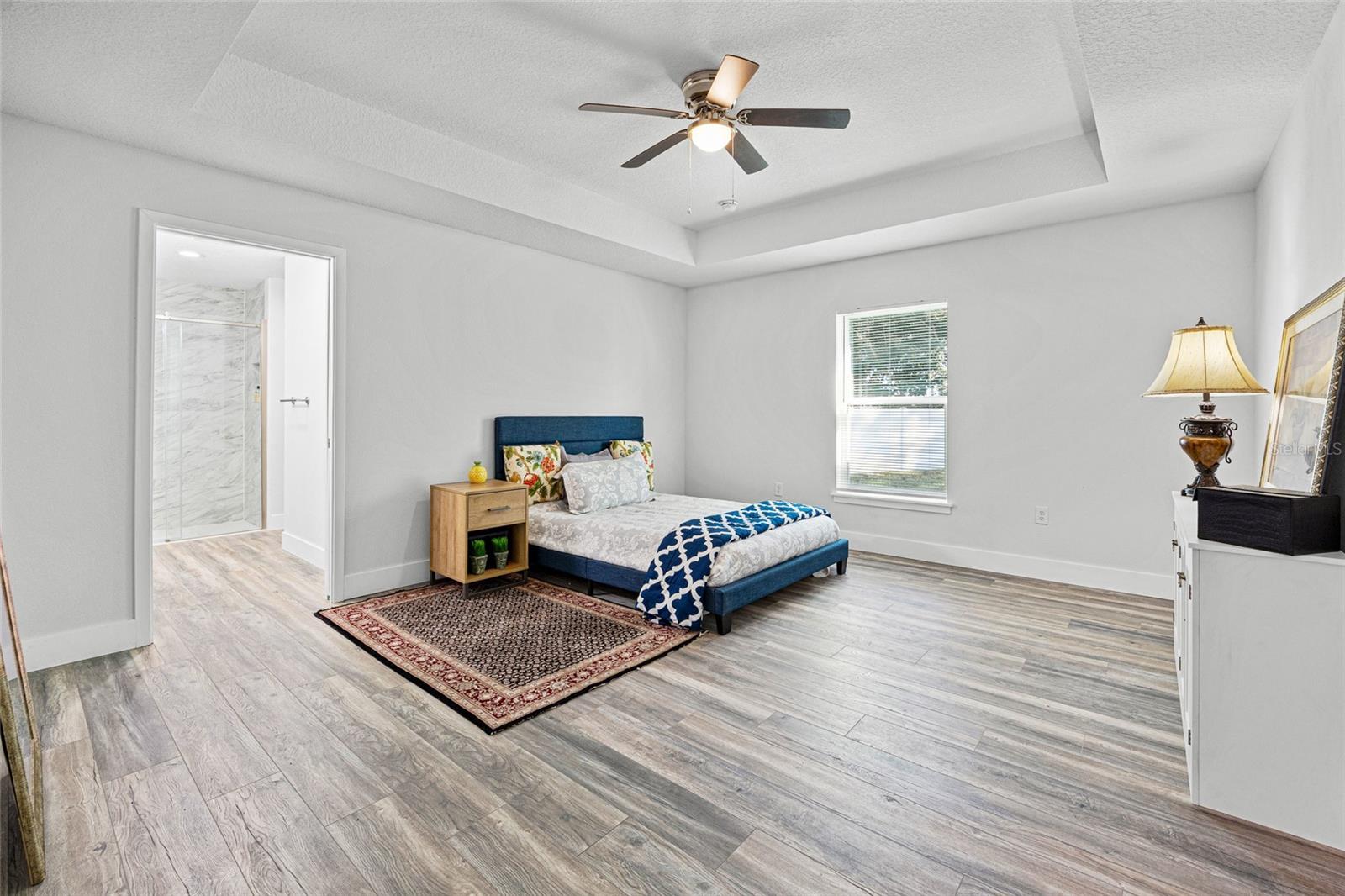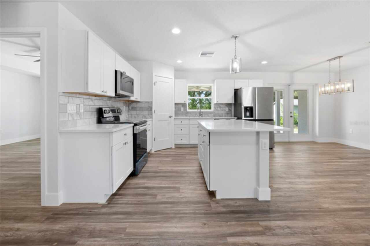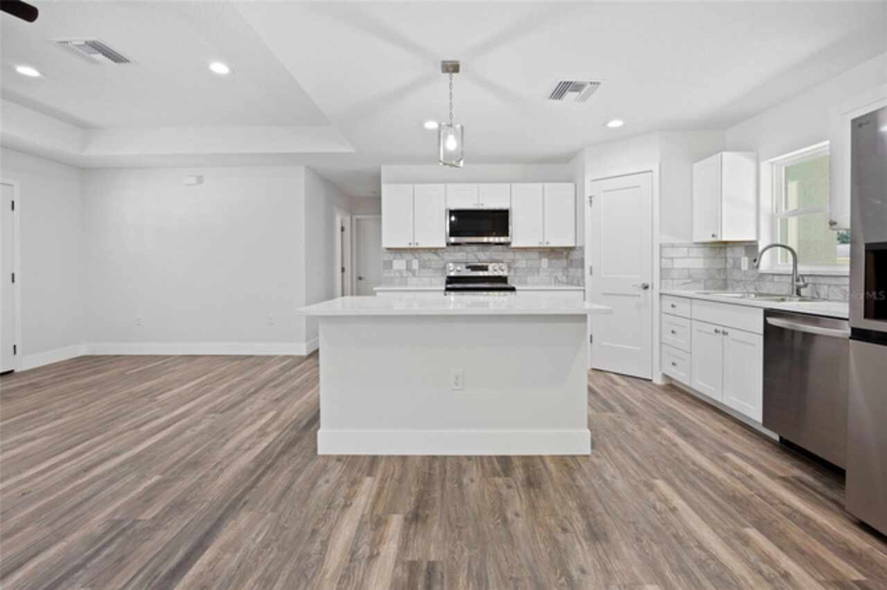 Under contract-accepting backup offers. Brand new, high-quality construction in Silver Springs Shores! NOW WITH A FENCED IN BACKYARD!! This 3-bedroom, 2-bathroom concrete block home is built by a local builder who does not cut corners—quality and attention to detail throughout! Features include luxury vinyl plank (LVP) flooring, tray ceilings, tile bathroom surrounds, ceiling fans in all bedrooms and living areas, and covered front and back porches for relaxing outdoor space. The home comes fully equipped with all appliances, so it's truly move-in ready. Fresh sod will be laid shortly. Located close to shopping, dining, and amenities, this is the perfect place to call home in a growing Ocala neighborhood