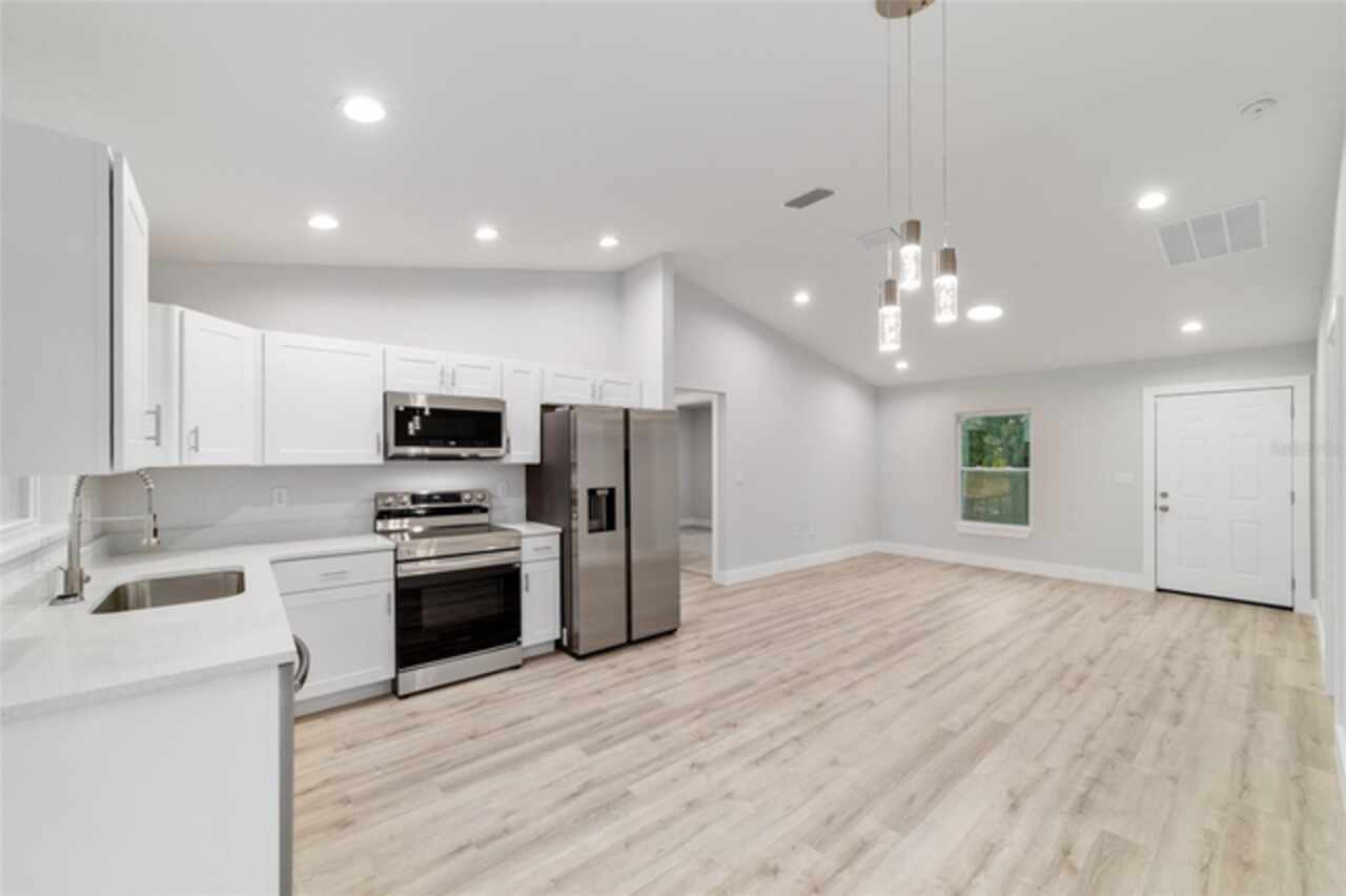 Welcome to this brand-new “Aleida” model by Bakan Homes. With 1, 058 square feet of living space, this charming wood-frame home is designed to offer modern comforts at an accessible price point. Step inside to discover an open concept living area featuring waterproof vinyl plank flooring in the social spaces and plush carpet in the bedrooms. The stylish L-shaped kitchen is equipped with sleek quartz countertops and stainless-steel appliances including a dishwasher. Enjoy the contemporary touch of LED pendant lighting in the dining area, adding a touch of elegance to the space. Located in a growing community, this home offers the perfect combination of affordability, modern finishes, and convenience. Don’t miss the opportunity to own this new construction home in Ocala—perfect for first-time buyers or those looking to downsize. Your investment is protected by a limited Builder Warranty that expires 1 year after the issuance of the Certificate of Occupancy. Pictures are of a recently completed model. Colors, finishes, and appliances may vary from home to home. Estimated completion dates are only an estimate and can be delayed due to unforeseen circumstances.