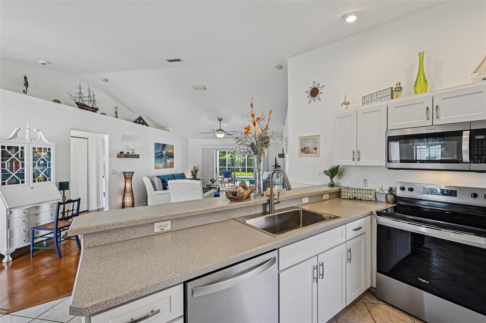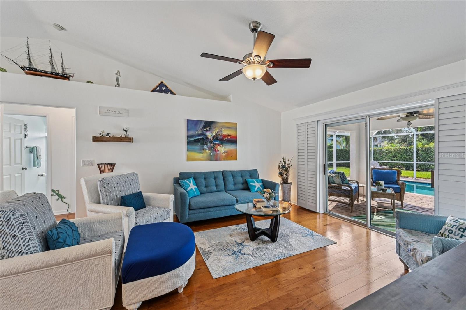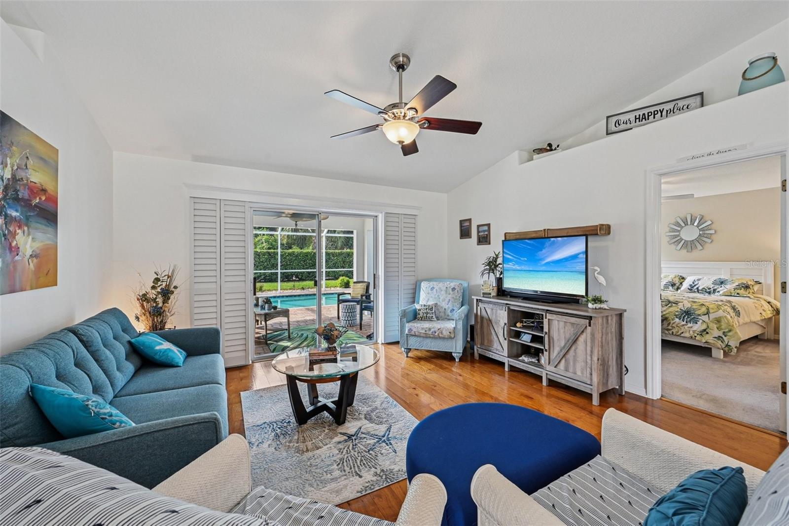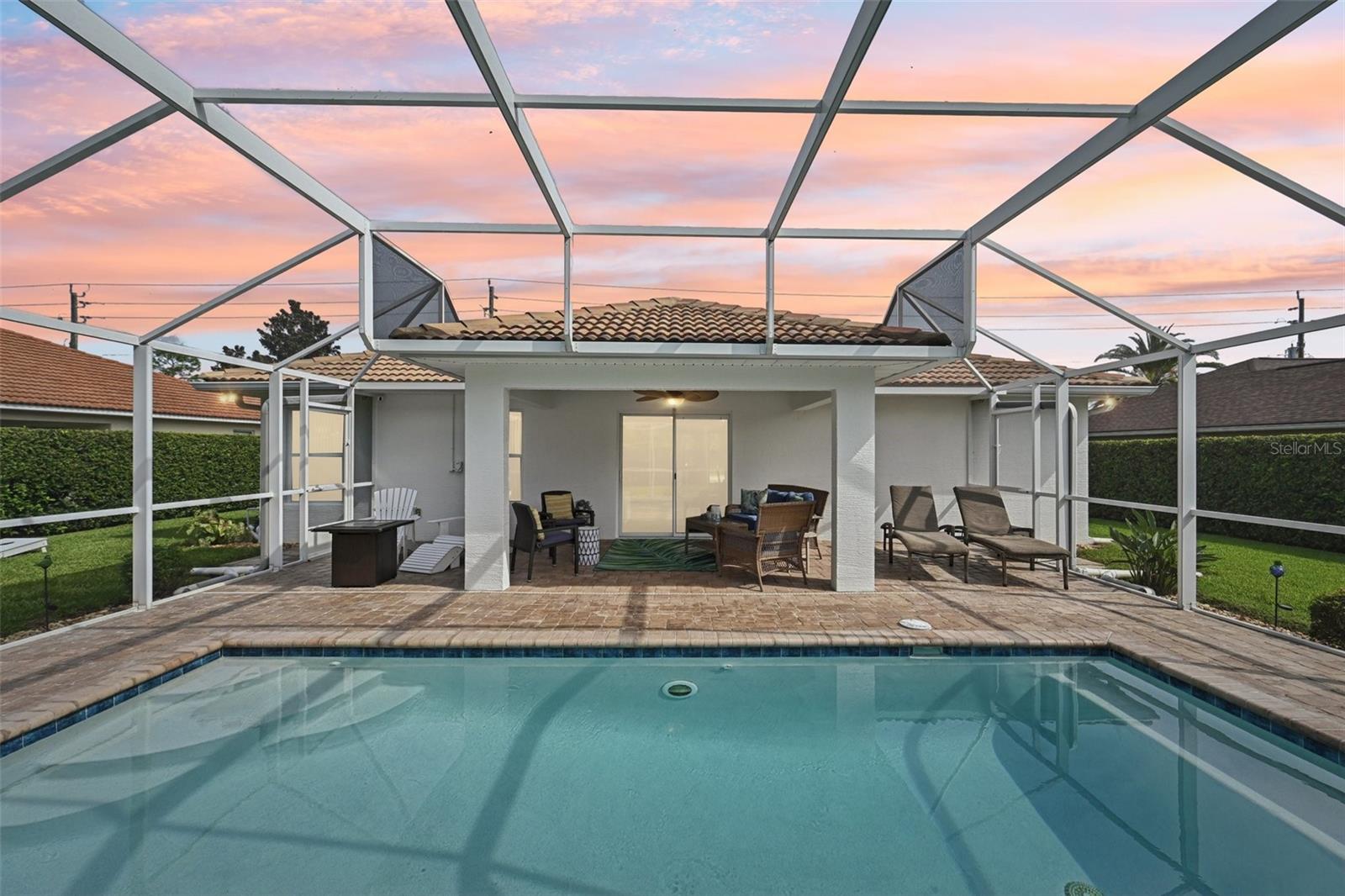 Meticulously maintained 3-bedroom, 2-bath pool home built in 2004. This open floor plan offers a spacious living area, dining space, and kitchen with plenty of cabinetry and views of the pool. The owner's suite features a private bath and custom built closet. Two additional bedrooms are ideal for family, guests, or office use. Enjoy the screened lanai with inground pool and beautifully landscaped backyard with irrigation on well. The oversized garage includes a screen, and the home is equipped with a new AC system (2021), water heater (2025), and electrical hookup for a generator. Pride of ownership shows inside and out. Close to parks, schools, shopping, dining, and just a short drive to the beach.