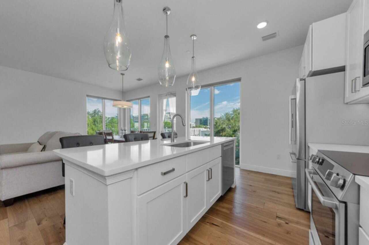 Welcome to this newly constructed move-in-ready residence in the heart of downtown Saint Petersburg. It is one of only 40 exclusive homes in a quiet, upscale condominium community. Located on the third floor, this spacious 3-bedroom, 3-bathroom unit features two master suites, each equipped with spa like bathrooms and a custom Closet by Design walk-in closet. The thoughtfully designed layout includes a large center island in the open-concept kitchen, perfect for entertaining, and flows seamlessly into the living space that opens to a Trex deck balcony—ideal for enjoying St. Pete’s vibrant sunsets. Every detail has been curated for comfort and style, from the impact-rated windows and custom motorized cellular window shades to new light fixtures in each bedroom. A brand-new water treatment system ensures high-quality water throughout, and a fully outfitted laundry room with cabinets and shelving provides added convenience. With generous closet space, modern finishes, and an abundance of natural light, this home offers elevated city living at its finest. Residents enjoy peace of mind in a no flood and no evacuation zone, plus a low monthly HOA of just $395. Additional amenities include a dog-washing station, one designated garage parking space, and exceptionally low street and visitor parking costs at just $15 per year. Nestled in a quiet residential pocket of downtown, you're only blocks from world-class museums, parks, theaters, and some of the city’s finest restaurants. Nearby landmarks include Tropicana Field, Al Lang Stadium, Johns Hopkins All Children’s Hospital, USF Saint Petersburg campus, and Albert Whitted Airport. This is your opportunity to own a downtown retreat in one of Florida’s most vibrant and walkable cities.
