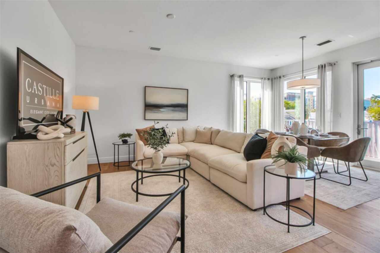Is understated elegance, with high quality craftsmanship, attention to detail, more your style & vibe? Castille Urbana is elegant downtown St Pete condo living at its best! CASTILLE URBANA consists of 40 residences, with THE lowest HOA of new construction condos in downtown St Pete AND is pet friendly..... The GARDENA unit 406 on the 4th floor provides a spacious, split 3 bedroom/3 bath floorplan with an open concept. The main living space is bathed in natural sunlight flowing from the expansive 8' Low-E impact resistant, hurricane-rated windows. The soaring 9' ceilings enhance your already spacious living space and storage space abounds throughout the condo. This beautiful condo features a full complement of designer-inspired features and finishes, including engineered hardwood flooring throughout, gourmet chef's kitchen that features premium Bosch stainless steel appliances, quartz countertops, solid wood cabinets, under-cabinet lighting and artisan, custom designed, blown glass pendants over the center island. Be uplifted every morning by watching the stunning sunrises over Tampa Bay from inside your condo or out on your balcony..... Your low monthly association fee of $395 also offers you a comfortable community room and fitness area. A dog washing station and fenced pet relief area (especially nice during our tropical rains). There is a communal outdoor patio where you can gather with family, friends and make new friends. The gated, covered garage area not only has space for your car but also several bike racks to safely park your bike..... The location puts you in the heart of vibrant downtown St Pete. You are within walking and biking distance of a plethora of dining, coffee shops, wine, beer and whiskey bars. Downtown offers you world class museums, music, art, shopping, parks, the Pier & waterfront trails..... BONUS: Castille Urbana is NOT in a flood zone....Be sure to schedule your private showing today as only a few units are left......Interior pictures are from the staged model unit....All units are empty