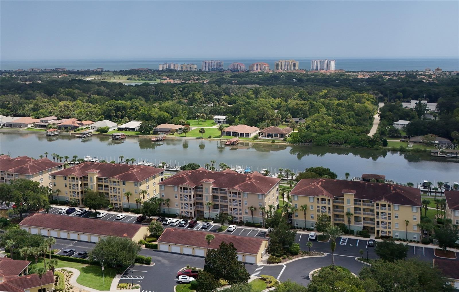 Intracoastal living with a lock and go lifestyle of luxury and convenience in highly sought after Canopy Walk. This unique community and condo literally has it all. The immaculate, renovated, move in ready end unit with breathtaking views of the Intracoastal is located in a desirable Palm Coast location that steps onto the St. Joe walking trail, a mile to the beach and an easy stroll to Waterfront Park or European Village for lunch or dinner or Sunday farmers market. A gated community directly on the ICW with gazebo and dock make for fun morning or afternoon fishing, relaxing or easy boat access. Boat slips are available for purchase. Sit on your very private screened balcony and enjoy spectacular sunrise views and all day ICW activity that includes boat and kayak activity, dolphin and manatee sightings, holiday boat parade viewing and evening rocket launches. Resort style amenities include zero entry heated pool, hot tub, covered poolside seating, clubhouse, gym, tennis/pickleball courts, basketball court, volleyball court, walking trails, several BBQ areas and a car wash station. An open floor plan allows views of the ICW from the great room, dining room, kitchen and primary bedroom. The completely renovated spacious kitchen has a large center island and stainless steel appliances. The primary bedroom overlooks the ICW with sitting area, two large walk in closets and luxurious primary bathroom with dual sinks. Split floor plan with two secondary bedrooms and bath. There is an individual garage for each unit as well as additional parking and ample guest parking. A well maintained and a properly funded, healthy and stable COA (there were no assessments after reserve study and no increases in monthly the last few years) with one of the lowest monthly maintenance for an ICW or beachfront unit in the area. COA maintains all building exterior and grounds and includes cable and internet. Located between St. Augustine and Daytona Beach with easy access to I-95. Conveniently located to shops, restaurants and beaches. No other community can check all of these boxes! Come live the Canopy Walk lifestyle and have it all!