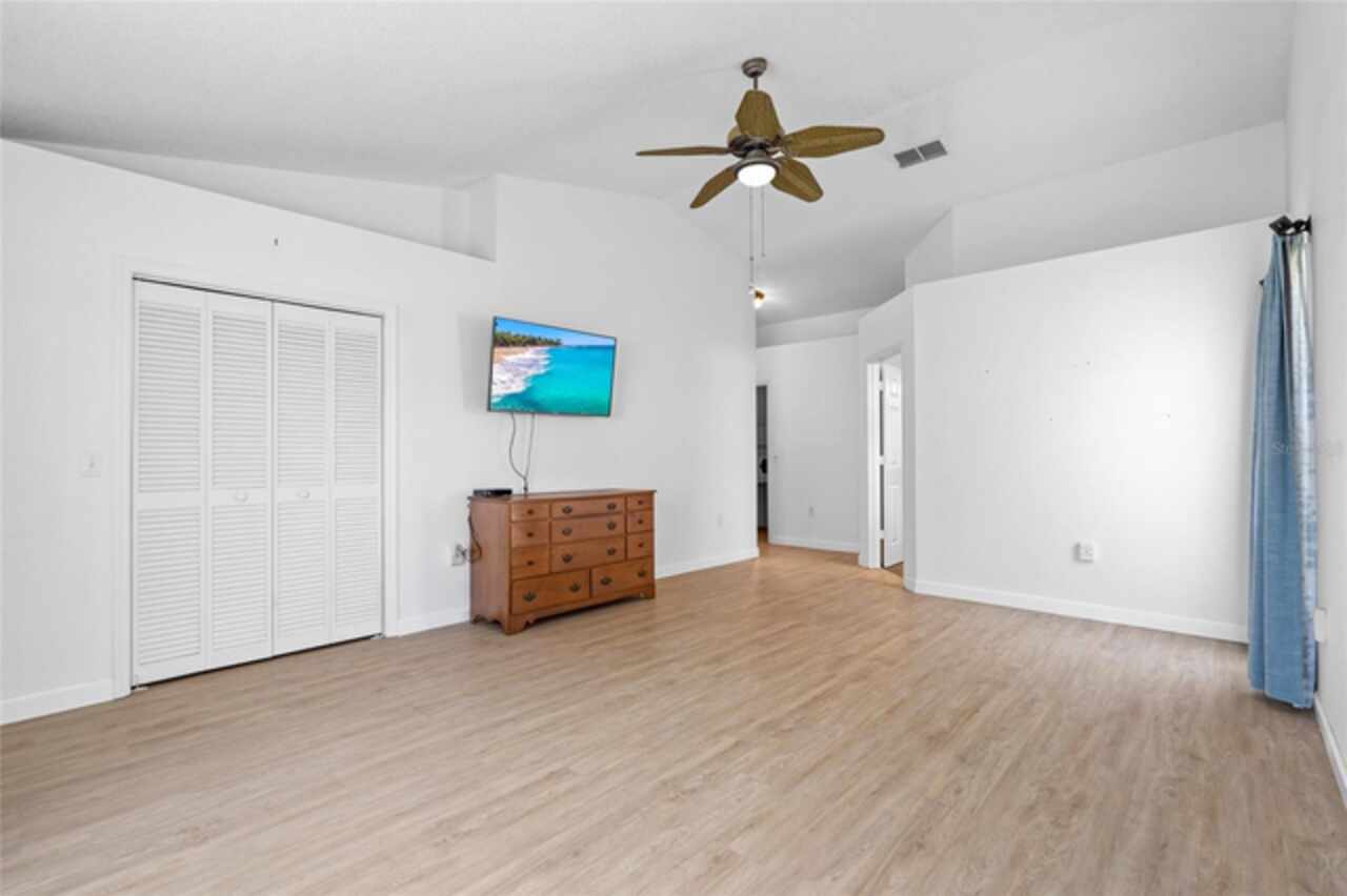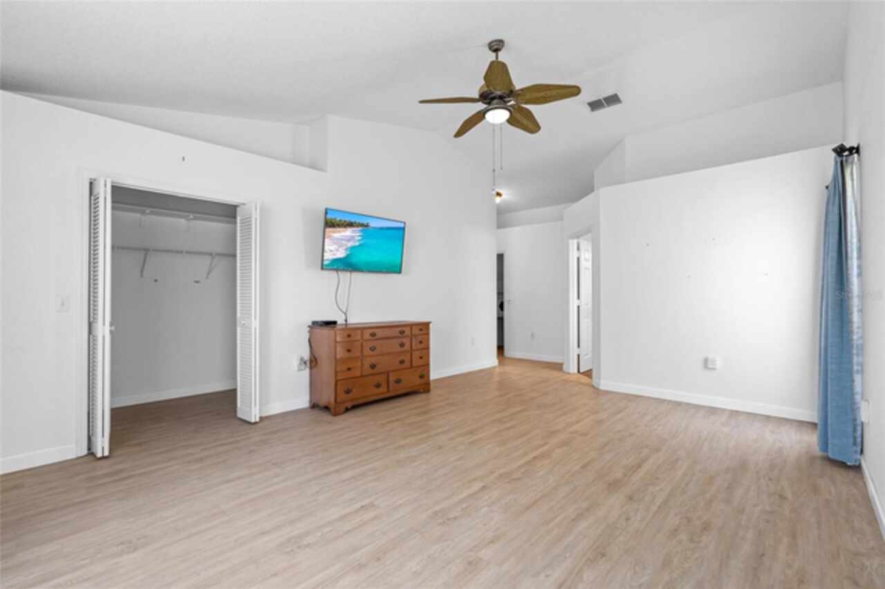Ceiling Fans(s), High Ceilings, Open Floorplan, Primary Bedroom Main Floor, Solid Surface Counters, Split Bedroom, Vaulted Ceiling(s), Walk-In Closet(s)