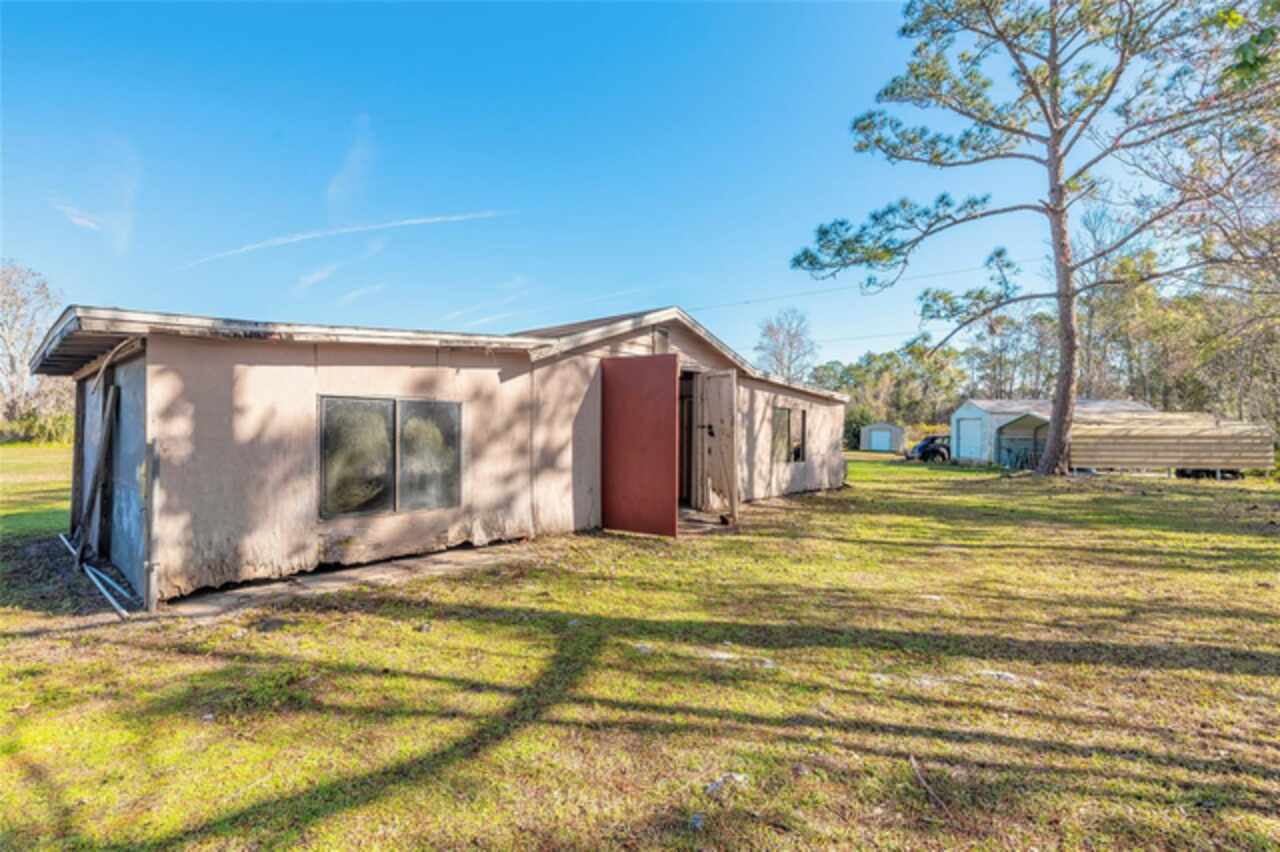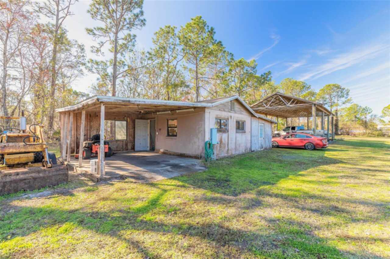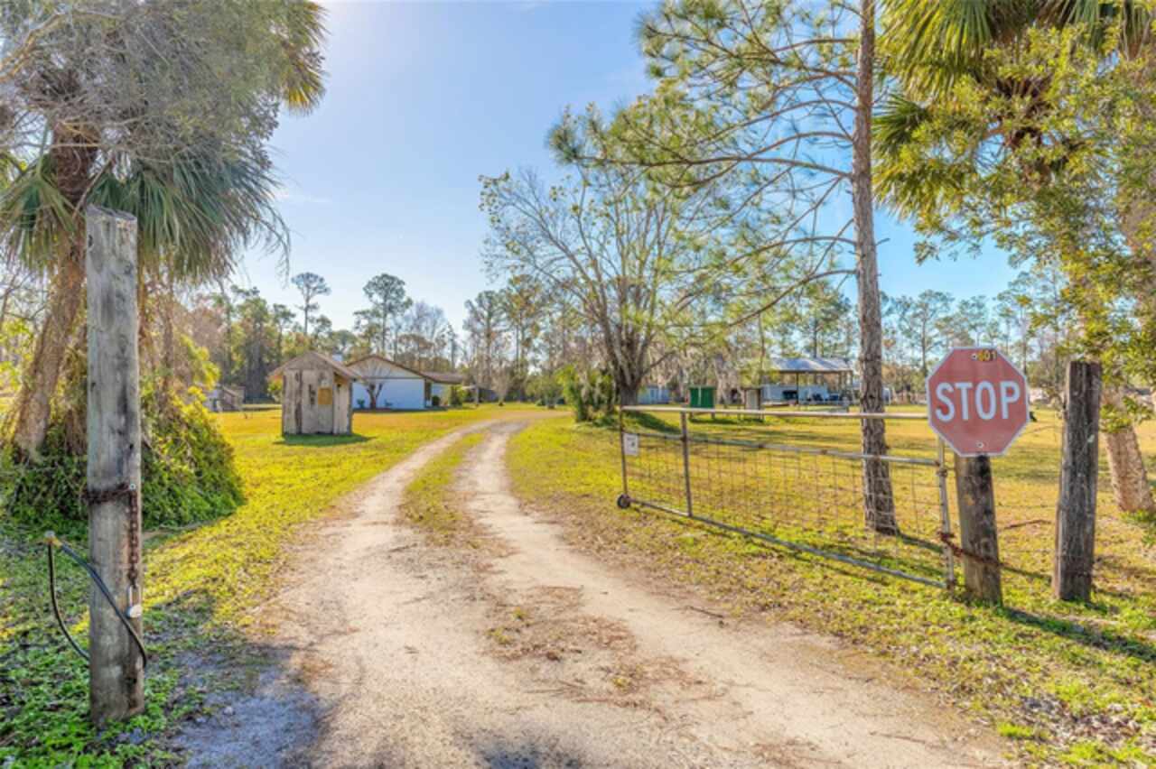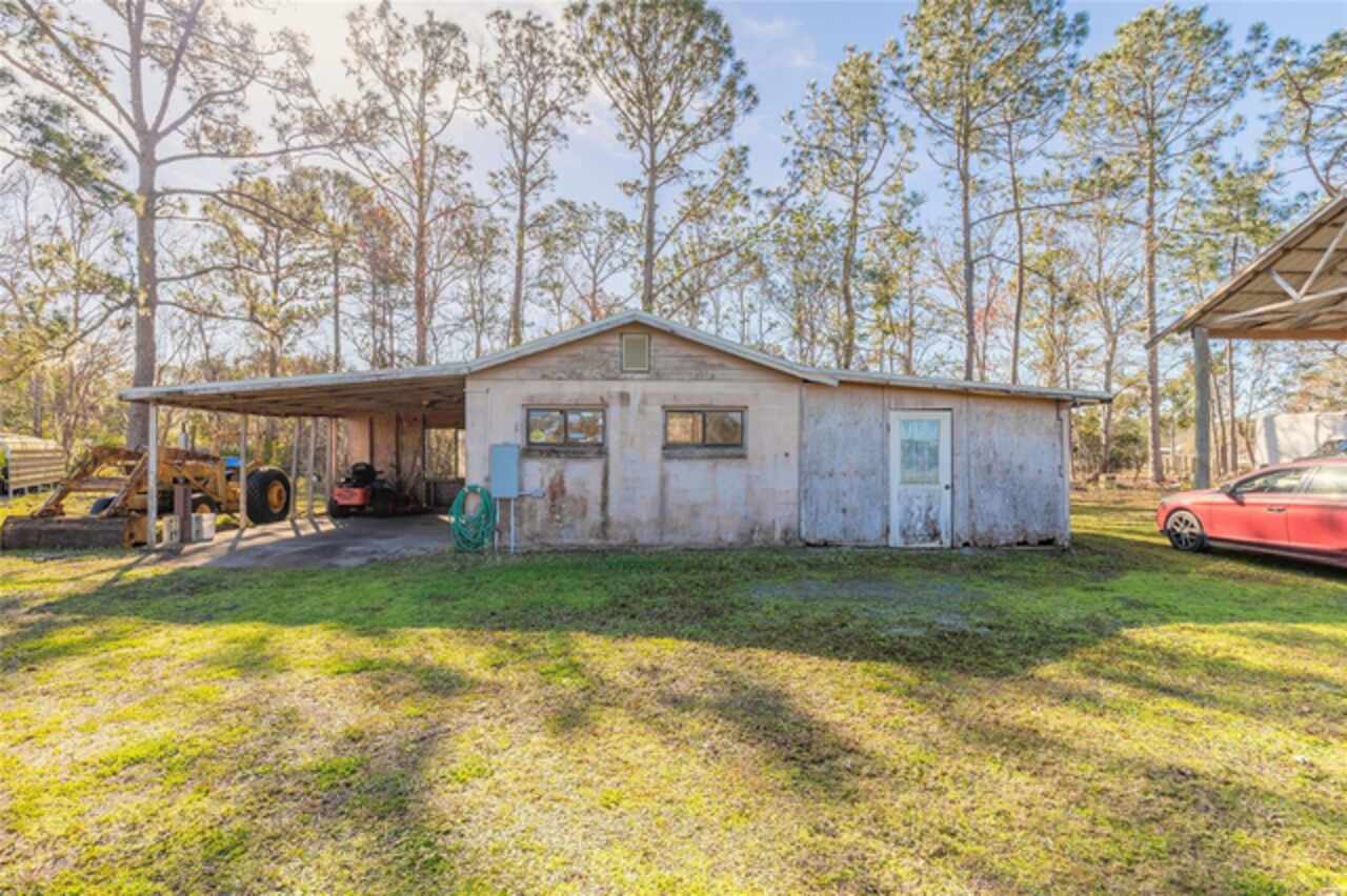 Under contract-accepting backup offers. Motivated Seller. Escape to the tranquility of rural New Smyrna Beach with this charming 5.5-acre property that combines country living with convenient access to modern amenities. Located just 25 minutes from the beach and Sanford Airport, this property offers the perfect blend of privacy and accessibility. The 3-bedroom, 2-bathroom home features high ceilings, a split-bedroom floor plan, a cozy fireplace, and an interior laundry room. The spacious owner’s suite includes a large walk-in closet and an updated en-suite bath, while the additional bedrooms also offer walk-in closets and generous space. While the home is solidly built and functional, it does need some updates to modernize it and bring out its full potential. The property is a dream for hobbyists, animal lovers, and outdoor enthusiasts. It includes a pole barn wired for a car lift, a workshop/garage with power, two carports, and a powered shed for ample storage. Additionally, there’s an RV pad with 30-amp service and its own septic tank. The land is beautifully graded and well-suited for horses, goats, chickens, or any other furry friends, making it ideal for a homestead or personal retreat. While offering the peace of rural living, the property remains close to essential conveniences like shopping, medical facilities, and grocery stores. Whether you’re looking to create a hobby farm, store your RVs and boats, or simply enjoy the open space, this property has the potential to make your dreams a reality. With a little updating, this home could truly shine. Home is being sold As is. Don’t miss this unique opportunity—schedule your showing today!