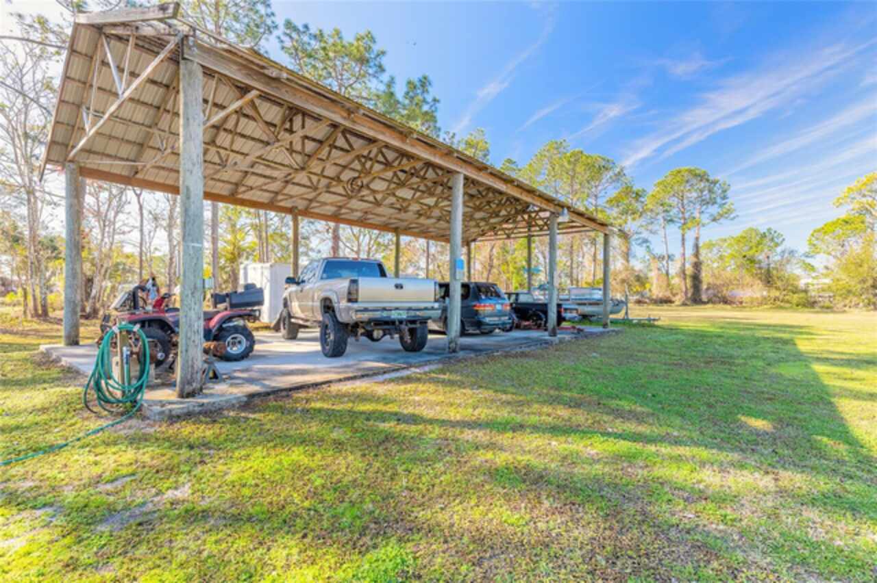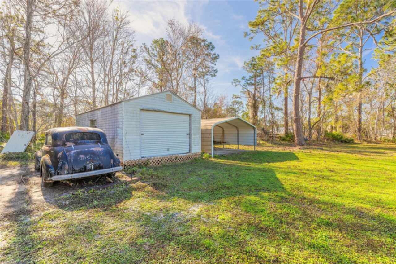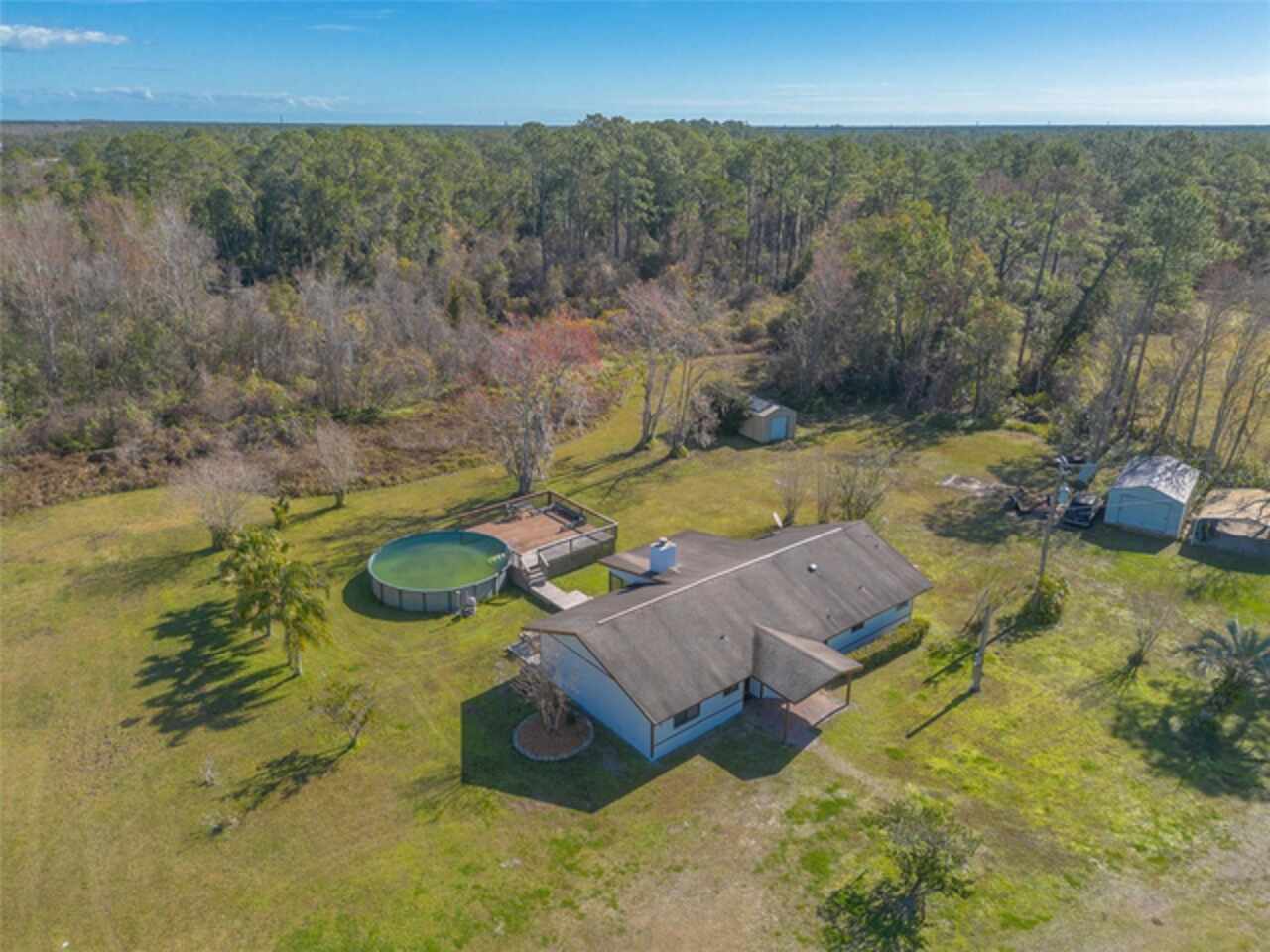 Under contract-accepting backup offers. Motivated Seller. Escape to the tranquility of rural New Smyrna Beach with this charming 5.5-acre property that combines country living with convenient access to modern amenities. Located just 25 minutes from the beach and Sanford Airport, this property offers the perfect blend of privacy and accessibility. The 3-bedroom, 2-bathroom home features high ceilings, a split-bedroom floor plan, a cozy fireplace, and an interior laundry room. The spacious owner’s suite includes a large walk-in closet and an updated en-suite bath, while the additional bedrooms also offer walk-in closets and generous space. While the home is solidly built and functional, it does need some updates to modernize it and bring out its full potential. The property is a dream for hobbyists, animal lovers, and outdoor enthusiasts. It includes a pole barn wired for a car lift, a workshop/garage with power, two carports, and a powered shed for ample storage. Additionally, there’s an RV pad with 30-amp service and its own septic tank. The land is beautifully graded and well-suited for horses, goats, chickens, or any other furry friends, making it ideal for a homestead or personal retreat. While offering the peace of rural living, the property remains close to essential conveniences like shopping, medical facilities, and grocery stores. Whether you’re looking to create a hobby farm, store your RVs and boats, or simply enjoy the open space, this property has the potential to make your dreams a reality. With a little updating, this home could truly shine. Home is being sold As is. Don’t miss this unique opportunity—schedule your showing today!