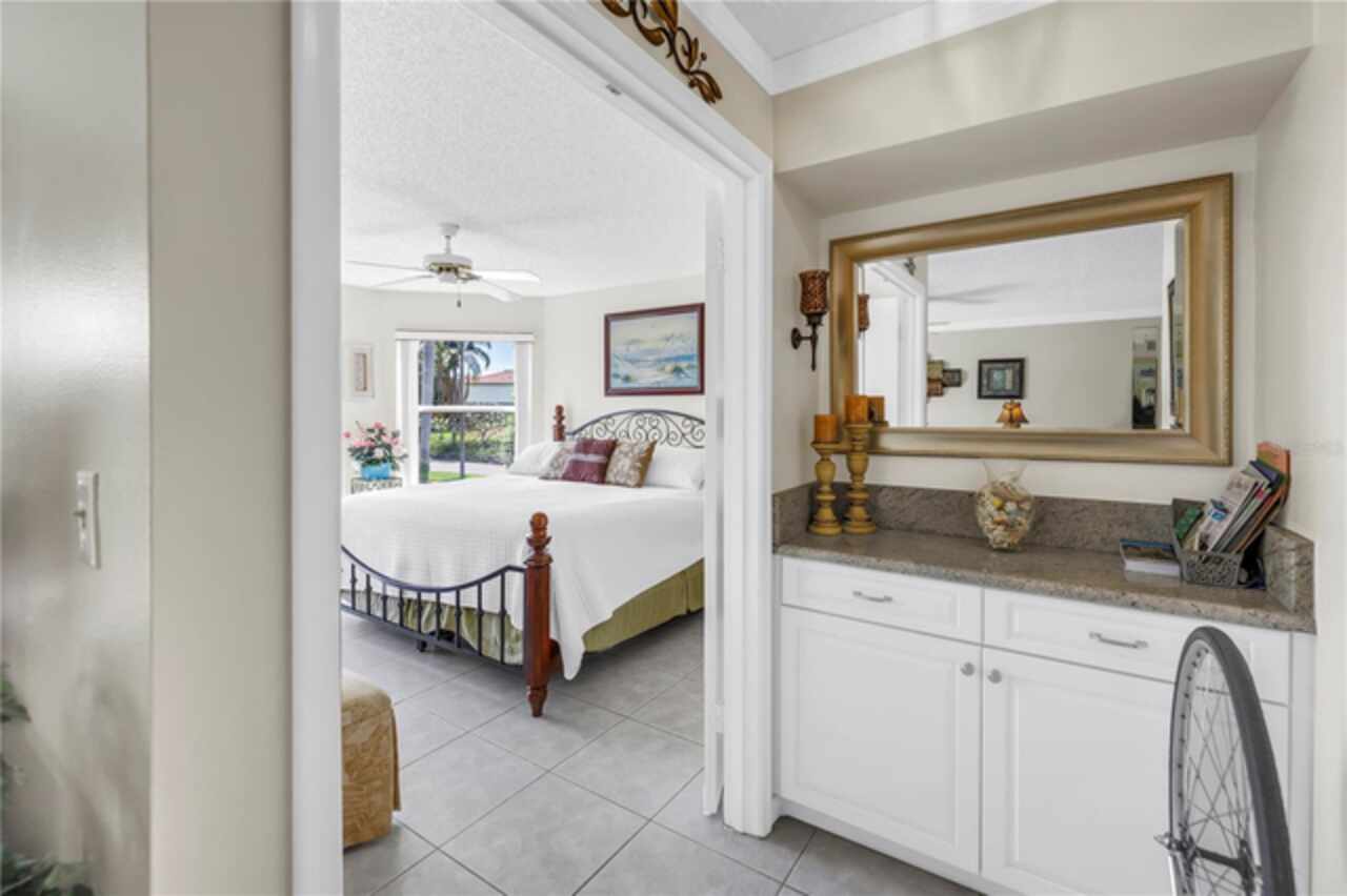 This ground-floor, 2-bedroom, 2-bath condo in Isla Del Sol offers a relaxed, turnkey opportunity to enjoy the Florida lifestyle. This corner unit features a practical split-bedroom layout and tile flooring throughout the main living areas, kitchen, and baths. Offered fully furnished, it’s ready for immediate use; whether for seasonal living, a weekend retreat, or a rental investment. The bright living room opens to a covered lanai through sliding glass doors, with peaceful views of the golf course. An exterior storage closet provides space for beach gear or golf clubs. The spacious primary suite fits a king-size bed and features an en-suite bath with double vanity and a garden tub. The guest bedroom includes a walk-in closet and has its own private access to the second full bathroom, offering added comfort and privacy for visitors. This building allows weekly rentals, making it a great option for investors. Optional membership at Isla Del Sol Yacht & Country Club provides access to golf, tennis, and social activities. Ideally located just minutes from St. Pete Beach, Fort DeSoto Park, and downtown St. Petersburg.