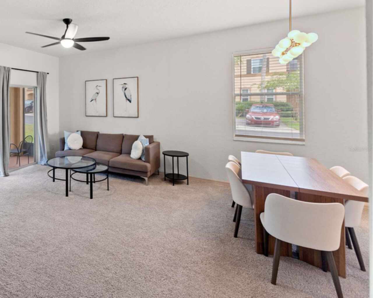 Welcome to Regal Palms Resort — a premier gated vacation and resort-style community just minutes from Disney! This sought-after destination boasts an unbeatable lineup of amenities, including a heated pool with lazy river and waterslide, hot tub, tiki bar, full-service spa, fitness center, arcade, volleyball courts, and more — all just steps from your front door. Located only 9 miles from Disney, this spacious 4-bedroom, 3.5-bath end-unit townhome offers the largest floor plan in the resort and sits on a private corner lot with no front neighbors, providing peaceful views and added privacy. Inside, you’ll find two master suites (including a lock-out main unit master), screened-in patios, and private driveway parking for up to three vehicles. The home has been tastefully updated, comes fully-furnished, and is just a short 0.1-mile walk to all resort amenities—plus walkable access to restaurants, coffee shops, and groceries. Whether you're searching for a full-time residence, a vacation escape, or a profitable short-term rental, this home offers the ideal blend of comfort, location, and resort living. Schedule your tour today and experience the tranquility for yourself! Seller is a licensed real estate agent in the state of Iowa