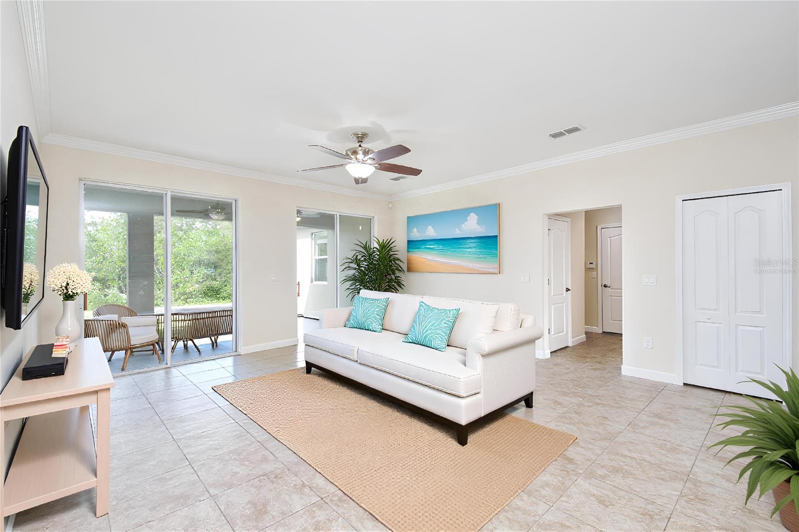 Under contract-accepting backup offers. Stunning 6-Bedroom Home with 3-Car Garage in Signature Lakes – Independence Community. Welcome to 6024 Sunset Isle, a beautifully maintained and spacious home located in the highly sought-after Signature Lakes at Independence. This home is perfect for entertaining and comfortable family living, offering over 3, 500 square feet of thoughtfully designed space, along with a 3-car garage for ample parking and storage. As you enter, you're greeted by a large open living area that seamlessly flows into the gourmet kitchen, featuring an oversized layout with built-in dining space, gas stove, and a convenient mini refrigerator—perfect for hosting guests or enjoying family meals. Crown molding throughout the first floor adds a touch of elegance. The primary suite is located on the first floor, boasting dual walk-in closets and an expansive en-suite bathroom. Also downstairs is a versatile bonus room that can be used as a sixth bedroom, private office, or den. Step outside to a spacious covered lanai, offering beautiful views and no rear neighbors. The home backs up to a peaceful retention pond, providing privacy and serene outdoor living with plenty of space to add a pool. Upstairs, you'll find four additional bedrooms, along with a large loft area ideal for a media room, playroom, or recreational space. Jack-and-Jill bathrooms add functionality and convenience for families or guests. Built with energy-efficient construction and EcoSmart components, this home offers long-term savings and sustainability. Located just minutes from Disney, shopping, dining, and within walking distance to top-rated local schools—this is a rare opportunity to own a move-in-ready home in a prime location. Don’t miss out on this exceptional property! Schedule your private showing today.
