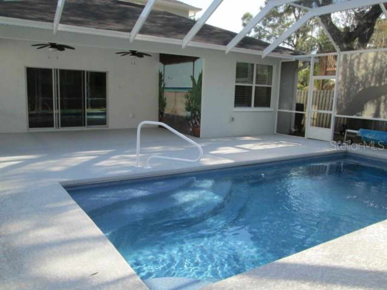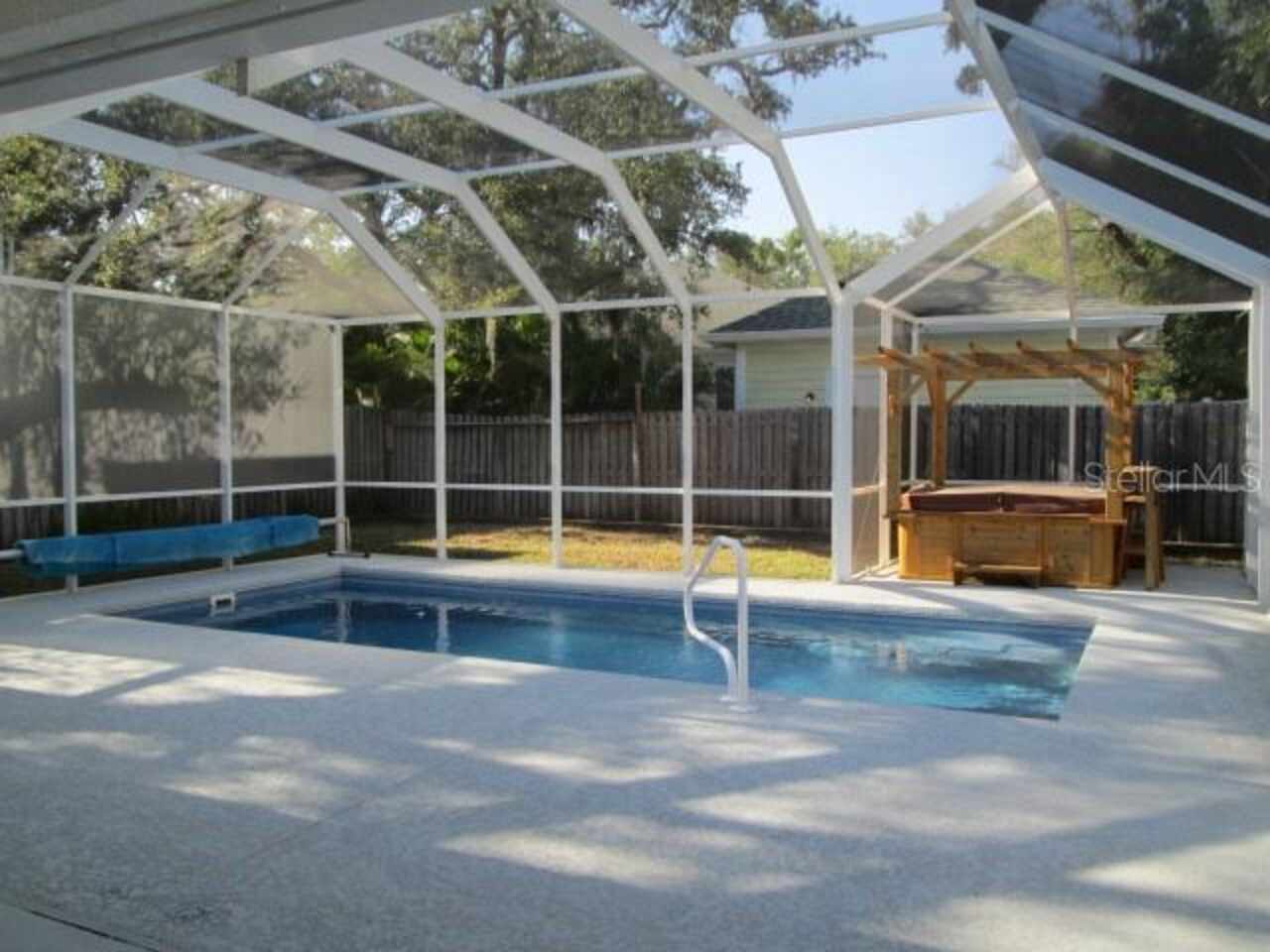 Under contract-accepting backup offers. SAFETY HARBOR!! This beautiful pool home features 2444 Sq Ft of living area with 4 bedrooms, 2.5 bathrooms, large kitchen with an island. Stainless steel appliances and Granite countertops. The saltwater pool and hot tub are under a screen enclosure along with the back porch. The first floor has the primary bedroom with 2 huge walk in closets. Primary bath has a shower and separate tub. Also on the first floor is a formal dining room, eat in kitchen and a huge living room along with a half bath. Upstairs has 3 bedrooms and a full bath along with a den/office. Laundry is upstairs. All windows have removable wind protection and are dual pane. The windows also have interior PVC shutters. The water heater and water softener are located in the garage. Overhead storage racks are also in the garage.