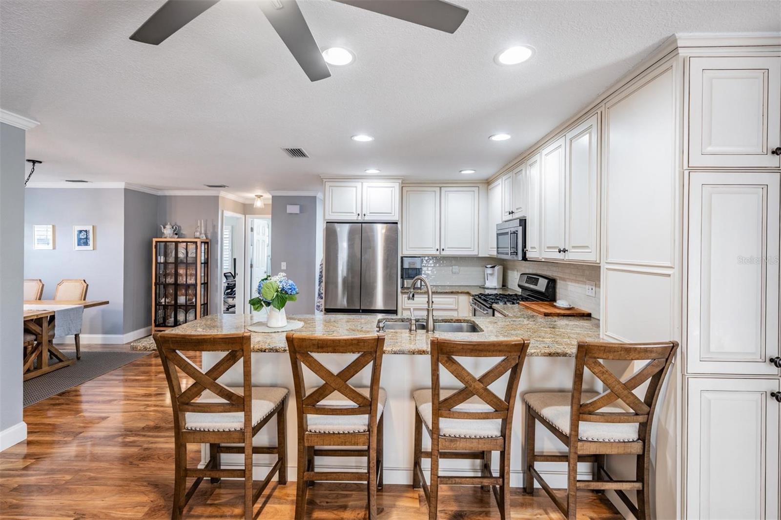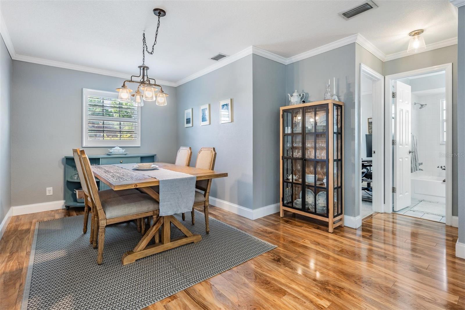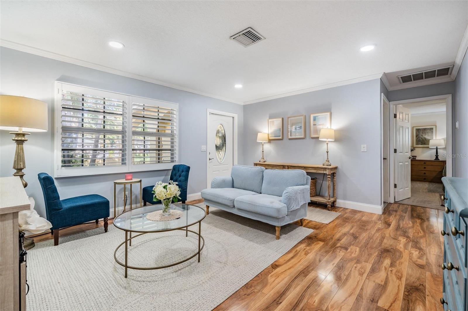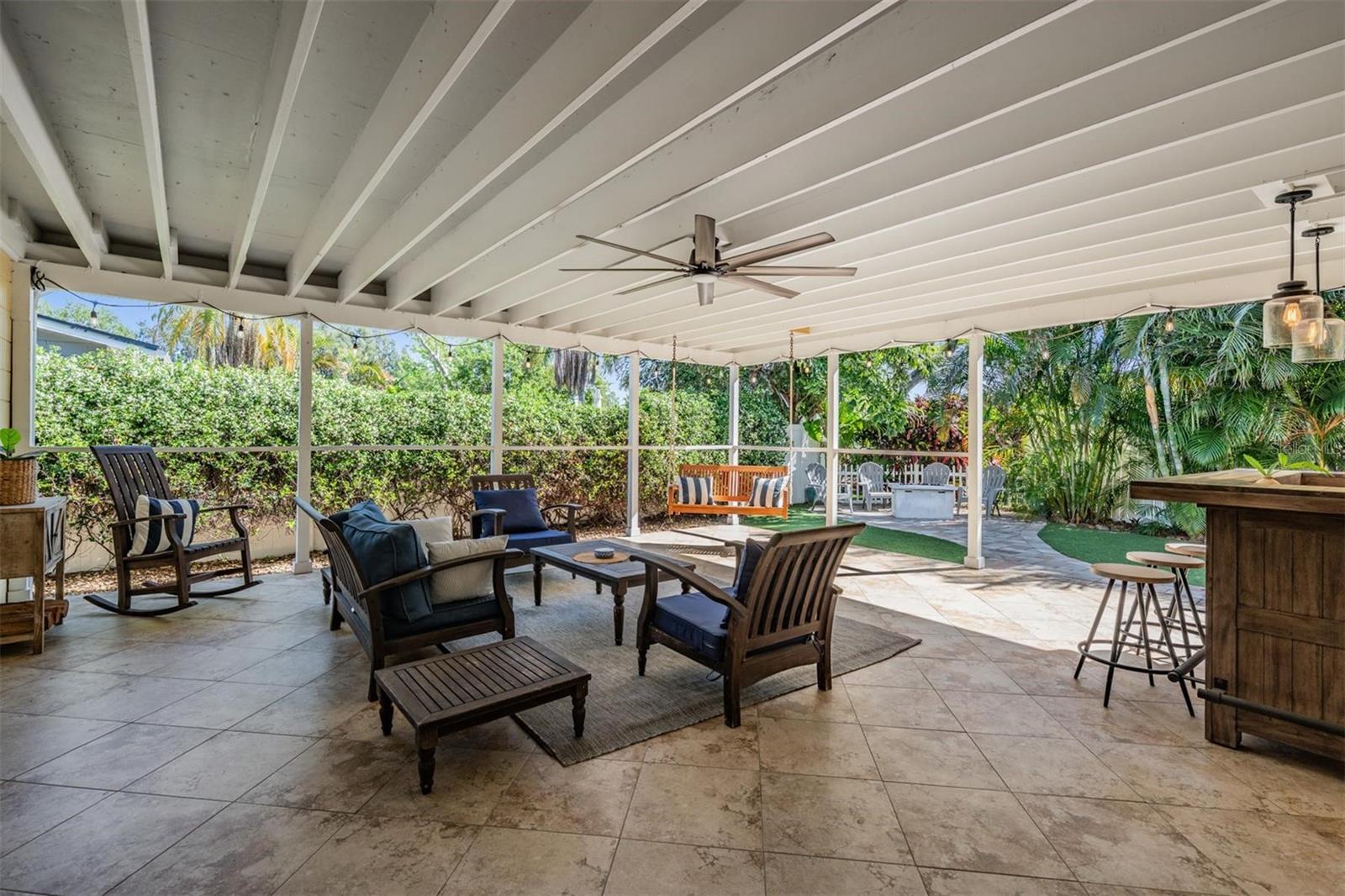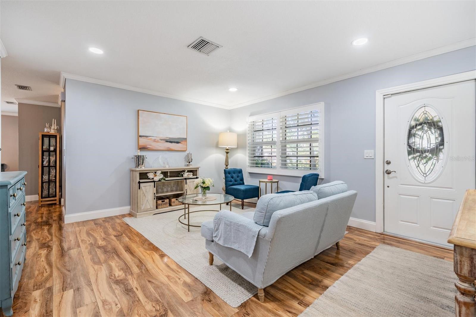 This move-in-ready home is a rare find, as it has never experienced flooding. Spanning just under 1, 800 square feet, it offers ample space for large gatherings and entertaining. The home features a bright and airy living room, a separate family room with a newly resurfaced stone wood-burning fireplace, and a chef's kitchen equipped with solid wood cabinetry, stone countertops, a breakfast bar, and stainless steel gas appliances. Additionally, there is a separate dining room, enhancing the home's generous layout. The three spacious bedrooms provide a relaxing retreat, each offering plenty of room to breathe. Notable upgrades include fresh interior paint, new crown molding, and beautiful flooring. Enjoy Florida’s outdoor lifestyle with a sprawling 400 sq ft covered patio accessible from both the living room and master bedroom. And THAT backyard!!! The yard has been enhanced with $15k in upgrades, including maintenance-free turf, pavers, a sprinkler system installed in 2023, and lush landscaping. The property is equipped with a sturdy 2019 roof with gutters, providing peace of mind during the rainy season. Zoned for Shore Acres Elementary, an A-rated school, this home is the perfect blend of practicality and beauty. BONUS: The current owner's flood insurance policy is transferable with the sale of the property, adding an extra layer of convenience for the new owner.