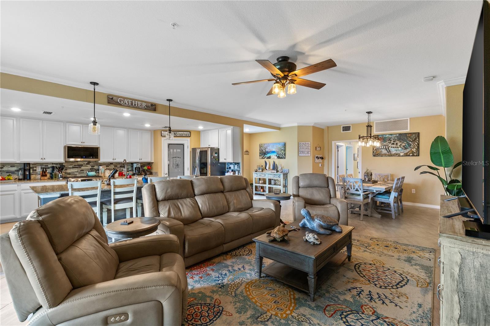Ceiling Fans(s), Crown Molding, Kitchen/Family Room Combo, Living Room/Dining Room Combo, Open Floorplan, Primary Bedroom Main Floor, Stone Counters, Thermostat, Walk-In Closet(s), Window Treatments