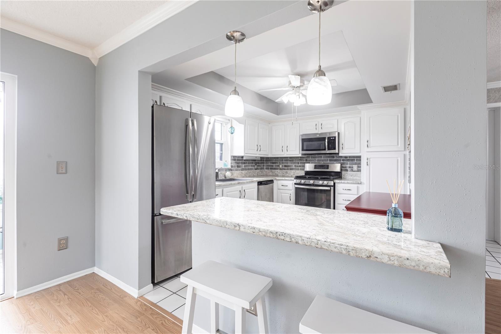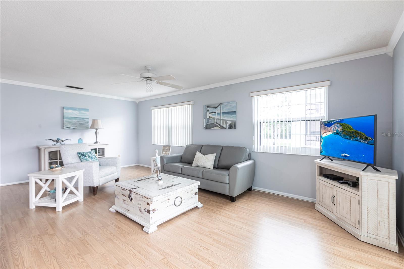 Once Upon a Sunset in St. Petersburg… Nestled quietly at the edge of a shimmering lake, in the heart of the beloved Newport building, a rare gem awaits. This second-floor, end-corner condo isn’t just a home—it’s a front-row seat to nature’s nightly masterpiece. Each evening, the sky blushes with color as great blue herons glide across the water and otters play along the shoreline. From the enclosed balcony, you’ll sip your favorite drink and watch the sun melt into the horizon, painting the lake in hues of gold and lavender. Inside, the story continues. The moment you step through the door, light dances across the open living and dining space, thanks to impact-rated windows that frame the view like artwork. Elegant crown molding adds a touch of sophistication, while wood laminate and tile flooring add both style and ease. The kitchen, with its brick backsplash and stainless-steel suite, is ready for everything from quiet breakfasts to lively dinners with friends. A five-burner range with a griddle invites culinary creativity, and the breakfast bar is the perfect perch for morning coffee and conversation. The primary suite is a sanctuary of its own—spacious, serene, and smartly designed with a custom California-style closet and a walk-in shower built for comfort and accessibility. The guest bedroom is equally inviting, whether for weekend visitors or a cozy home office. And tucked away is a laundry room with generous cabinetry, making everyday tasks feel effortless. But the magic doesn’t end at the front door. Just steps away, the Five Towns community unfolds like a resort: six pools, bubbling hot tubs, tennis courts, shuffleboard, bocce, billiards, card rooms, a library, and more. Stroll the walking paths, fire up the grill at the private barbecue area, or join neighbors for sunset socials. Here, friendships flourish and every day feels like vacation. And beyond the gates? The best of St. Pete beckons. Award-winning beaches, the vibrant downtown arts scene, waterfront dining at the Pier, and endless opportunities to live the Florida dream. Whether you're exploring the Salvador Dalí Museum or biking the Pinellas Trail, adventure is always within reach. This isn’t just a condo. It’s a lifestyle. A story waiting to be lived, and it begins right here, in the Newport Building.