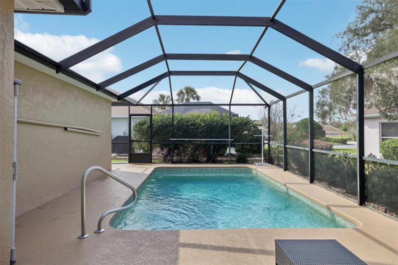 Under contract-accepting backup offers. No Bond. Yes, Back on the Market and a Lower Price. Sellers want it sold. Stunning Very Private Saltwater Pool Home in Tierra Del Sol. Welcome to your dream home in the highly sought-after Tierra Del Sol Country Club community—where The Villages lifestyle truly begins! Nestled on the quiet and charming street of España, this beautifully upgraded saltwater pool home is designed to exceed expectations. Inside, you’ll find a spacious, expanded floor plan with thoughtful upgrades throughout. The kitchen, completely renovated in 2023-2024, features soft-close drawers and cabinets, granite countertops, a large island, and an eat-in area that outshines the rest. The HVAC system was replaced in 2023, and an additional unit was installed in 2020 for the Florida Room, ensuring year-round comfort. New appliances were added in 2023, along with new windows in 2018 that enhance insulation and natural light. The roof was replaced in 2018, and the water heater in 2020, providing peace of mind for years to come. Elegant plantation shutters, installed in 2019, complement the crown molding found in every room. The master bath, updated in 2015, features luxurious finishes, while the radiant barrier in the attic adds to the home’s energy efficiency. Designed for entertaining and relaxation, the Florida Room/Enclosed Lanai opens seamlessly to the pool deck, creating the perfect indoor-outdoor living experience. A dedicated pool bath adds convenience, and the insulated garage doors help keep the home cool year-round. This home is truly a must-see! Schedule your private showing today—or request a FaceTime tour if you’re out of the area—and experience all this beautiful property provides.