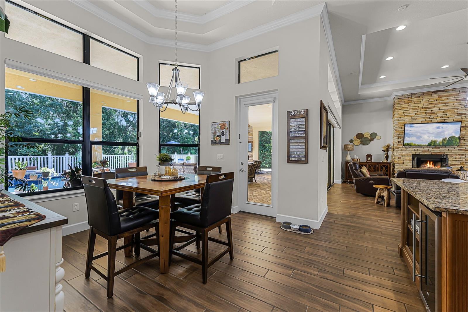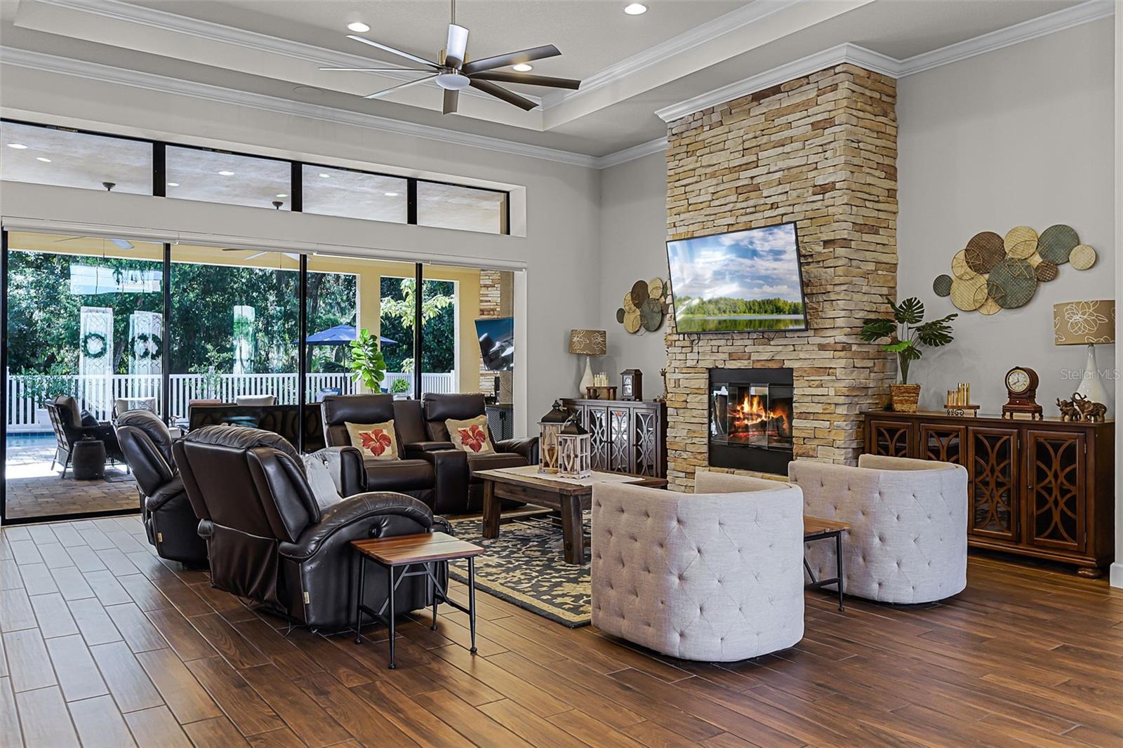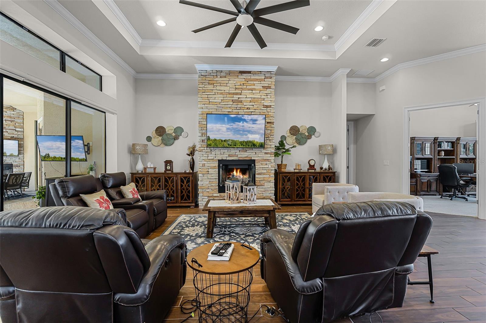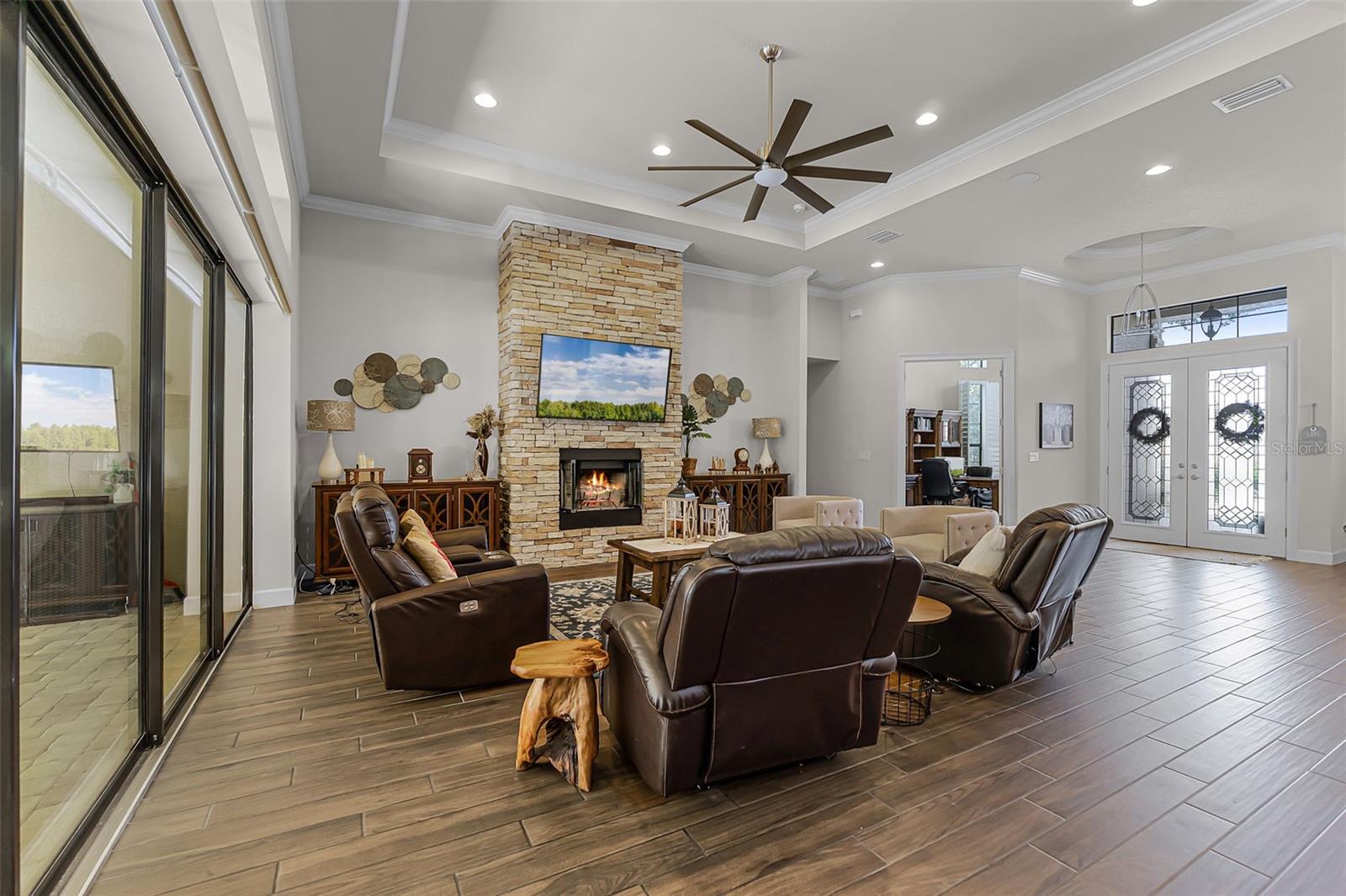 This 4-BEDROOM, 3-BATH CUSTOM-BUILT RESIDENCE by ICI HOMES offers the ultimate blend of LUXURY, COMFORT, and FUNCTIONALITY. Located in the highly desired, luxury Estate Enclave in The Sanctuary at Spruce Creek, this BLOCK HOME is tucked away on a PRIVATE CUL-DE-SAC in a GATED COMMUNITY, designed to impress from the moment you arrive. Inside, you’ll find a thoughtfully crafted SPLIT-BEDROOM FLOOR PLAN with an OPEN-CONCEPT LAYOUT, filled with abundant NATURAL LIGHT streaming through ENERGY STAR QUALIFIED WINDOWS. The interior showcases SLEEK TILE-WOOD FLOORING, brand new carpets in the bedrooms, STONE DETAILING THROUGHOUT, and COFFERED CEILINGS that elevate the home’s architectural style. The spacious KITCHEN-FAMILY ROOM COMBO is ideal for entertaining, featuring GRANITE COUNTERTOPS, abundant cabinetry, and a GAS COOKTOP. Outdoors, you’ll also find a SUMMER KITCHEN ROUGH-IN with a GAS LINE for added culinary flexibility. The inviting FAMILY ROOM boasts a COZY wood-BURNING FIREPLACE—the HEART OF THE HOME. A separate DEN/OFFICE provides the perfect space for work or retreat. The PRIMARY BEDROOM offers a CUSTOM CLOSET, while BEDROOMS 3 and 4 also feature their own CUSTOM CLOSETS, ensuring exceptional storage throughout. Outdoor living is redefined with a SALT WATER POOL and CONNECTED JACUZZI, surrounded by a WELL-MANICURED EXTERIOR. The COVERED BACK PATIO includes its own FIREPLACE and a MOTORIZED SCREEN that can be raised or lowered, plus OUTDOOR SPEAKERS as part of the WHOLE-HOUSE SOUND SYSTEM—perfect for gatherings. Additional highlights include REMOTE-OPERATED BLINDS in the KITCHEN, LIVING ROOM, and MASTER BEDROOM, an ALARM SYSTEM, a 3-CAR GARAGE, and WATER ACCESS TO SPRUCE CREEK. With NO REAR NEIGHBORS and a LOCATION that keeps you close to MAJOR ROADWAYS, LOCAL SHOPS, RESTAURANTS, AND MORE—this home is the perfect combination of ELEGANCE, COMFORT, and CONVENIENCE. Ready to welcome its new owners, this home checks every box for LUXURY LIVING in Central Florida!