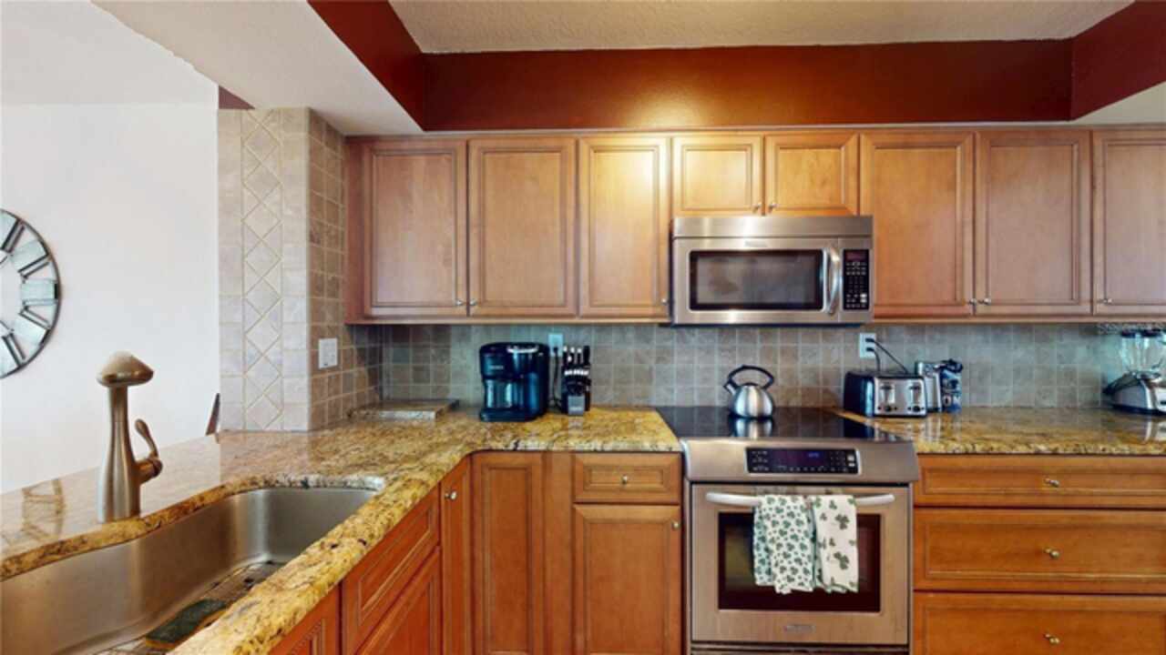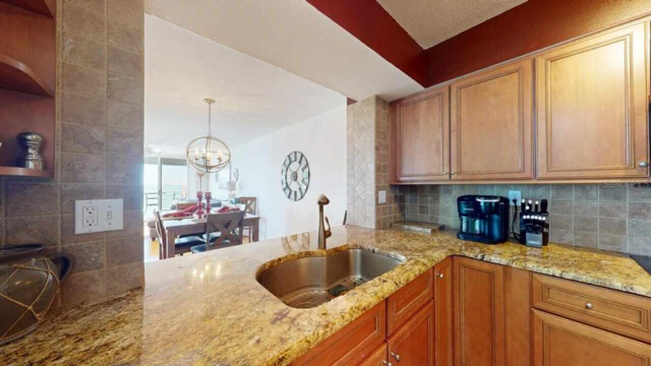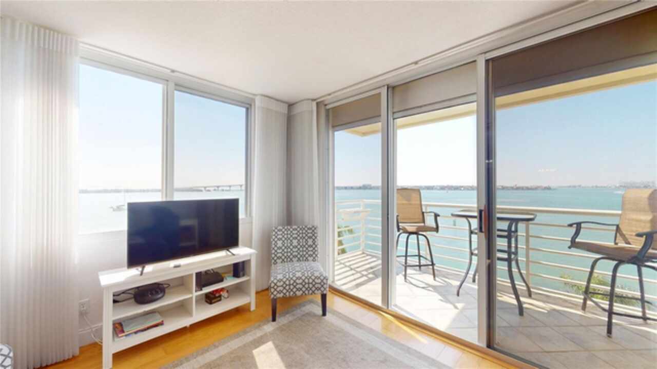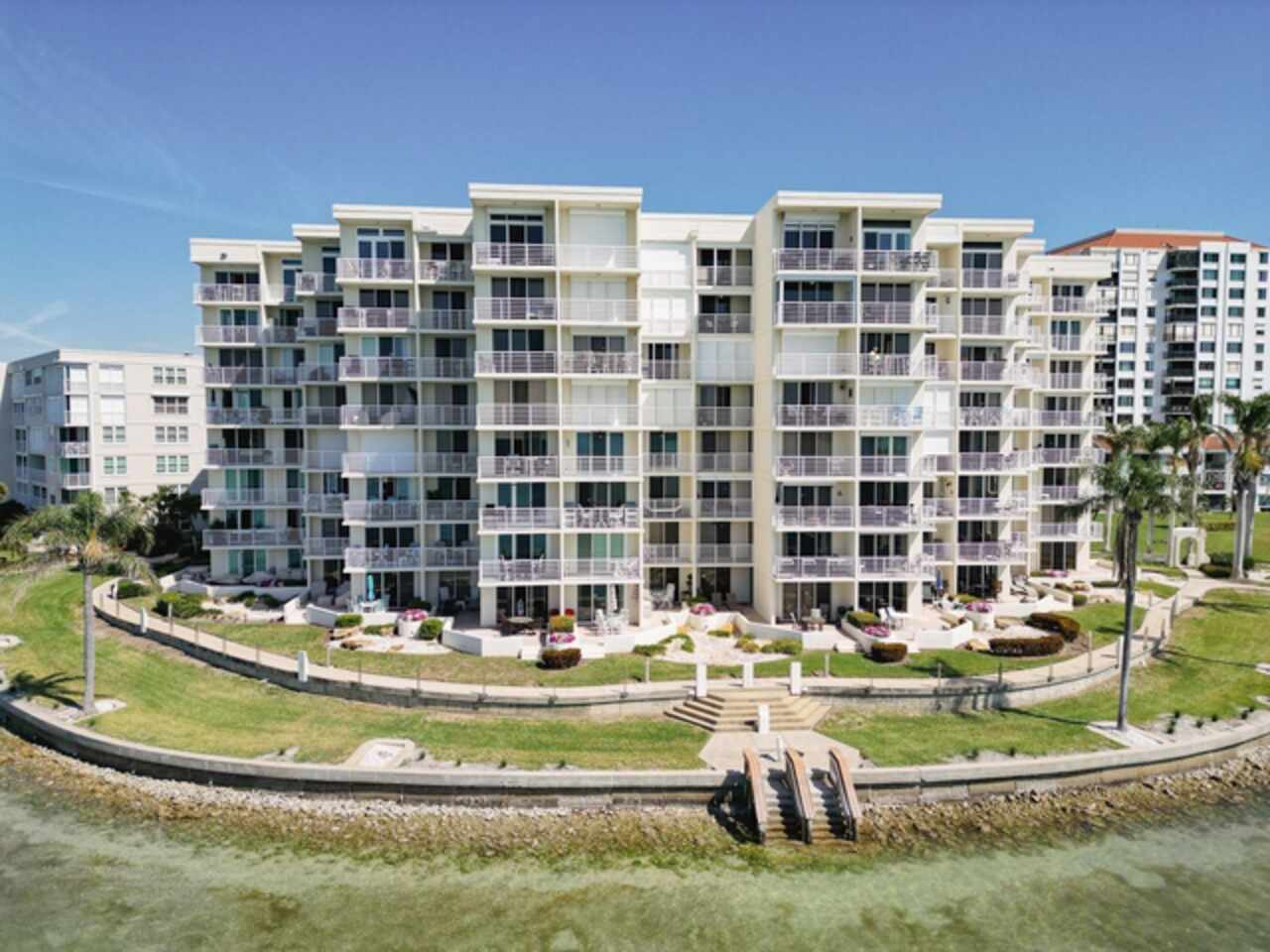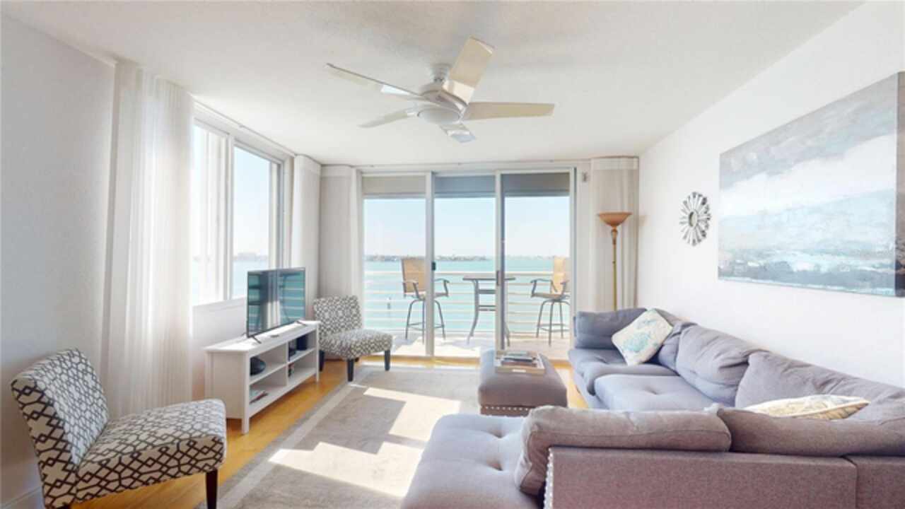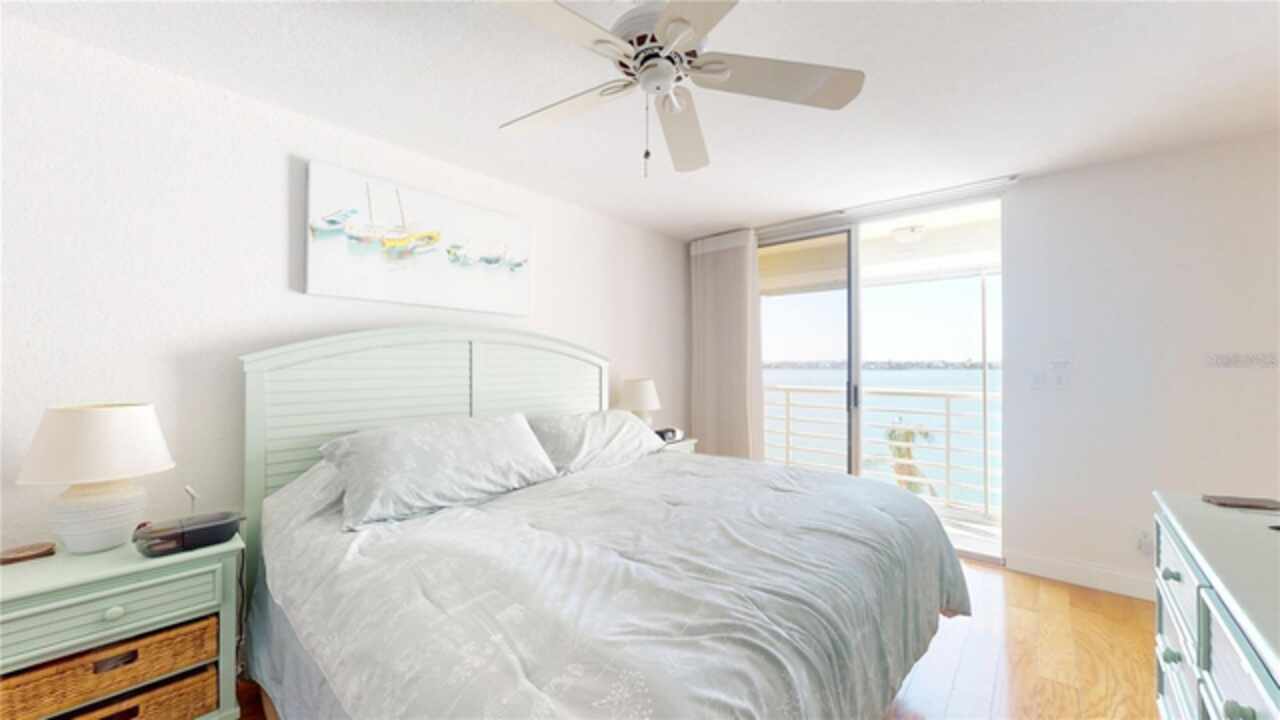 Welcome to this beautiful three-bedroom condo in the prestigious Club Bahia Vista. This exquisite residence offers spectacular water views from nearly every angle, with three waterfront balconies that fill the home with natural light and provide a front-row seat to breathtaking sunrises and sunsets. Step inside to discover an open-concept living space where classic design meets modern sophistication. The gourmet kitchen is a chef’s delight, featuring natural wood cabinetry with etched glass panels, soft-close drawers, granite countertops, stainless steel appliances, and under-cabinet lighting. A custom etched breakfast table and built-in desk with file cabinets add refined touches that enhance both style and functionality. The expansive living and dining areas are accented by gleaming wood floors and walls of sliding glass doors that frame dramatic views of the water, creating a seamless transition between indoor elegance and the serene outdoors. The master suite is a private retreat complete with its own seaside balcony, hardwood floors, a generous walk-in closet, and a luxurious bath featuring dual sinks, a garden tub, and a separate shower. An additional bedroom or den also enjoys its own balcony, ensuring every space in this home offers a glimpse of the picturesque waterfront. Further highlights include hurricane shutters, one of the best assigned covered parking spots near the front door, and energy-efficient 3M film on windows and doors. Club Bahia Vista enriches your lifestyle with an impressive array of amenities—a beautifully appointed recreation building with a kitchen, fitness center, and TV room, alongside a tropical pool and spa overlooking the lake. Ideally located just minutes from Gulf beaches, Ft. DeSoto Park, and the Pinellas Bike Trail, with downtown St. Petersburg and Tampa International Airport conveniently close, this condo presents an unparalleled blend of luxury, comfort, and location. Schedule your private showing today or grab your VR headset for a Matterport tour.
