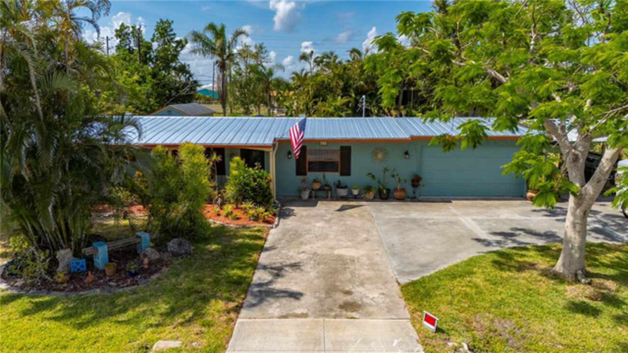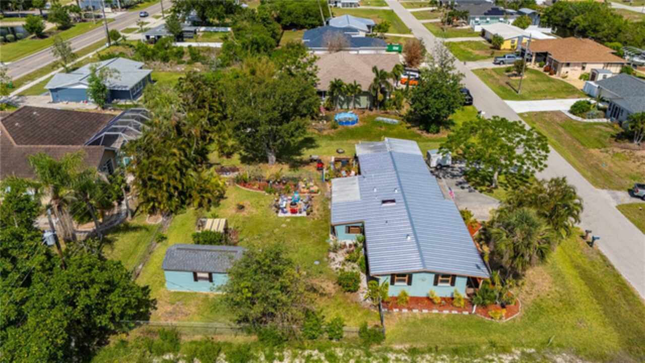 This is a must see!!! From the Covered Front Porch that runs along the front of the home to stepping inside to find a warm and Welcoming interior you will fall in Love, Featuring a split-bedroom floor plan, open Living spaces, and plenty of natural light. Enter the Primary suite thru the French Doors to the private en-suite bathroom with dual sinks, walk in Custom Tile and Stone Shower, while two additional bedrooms and Guest Bath provide ample room for family, guests, or a home office. The kitchen is well-equipped for everyday living or entertaining and offers direct access to the Dining and Living areas. Enjoy peaceful mornings or evening relaxation on the Screened patio, overlooking the fenced backyard—perfect for pets, play, or gardening. Outside, the expansive yard with the open-air Patio areas offers endless possibilities. Situated on an oversized Lot this Beautiful and utterly Unique Home has been lovingly maintained and offers Privacy, Serenity, and true Florida living, New Metal Roof 2023, plus there is a attached two(2) car garage, Circle drive along with a Carport allows for additional covered parking or an Ideal spot to give you more space to entertain, there is also a nice storage shed, which will provide space for your lawn equipment and collectables, all this on .33 of an Acre. You will be just a short drive to everything, Concerts, Craft and Boat shows, Special community events, along with miles of waterfront walkways, Punta Gorda’s Pickleplex with numerous pickle ball courts. A nice quiet community near local waterways and beaches, dining, shopping, Tennis and Golf courses make this property ideal for the Florida lifestyle. Also, easy access to public waterfront parks with bike and walking trails and picnic areas, and boat ramps providing access to the Peace and Myakka Rivers, beautiful Charlotte Harbor, and the Gulf of Mexico. We Invite you to come take a look and picture living in this Beautiful Home.