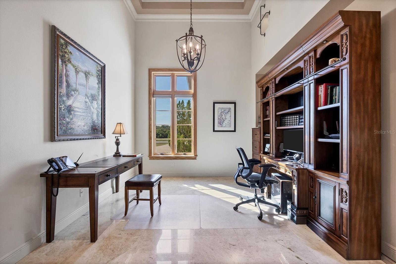 Crown Molding, High Ceilings, Solid Surface Counters, Solid Wood Cabinets, Window Treatments
