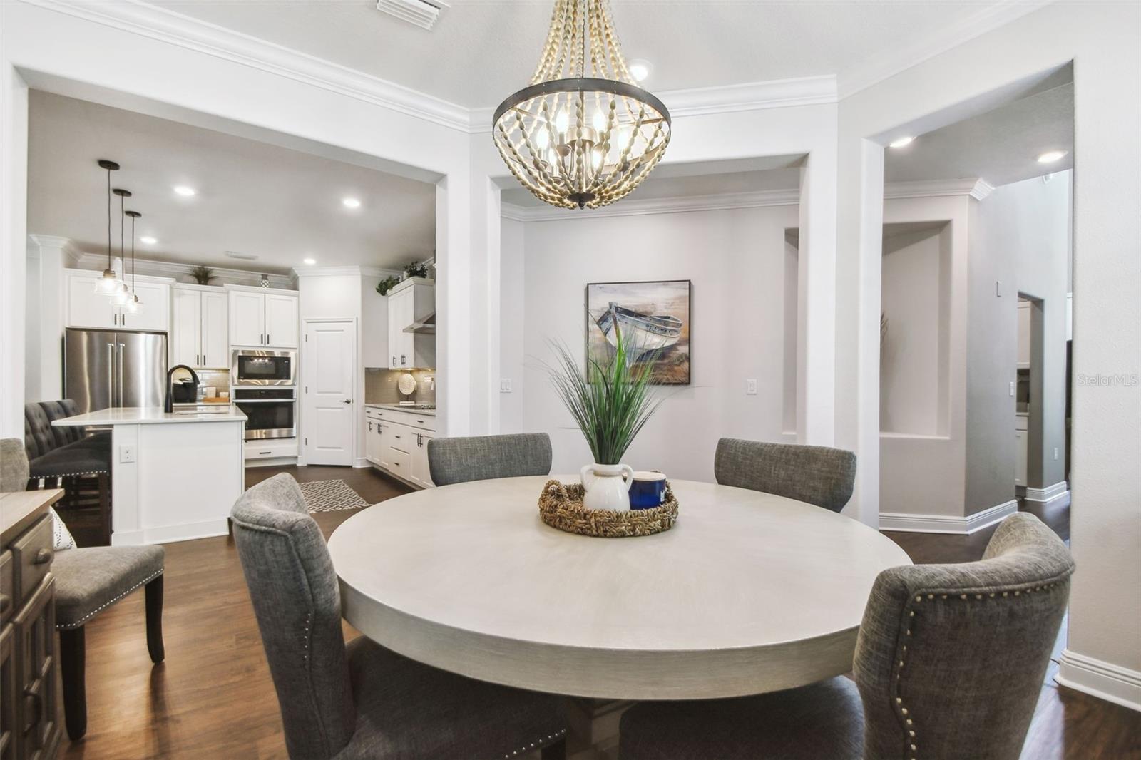 Kitchen/Family Room Combo, Solid Wood Cabinets, Tray Ceiling(s), Window Treatments, Ceiling Fans(s), Crown Molding, Eat-in Kitchen, High Ceilings, Stone Counters, Thermostat, Walk-In Closet(s), PrimaryBedroom Upstairs
