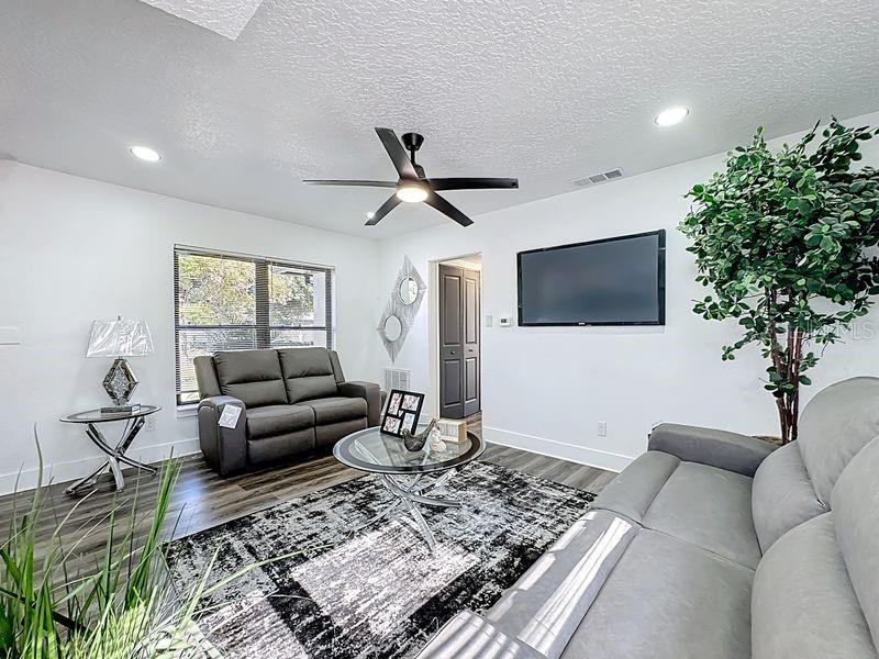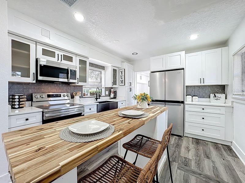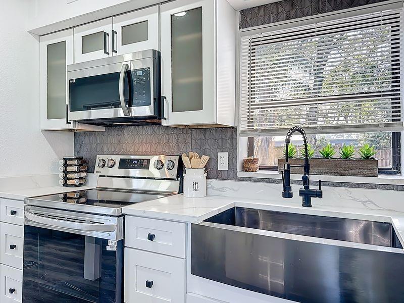 NEW OPEN LAYOUT — Fully renovated 3-bed / 2-bath home with NO HOA. Newer roof (2023), new A/C (2025), new water heater (2025), updated plumbing and electrical, stainless-steel appliances, new ceiling fans, and new luxury waterproof vinyl flooring. Modern island kitchen with an eating area, styled in a clean modern-farmhouse look, featuring new kitchen cabinets, countertops, backsplash, modern faucet and sink, pendants, and chandelier. Updated bathrooms, fresh interior and exterior paint, recessed lighting throughout. Huge backyard "truly move-in ready". Prime location and also works as a great investment opportunity.