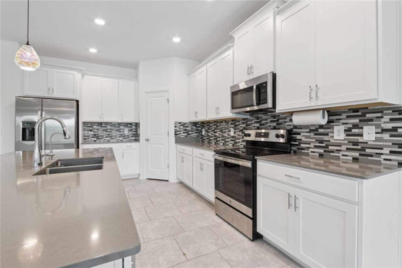 Welcome to this stunning 2023 Bonita Model by Lennar Homes, beautifully nestled in the desirable Stoneybrook Hills community of Mount Dora, Florida. This thoughtfully designed home features three bedrooms, two bathrooms, a dedicated office space, and a two-car garage. Situated on a serene lot with no rear neighbors, it backs up to a picturesque nature preserve, offering both privacy and tranquility. As you step inside, you are greeted by an extended foyer that flows into an open-concept floor plan, filled with natural light and professionally designed interiors. The gourmet kitchen serves as the heart of the home, showcasing a large stone island with seating for four, state-of-the-art appliances, and an inlaid sink. A separate dining area overlooks the spacious family room, creating the perfect space for entertaining and everyday living. High-quality tile flooring is consistent throughout the entire home, including all bedrooms, providing a sleek and seamless look. The owner's suite is a private retreat, offering a spa-inspired en-suite bath with a walk-in shower, dual sinks with a double vanity, and an expansive walk-in closet that delivers exceptional storage. This solar-powered home is equipped with smart home automation, including keyless door locks, video doorbells, and uninterrupted connectivity with no dead spots. Designed with sustainability in mind, the energy-efficient appliances not only help reduce your carbon footprint but also lower utility costs. Located just minutes from Downtown Mount Dora, U.S. 441, Florida 429, Orange County Schools, and local medical facilities, Stoneybrook Hills provides residents with resort-style living. Community amenities include a fitness center, resort-style swimming pool, playground, tennis and basketball courts, a baseball field, and a staffed community center. With a motivated seller and competitive pricing, this move-in-ready home presents an exceptional opportunity to experience luxury, convenience, and serene natural views. Schedule your private tour today and discover the lifestyle that awaits.