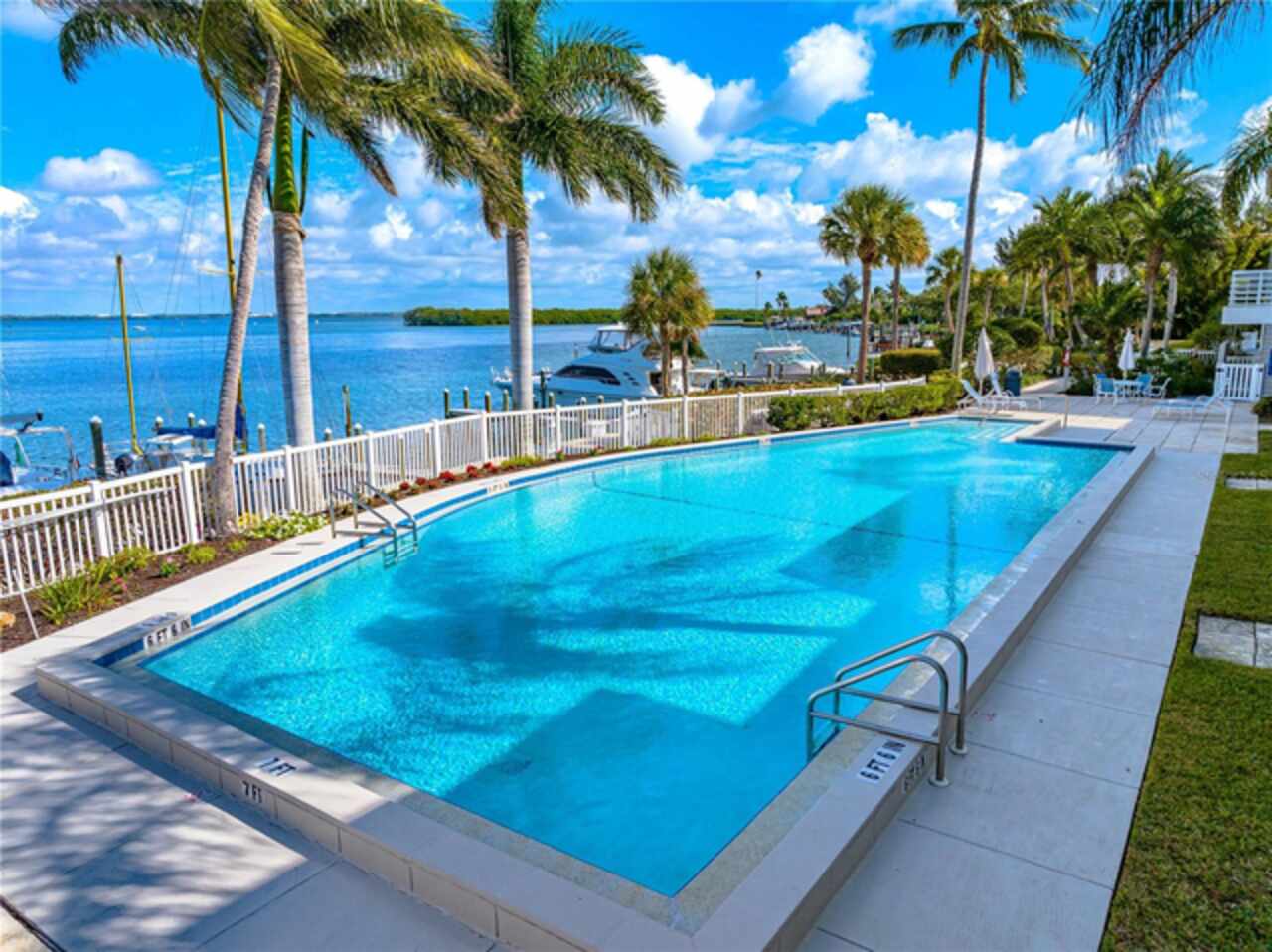 Bring your boat to Longboat Key. Fully furnished second floor corner unit with boat dock and stunning views of the Sarasota Bay in beautiful Harbor Villa Club. This beautifully renovated 2-bedroom, 2-bathroom condo is an incredible opportunity to live right on the Sarasota bay with 180 degree breathtaking water views. This single level, corner unit has plenty of natural light and has been updated with features such brand new laminate flooring, large Italian-style shower and contemporary light fixtures. Enjoy other features such as an open kitchen, granite countertops and wet bar. Enjoy the large corner patio, perfect for outdoor dining/ breakfast with water views of the bay, pool and boat docks. This location offers a unique lifestyle and is walkable to the beach (15 min) or 5 min by driving. Harbor Villa Club is one of Longboat Key best kept secrets, with 7 days minimum rental, elevators, tennis courts and a large heated pool & spa. This is an absolute must see with wow factor.