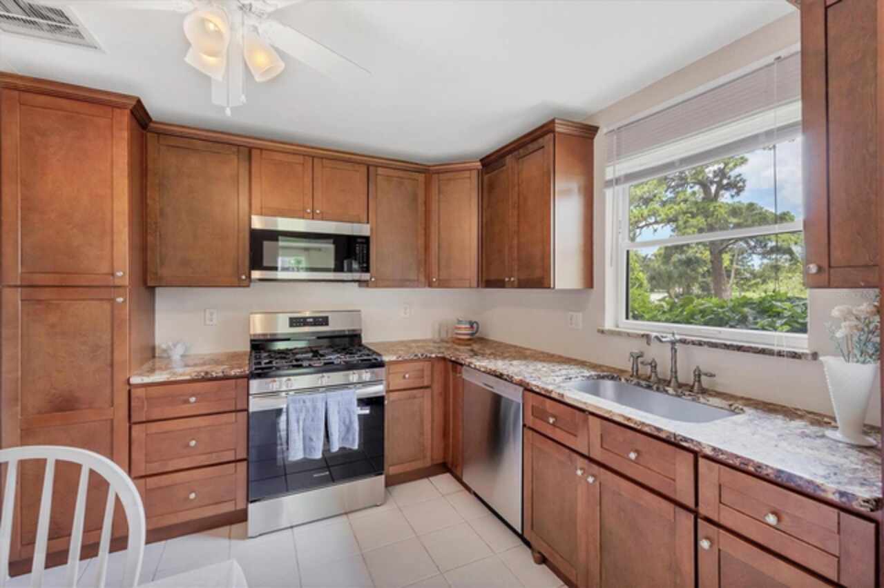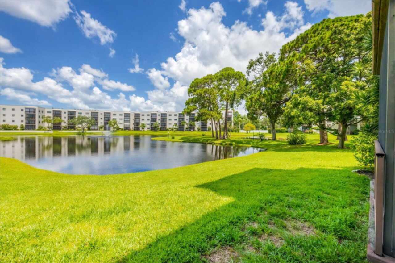 PRICE IMPROVEMENT! WARM WEATHER, WATER VIEWS & WORRY-FREE LIVING AWAIT! Escape the cold and enjoy the Florida lifestyle year-round in this beautifully updated 1, 345 SF first-floor condo in the sought-after 55+ community of Terrace Park at Five Towns. This light-filled, oversized inside corner unit feels more like a home than a condo, with extra windows, wonderful privacy, and peaceful pond views from your living room, kitchen, and screened patio. Move in with confidence—this condo includes a 13-month home warranty, and the building has a new roof (2025) with both the Milestone Inspection and SIRS already completed. Step inside to an inviting open layout perfect for relaxing or entertaining visiting family. The updated kitchen features shaker cabinets, granite countertops, and brand-new stainless appliances—your first Florida meals will be made with brand-new everything. The primary suite features a private bath and a large walk-in closet, while the second bedroom provides a perfect space for guests, hobbies, or a home office. Extra conveniences include: Assigned covered carport, Spacious indoor laundry room with washer/dryer, sink, and room for storage plus durable flooring T/O and freshly cleaned carpets in bedrooms. Terrace Park at Five Towns is known for its friendly, active community—ideal for those looking to build new connections. Enjoy 5 swimming pools, 2 clubhouses, fitness centers (with a new one coming), walking paths, shuffleboard, billiards, grilling areas, and a full calendar of social events and clubs. A new RV/boat/vehicle storage lot is nearly complete, with spaces available for lease. Whether you're seeking a warm winter retreat or a full-time Florida home, this condo offers comfort, community, and a maintenance-free lifestyle close to beaches, shopping, and all that St. Petersburg has to offer. Must see this condo! Schedule your private showing today and start living the sunny, relaxed lifestyle you’ve been dreaming of.