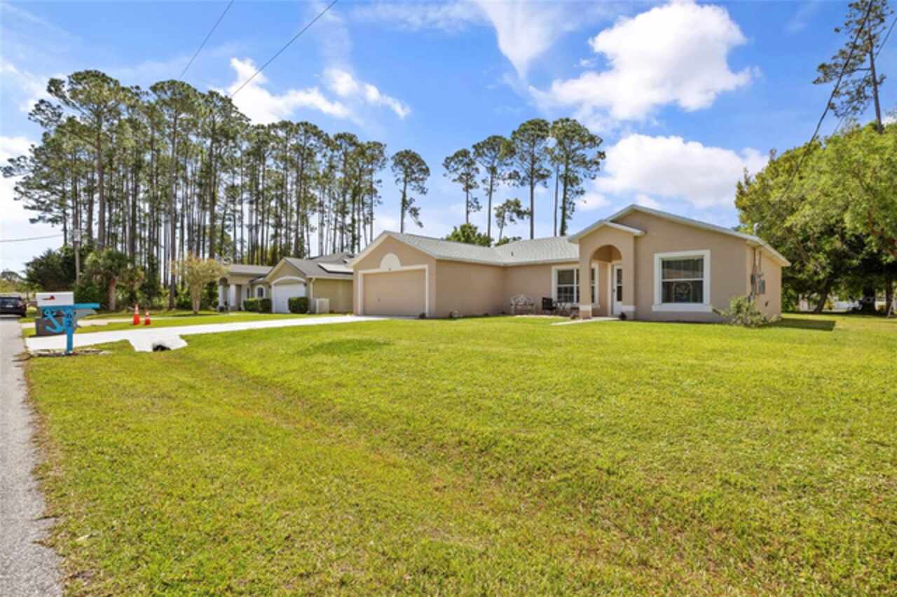 Short Sale. Make sure to check out the Virtual Tour for a 3D Model w/ Walkthrough, Floor Plan w/ Measurements, Video, & more! Welcome to Palm Coast B! This fantastic concrete block construction w/ steel studs (no flimsy wood-frame here!) home features a brand new roof and Solar Panels done in 2023! With vaulted ceilings, an open floor plan, and beautiful newer flooring, this is the DEFINITION of "light and bright".... and when we say "well maintained" that's an understatement! This home is ready for you to put your furniture down and put your feet up. Upon entry you'll find 2 large guest rooms and a full bath immediately to your right. Ahead you've got a great room w/ areas for dining, living, nook, and an immaculate kitchen. Through the living area you've got the master suite with beautiful tile floors and a custom bath. Inside Laundry/Utility and a 2 car garage round out the package! This beautifully maintained 3/2/2 sits on a landscaped .23 acre lot just MINUTES from restaurants, shopping, and healthcare options and yet still quiet in the back yard. Don't miss your opportunity on this wonderful home! Schedule your showing today!