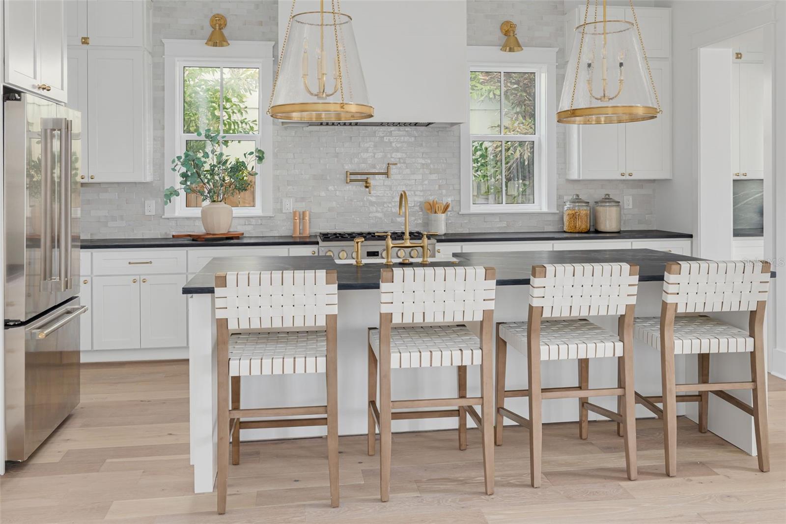 Step into refined living in this MOVE-IN READY Canopy Builders home—crafted with exceptional detail by St. Petersburg’s most trusted name in luxury construction. Nestled on a quiet street in the Five Points neighborhood and located in a NON FLOOD ZONE, this Langford Franklin model offers 5 bedrooms plus a loft, 3 bathrooms, and a detached two-car garage, with 2, 990 square feet of beautifully designed living space. A brick paver walkway and Canopy’s signature gas lantern set the tone for timeless curb appeal. Inside, the flexible floor plan adapts to your lifestyle. The study and guest bedroom near the foyer can serve as a private office, guest suite, or hobby room. A full bath is conveniently located nearby, featuring premium fixtures, a wall-mounted faucet, and an elegant vanity that blends style with function. At the heart of the home, the open-concept great room flows seamlessly into the gourmet kitchen. The kitchen showcases shaker-style maple cabinetry with soft-close drawers, 42” upper cabinets stacked to the ceiling, a large island with Marine Black Soapstone countertop, a convenient pot filler, and a premium Monogram appliance package. A walk-in pantry provides abundant storage for everyday essentials, while the mudroom with built-ins keeps everything organized and offers direct access to the backyard. Upstairs, the multipurpose loft provides endless possibilities, from an entertainment lounge to a playroom or additional living space. The spacious laundry room offers a sink, storage, and workspace. The expansive primary suite serves as a private retreat, dual vanities with wall-mounted faucets, a soaking tub, walk-in shower, and a private water closet. Every detail has been thoughtfully planned, from the pre-designed finish package and Hardie Board plank siding to impact-resistant windows, a tankless gas water heater, engineered hardwood flooring throughout, and dual digital thermostats for independent climate control. Luxury touches include 10’ ceilings on the main level, 9’ ceilings upstairs, and 8’ interior doors. Outside, the backyard offers the perfect canvas for your dream oasis—whether that’s a sparkling pool, outdoor kitchen, or a serene garden retreat - you have the space to make it your very own! Ideally located just minutes from Downtown St. Petersburg, Vinoy Park, award-winning Gulf beaches, and a short 20-minute drive to Tampa, this home offers the perfect blend of style, comfort, and convenience.
