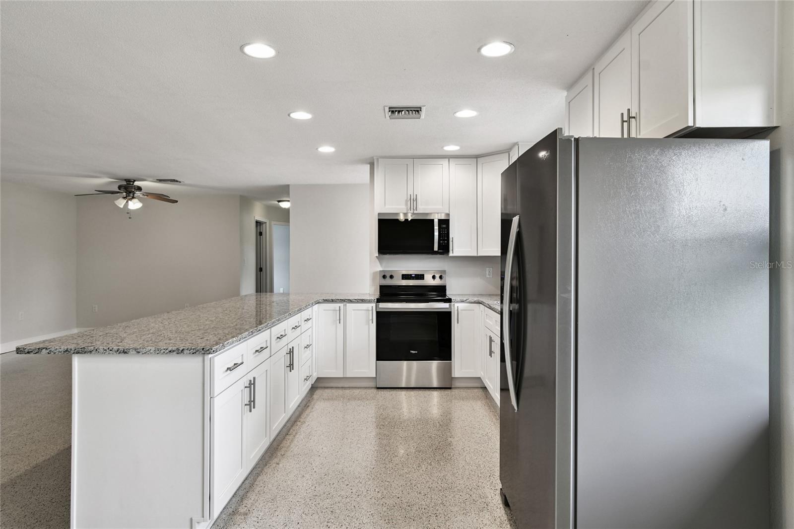 Ceiling Fans(s), Eat-in Kitchen, Living Room/Dining Room Combo, Open Floorplan, Solid Surface Counters, Split Bedroom, Stone Counters, Thermostat, Walk-In Closet(s)