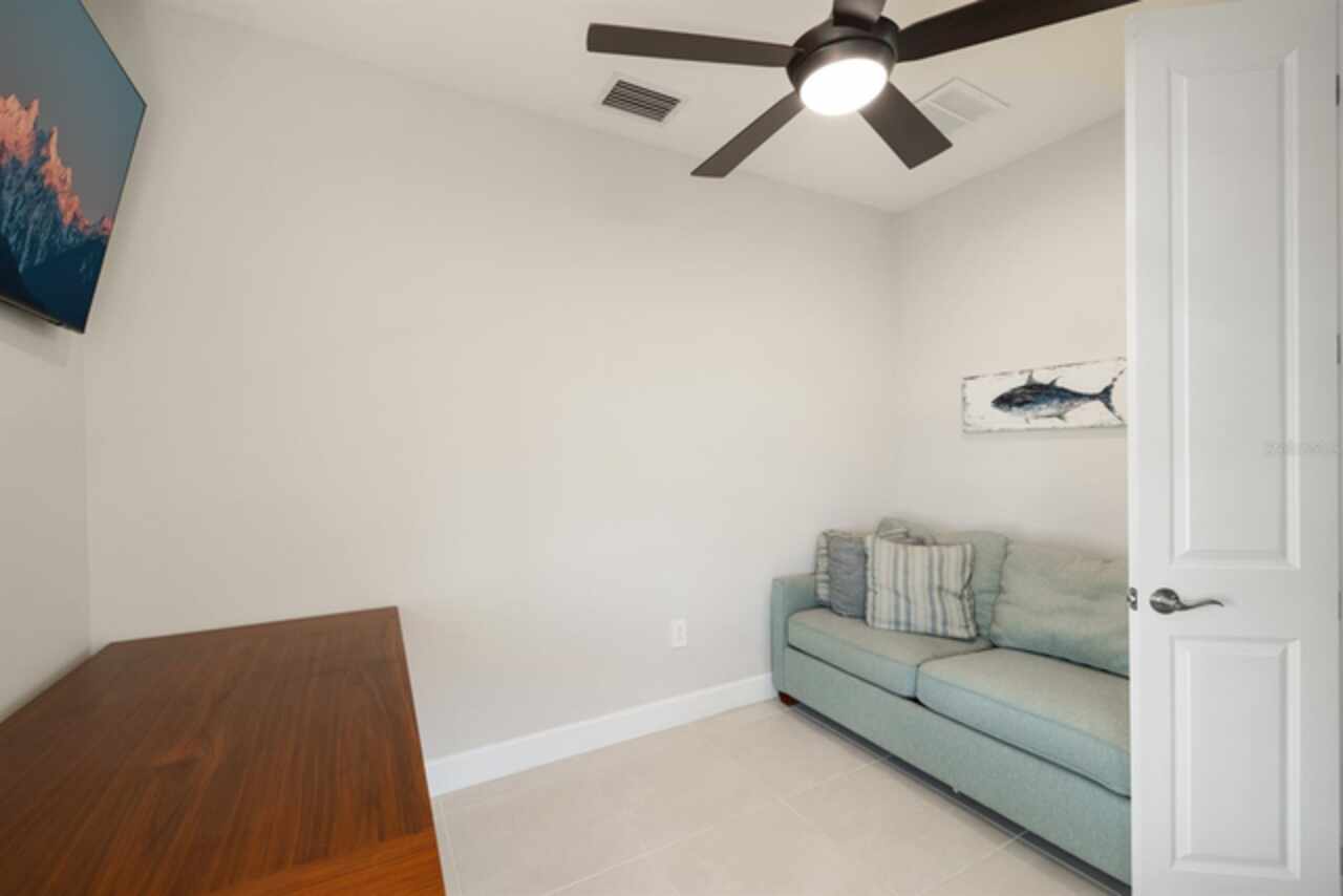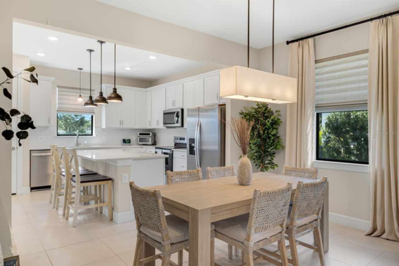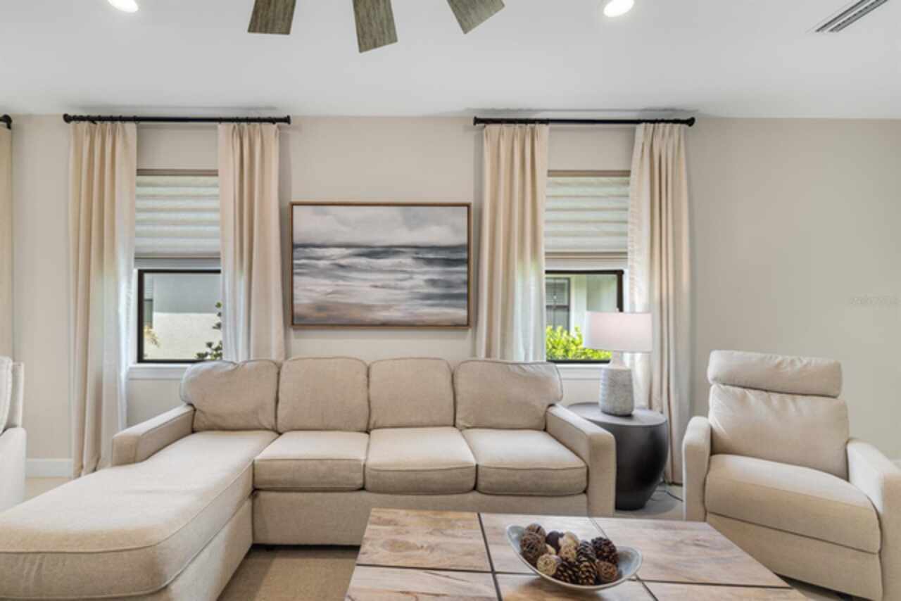 Get a FREE $10, 000 GOLF CART with the purchase of this home! The home features 2 bed, 2 baths, and a DEN/OFFICE ideal for a home office or guest room, and a 2-car garage. This Crestwood floor plan is designed to offer comfort, flexibility, and style, making it an ideal home for families and those who love to entertain. The open-concept layout allows for a seamless connection between the kitchen, dining, and living areas, creating the perfect environment for casual get-togethers or relaxed evenings at home. The kitchen features a center island, Whirlpool appliances, upgraded white shaker-style cabinetry, and elegant quartz countertops. The primary bedroom is a private retreat, featuring a dropped tray ceiling, a bathroom with dual sinks, a sleek glass-enclosed shower, and a walk-in closet that offers ample storage. Step out onto the covered and screened-in lanai and fenced-in yard. Perfect for outdoor dining or relaxing in the Florida sunshine. Upgrades include luxurious fans, light fixtures, and draperies. There's even room to add a pool to complete your personal oasis. Sapphire Point offers residents access to incredible resort-style amenities, including a sparkling community pool, a clubhouse with a fitness center, a playground, a basketball court, a fire pit, and an event space. Located just north of State Road 70, you’re minutes from top-rated schools, dining, shopping, golf courses, parks, and the cultural and coastal delights of Sarasota and Manatee counties.
