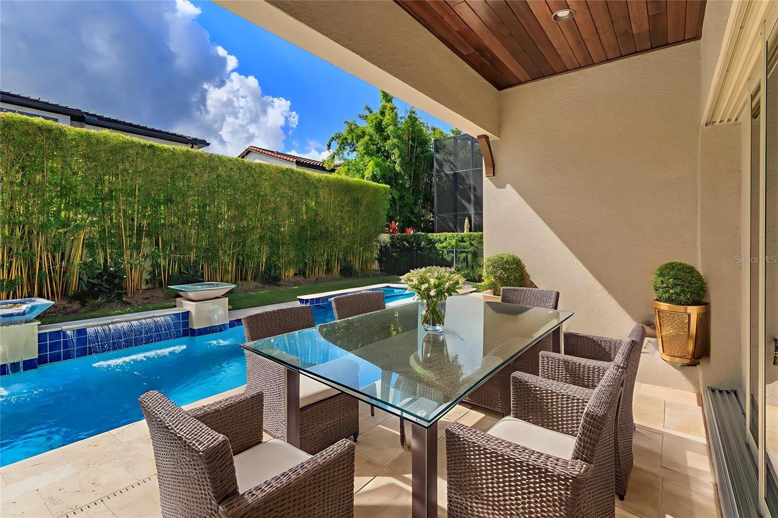 One or more photo(s) has been virtually staged. Enter a home that feels like a quiet triumph. Every curve, every beam, every room of this award-winning Sanibel model is designed to celebrate beauty, function and the moments that matter most. Known affectionately as The Castle, this French Country–inspired masterpiece once captured the state’s heart, winning Best Model Home in Florida and a Parade of Homes Grand Award. But its glory lies in how effortlessly it welcomes life. Enter through arched double metal doors into a foyer that opens to a sunlit great room, where gatherings unfold as easily as the breeze that drifts through the pocket corner sliding glass doors to the gorgeous, heated pool with travertine decking. The gourmet kitchen with natural gas has a beautiful hidden pantry, gas range, pot filler and stainless KitchenAid suite, and anchors the heart of the home. Each space flows naturally into the next, from the elegant dining area framed in warm beams to the covered terrace where laughter lingers by the sparkling blue pool and water bowls shimmer at dusk. The lanai even has hookups for a luxury, natural gas summer kitchen! Inside, craftsmanship whispers through coffered ceilings, iron staircase railings and tall crown moldings. The first-floor guest/in-law suite and is sure to please with a full bath and back door to the stunning pool. Upstairs, the owner’s retreat is a sanctuary entered through a rotunda foyer, complete with a round spa bath, generous walk-in closet, and private balcony where mornings begin in quiet light. Even the third bedroom has a balcony for your teen’s quiet evenings, homework or just chatting with friends. All balconies are maintenance-free and made of Trex. No painting and no fading! Here, every detail feels intentional. The balance of grandeur and intimacy, of architectural precision and human warmth, turns this home into something far greater than a showpiece. It becomes a setting for a well-lived life.