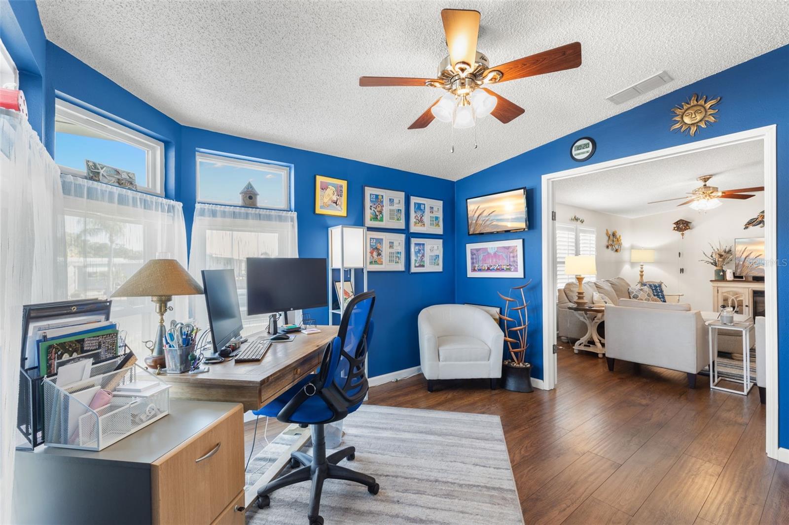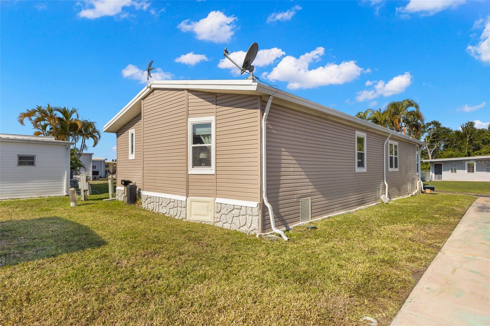 Tired of viewing homes that need to be remodeled? You will appreciate this 1997 two bed/two bath/den or office home that has been well cared for and upgraded. No flooding! With almost 1, 400 sq. ft of living space, this property features 2022 HVAC system, 2022 water heater, 2008 TPO roof over shingle, updated double pained windows with 2024 double paned windows on east side of home. Beautiful kitchen with eat-in space, stainless appliances, lots of counter and cabinet space for the cook who appreciates prep space! Beautiful wide-plank laminate flooring throughout with tile in baths. Large living/dining/den area to entertain family and friends. Primary bedroom suite has full wall of closets and bath with walk-in shower. Large guest bedroom with guest bath located across the hall for easy access. Guest bath has tub/shower combo. Utility room with washer and dryer that leads to 250 sq. ft screened lanai with mature landscaping keeping the area cool and private. Irrigation system. Large shed for extra storage. Side-by-side parking with extra space for golf cart. Comes partially furnished. Located close to community waterfront park to enjoy the dolphin and manatee. Price includes share for the lot and ownership in the co-op. Annual termite protection with Home Guard. Owner has three-year paid flood insurance with two years remaining. Americana Cove is the premier 55+ factory-built housing community in the county and is located only 10 mins from popular downtown St. Petersburg, 20 mins to two airports and 5 mins to 4th St shopping, dining and many grocery stores. Two pets (dogs or cats) up to 35 pounds are welcomed! Renting is allowed with 2-month minimum. Low monthly maintenance fee of $380 includes water, sewer, trash pick up, lawn mowing, 24 hr manned gate, private streets and all amenities including 2 boat ramps, kayak launch, clubhouse, heated pool, fitness center, billiards and so much more! This friendly community of 650 homes is waiting for you!