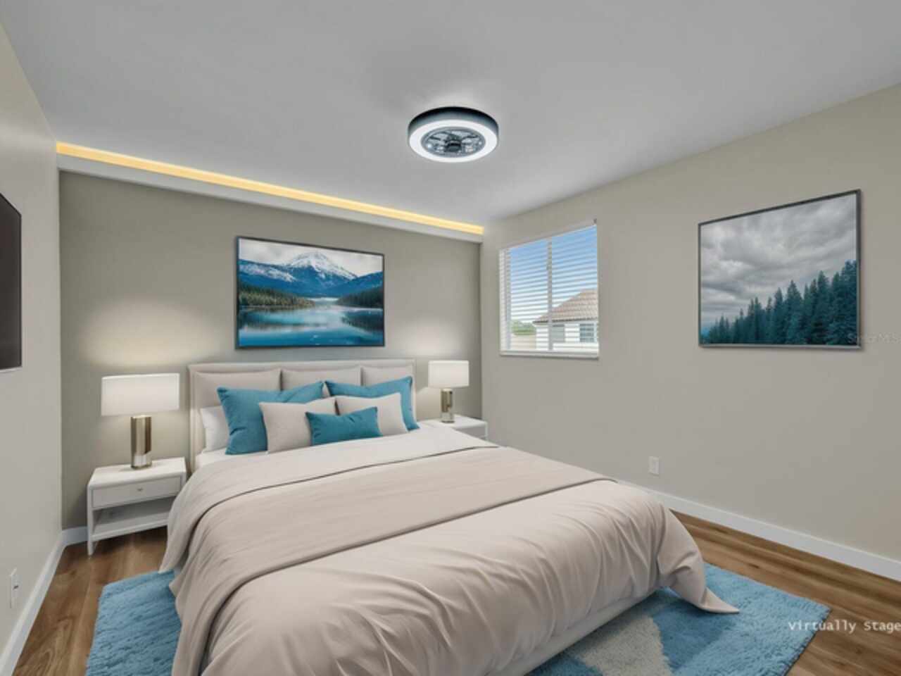 One or more photo(s) has been virtually staged. Beautiful home in lovely North Lakes Community. Renovations include new roof (2025), exterior and interior paint, tankless water heater, hurricane impact garage door, some impact windows and door, HVAC replaced (2022), updated Kitchen and baths. The home has Hurricane Impact Shutters, a two-car garage with driveway space for 3 more cars. First floor bedroom suite can be independent from the rest of the house and rented to help with the mortgage costs. Open layout concept allows for ease of gatherings with family and friends. Upstairs there are three bedrooms, two bathrooms and a sitting area. Second floor and stairwell have new flooring. Patio has pavers ready for nice furniture to enjoy BBQ with family and friends. Walking distance to Eagle Point Elementary and community pool and park.