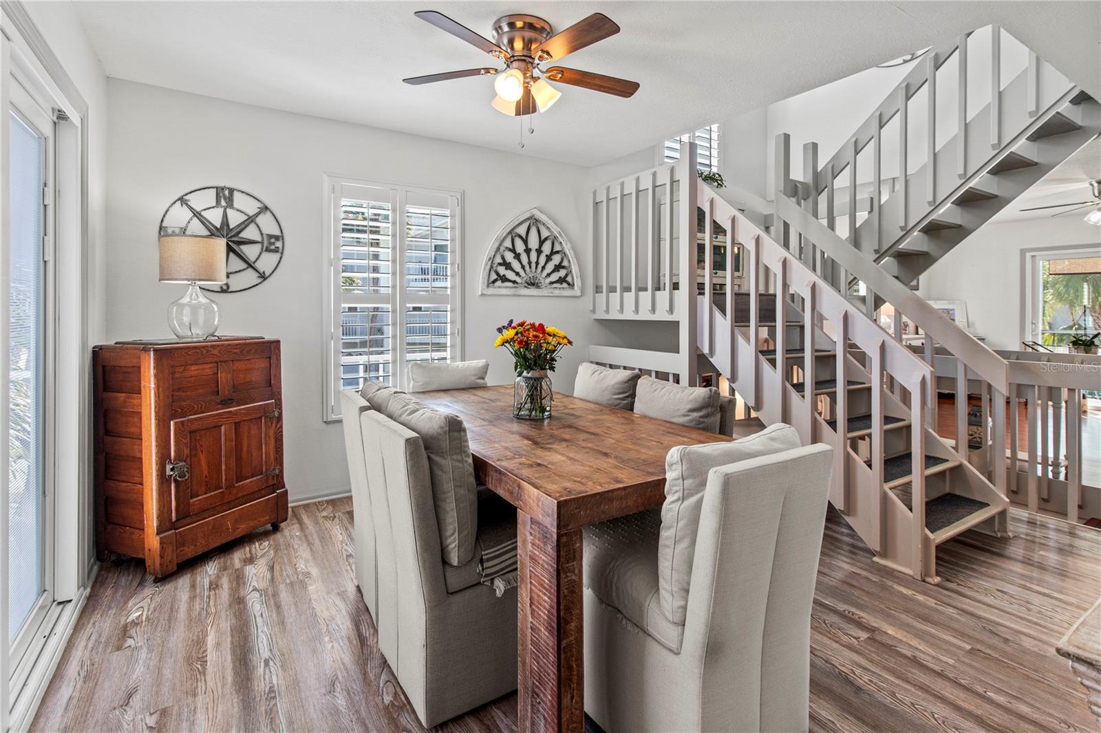 Ceiling Fans(s), Eat-in Kitchen, Kitchen/Family Room Combo, Living Room/Dining Room Combo, Open Floorplan, PrimaryBedroom Upstairs, Solid Surface Counters, Stone Counters, Thermostat, Walk-In Closet(s), Window Treatments