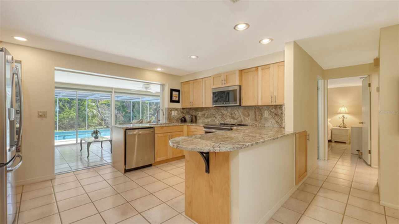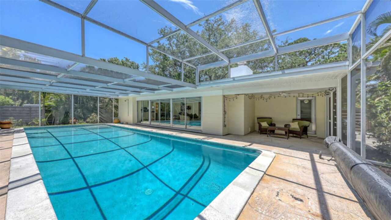 Tucked away in a quiet Cul-de sac beneath the shady canopies of the much sought after Indian Beach neighborhood, this charming 2/2 home offers the perfect blend of comfort and location. Just a few blocks from the picturesque shores of Sarasota Bay, evenings come with a complimentary sunset show that never disappoints. Step inside to find a mid-century gem, thoughtfully updated. The renovated kitchen boasts wood cabinets, granite countertops and stainless-steel appliances. The open floor plan flows seamlessly into the living area, all overlooking a fully enclosed 40-foot, heated pool and covered patio. Both front and backyards are landscaped for beauty and ease, while recent updates include a metal roof, hurricane impact windows, new HVAC unit, smart thermostat and a fully replumbed water system complete with new water heater and filtration system. Big upgrades equal fewer headaches. This home is as practical as it is appealing. Just minutes from Ringling museum, downtown Sarasota, St. Armand's Circle, and the sun-drenched shores of Lido and Longboat Key beaches, this location is the definition of convenience. Whether you're headed to the beach, a gallery, or your favorite local restaurant, you are never far from where you want to be!