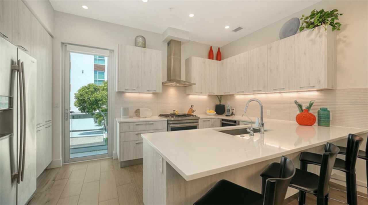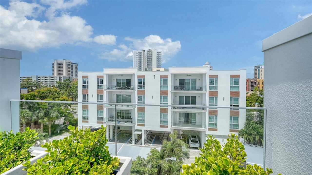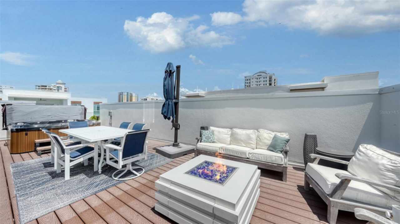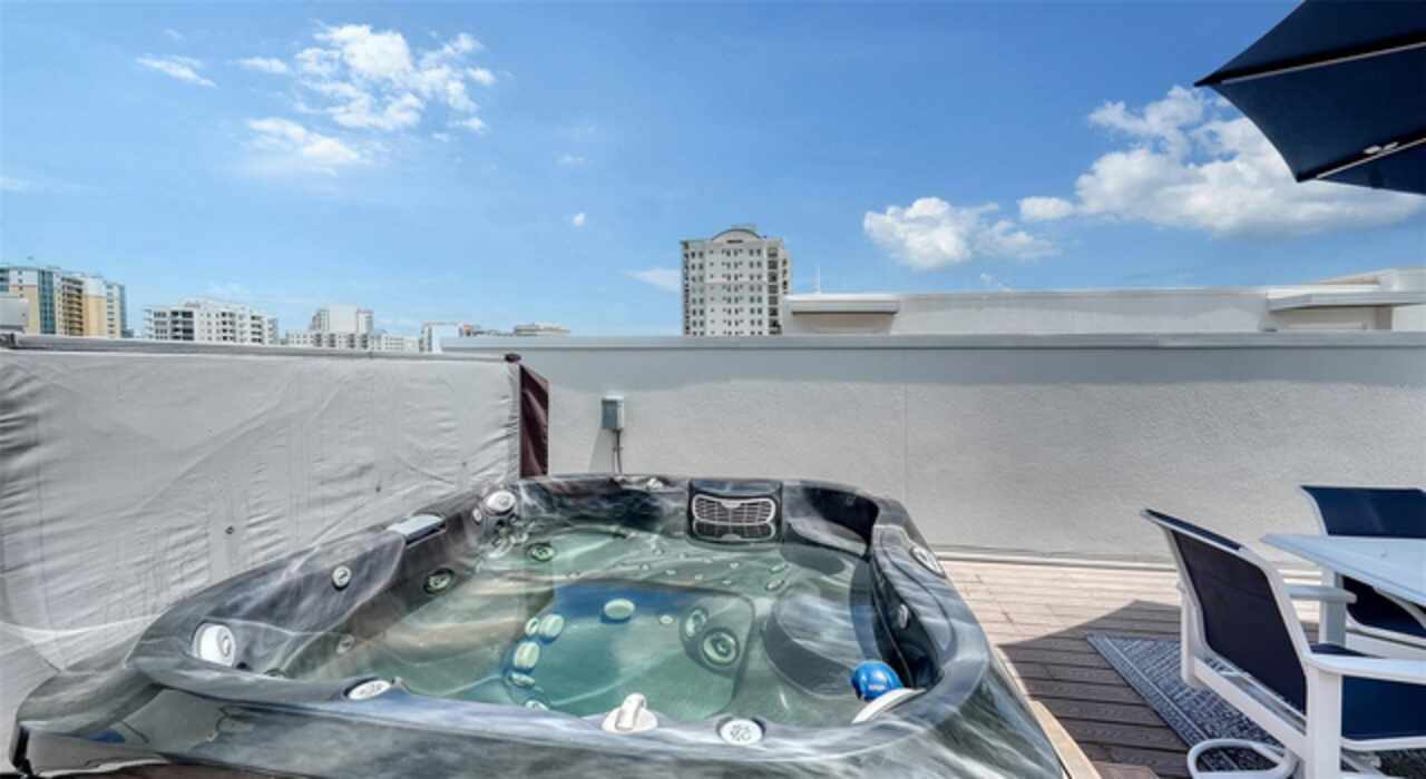 Sophisticated urban living awaits in this refined three-story townhouse with a PRIVATE ELEVATOR and expansive ROOFTOP DECK, located in the exclusive Townhomes of Orange Club in downtown Sarasota. Just steps from the historic Burns Court district and the city’s vibrant Bayfront, this stylish residence offers 2, 300 SF of thoughtfully designed living space, including 3 bedrooms each with their own ensuite bathroom. The private rooftop deck is a true sanctuary featuring a jacuzzi hot tub, outdoor kitchen, privacy wall, and 608 SF of additional outdoor living space – perfect for relaxing or entertaining under the stars, all with captivating city views. Designer finishes throughout, soaring 10-ft smooth-finish ceilings, Low-E impact windows and doors, contemporary baseboards and casings all enhance the home’s clean aesthetic. A private two-car garage opens to a welcoming foyer and a guest bedroom with ensuite bath on the first level. The second floor is designed for effortless entertaining, with an open-concept great room, east- and west-facing balconies with frameless glass railings for unobstructed views, powder room, and a gourmet kitchen featuring imported Italian cabinetry, quartz countertops, and Jenn-Air stainless steel appliances, including a six-burner gas range. Upstairs, the third floor hosts a serene primary suite and a spacious second bedroom, both with ensuite baths and private balconies. A laundry closet with full-size washer and dryer adds convenience. Residents of Orange Club enjoy a secure, upscale community with surveillance cameras, a heated pool, and a sun lounge area. Located in the heart of Sarasota, you’re just moments from the city’s best, including a thriving arts and culture scene, award-winning dining, boutiques, nightlife, farmers market, and year-round festivals. This is downtown Sarasota living at its finest.