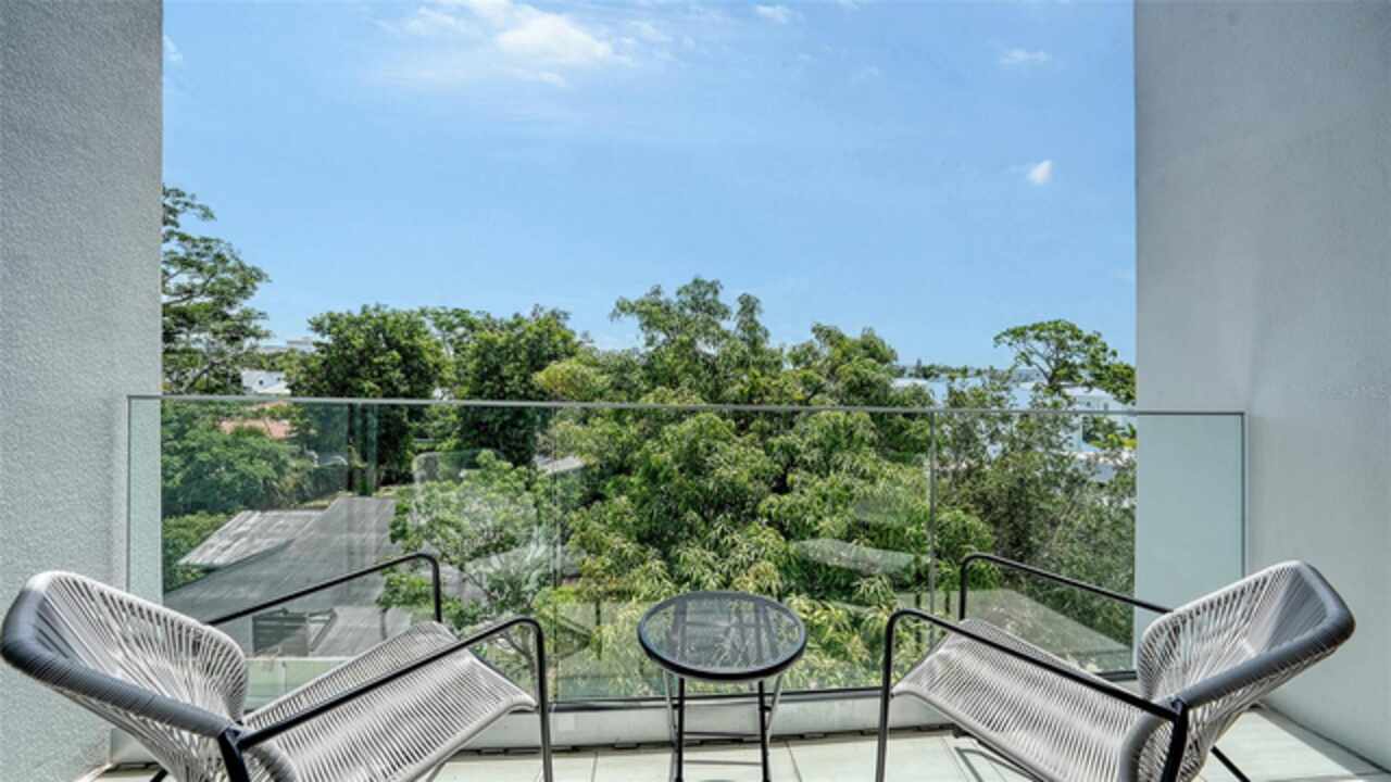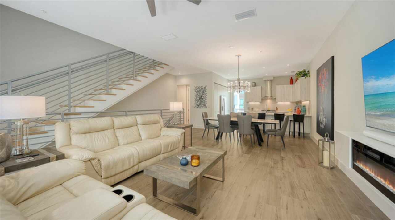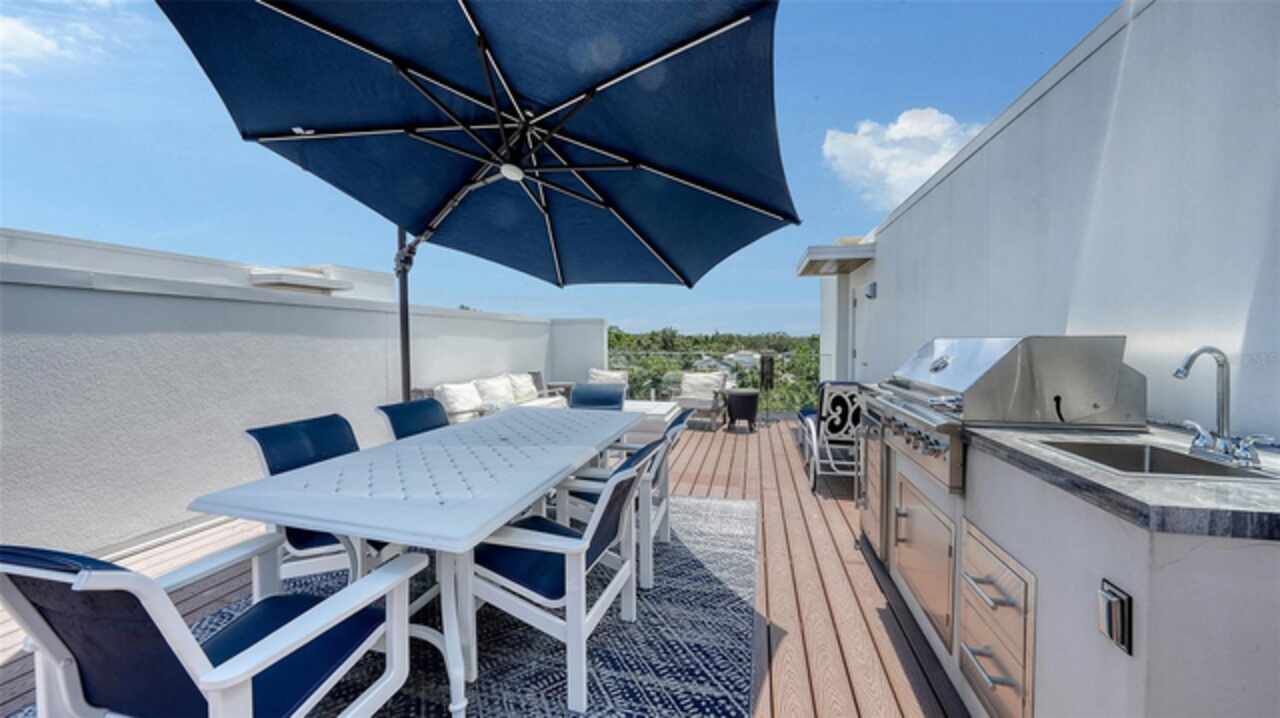 Sophisticated urban living awaits in this refined three-story townhouse with a PRIVATE ELEVATOR and expansive ROOFTOP DECK, located in the exclusive Townhomes of Orange Club in downtown Sarasota. Just steps from the historic Burns Court district and the city’s vibrant Bayfront, this stylish residence offers 2, 300 SF of thoughtfully designed living space, including 3 bedrooms each with their own ensuite bathroom. The private rooftop deck is a true sanctuary featuring a jacuzzi hot tub, outdoor kitchen, privacy wall, and 608 SF of additional outdoor living space – perfect for relaxing or entertaining under the stars, all with captivating city views. Designer finishes throughout, soaring 10-ft smooth-finish ceilings, Low-E impact windows and doors, contemporary baseboards and casings all enhance the home’s clean aesthetic. A private two-car garage opens to a welcoming foyer and a guest bedroom with ensuite bath on the first level. The second floor is designed for effortless entertaining, with an open-concept great room, east- and west-facing balconies with frameless glass railings for unobstructed views, powder room, and a gourmet kitchen featuring imported Italian cabinetry, quartz countertops, and Jenn-Air stainless steel appliances, including a six-burner gas range. Upstairs, the third floor hosts a serene primary suite and a spacious second bedroom, both with ensuite baths and private balconies. A laundry closet with full-size washer and dryer adds convenience. Residents of Orange Club enjoy a secure, upscale community with surveillance cameras, a heated pool, and a sun lounge area. Located in the heart of Sarasota, you’re just moments from the city’s best, including a thriving arts and culture scene, award-winning dining, boutiques, nightlife, farmers market, and year-round festivals. This is downtown Sarasota living at its finest.