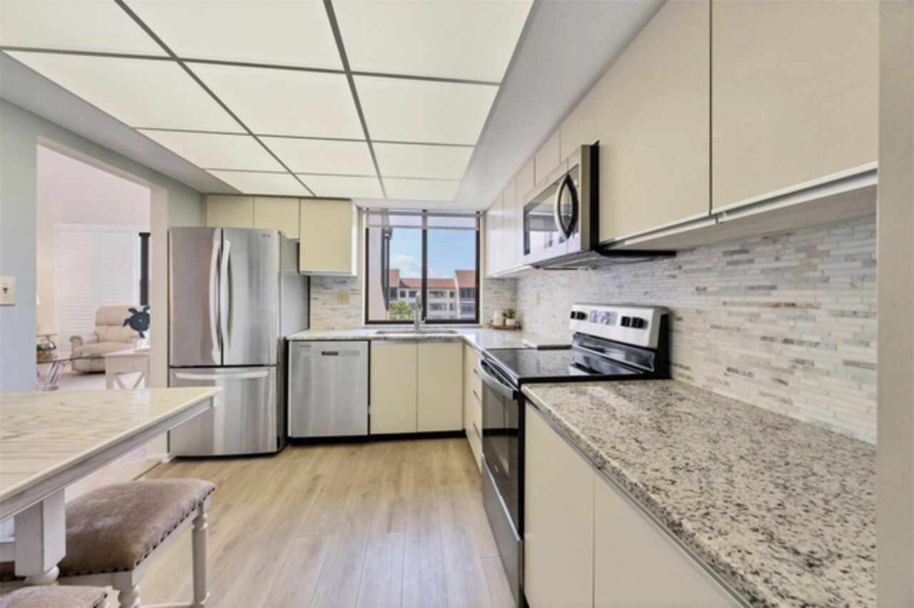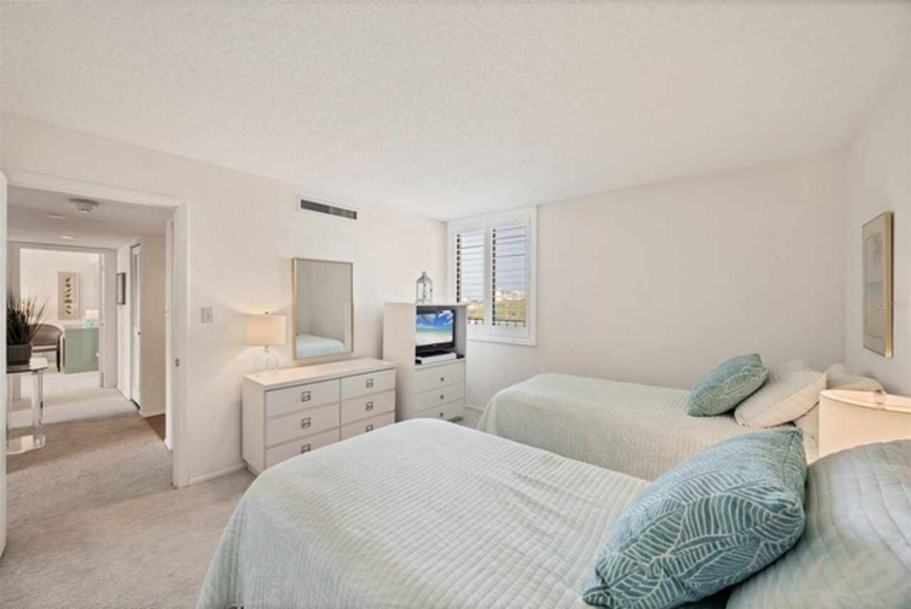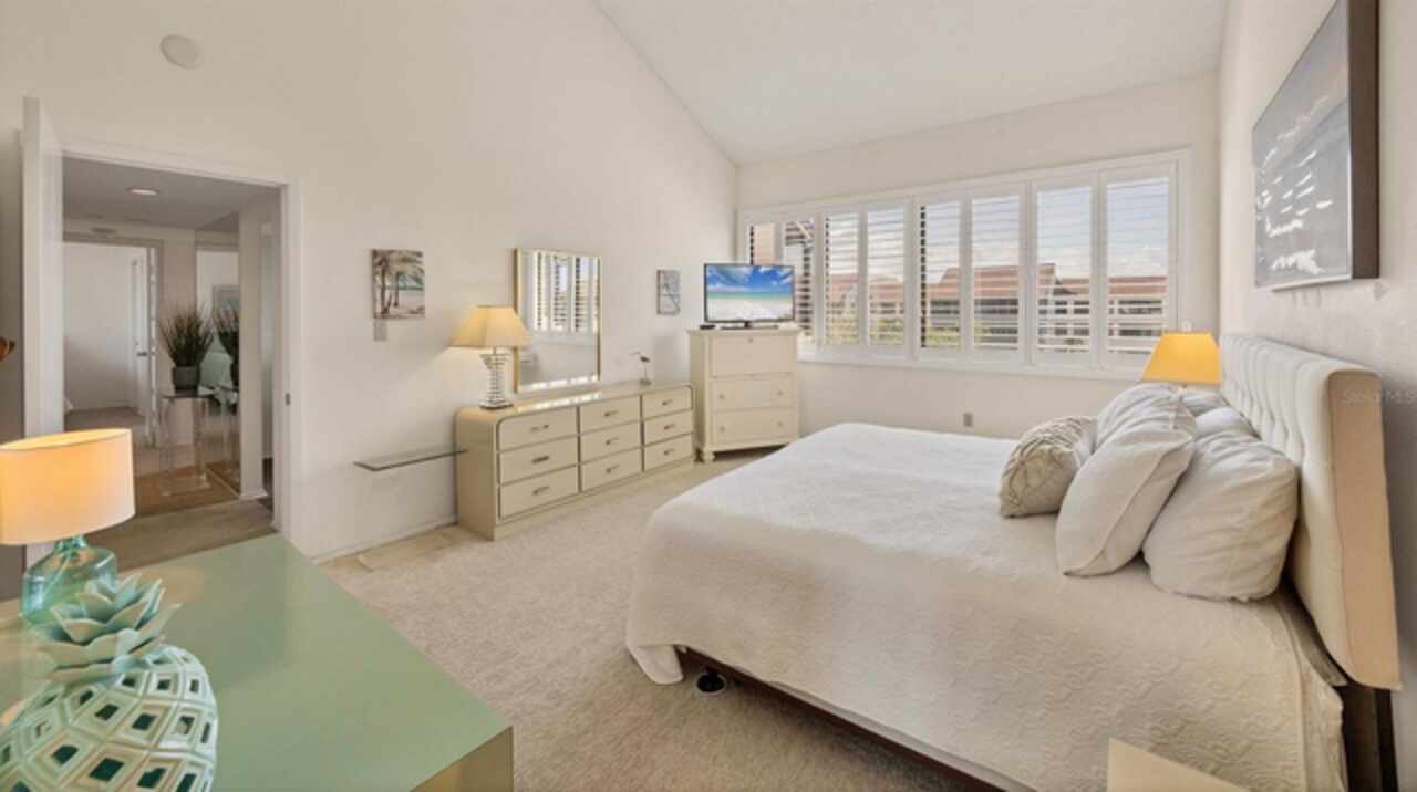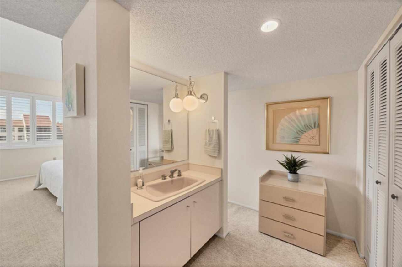MAJOR PRICE REDUCTION!! Welcome to this 4th floor/Penthouse condo for sale at the Excelsior Bayside Complex. Coveted for its soaring ceilings and the opportunity to add an upper 3rd bedroom, years can pass without one becoming available. This particular unit faces south and is filled with natural light with the added benefit of clerestory windows. New AC and water heater in 2025. A pre-listing home inspection was conducted for your peace of mind and is available for review. There have been some upgrades over the years and the condo has been owned by the same family since construction. Smoke free, never rented, and this well maintained unit is ready for cosmetics, or renovate and add hundreds of square footage amid the endless possibilities. The screened in lanai overlooks the grounds. Each condo comes with assigned underbuilding parking and locked storage for your toys and seasonals. Absolutely the best value and opportunity at the Excelsior and perhaps on Siesta Key itself. The Excelsior is rich with amenities: Two Large Heated Swimming Pools, Poolside Restrooms / Hot Water Showers, Two Hot tubs, Tennis Courts, Pickle Ball Courts, Fitness Center, Gulfside Sun Deck, Beach Lounge Chairs, Outdoor Grills, Intercoastal Fishing Pier, Community Room and monthly community events, Library, and catering kitchen. Walk to Shopping, Dining, Bike & Boat Rentals This ideal location has direct and deeded beach access to Siesta Beach, renowned for its quartz sand known for staying cool in the summer and feeling like talcum underfoot. Easy on and off the key access at the south Stickney Point Bridge. The increasingly popular Gulf Gate neighborhood is just over the bridge offering a wide variety of eclectic restaurants, grocers, pubs, and shops. A remarkable opportunity with these features and at this price which doesn't come around very often. Please note that many of the grounds photos were taken prior to last year's storms. Landscaping restoration is still in process.