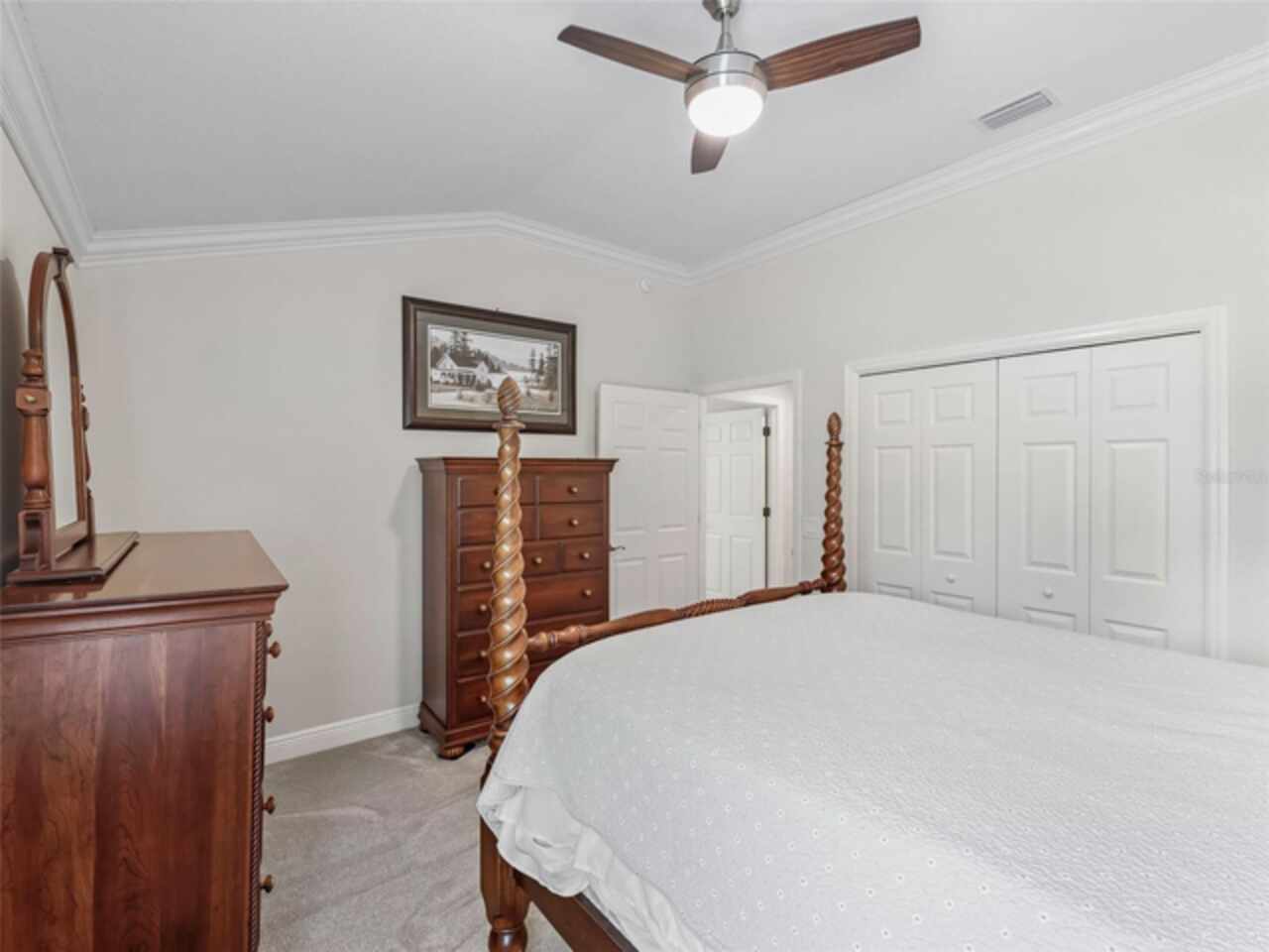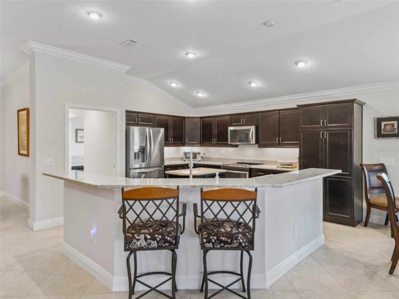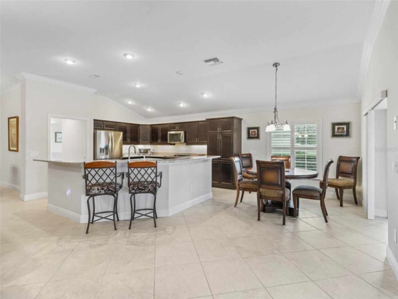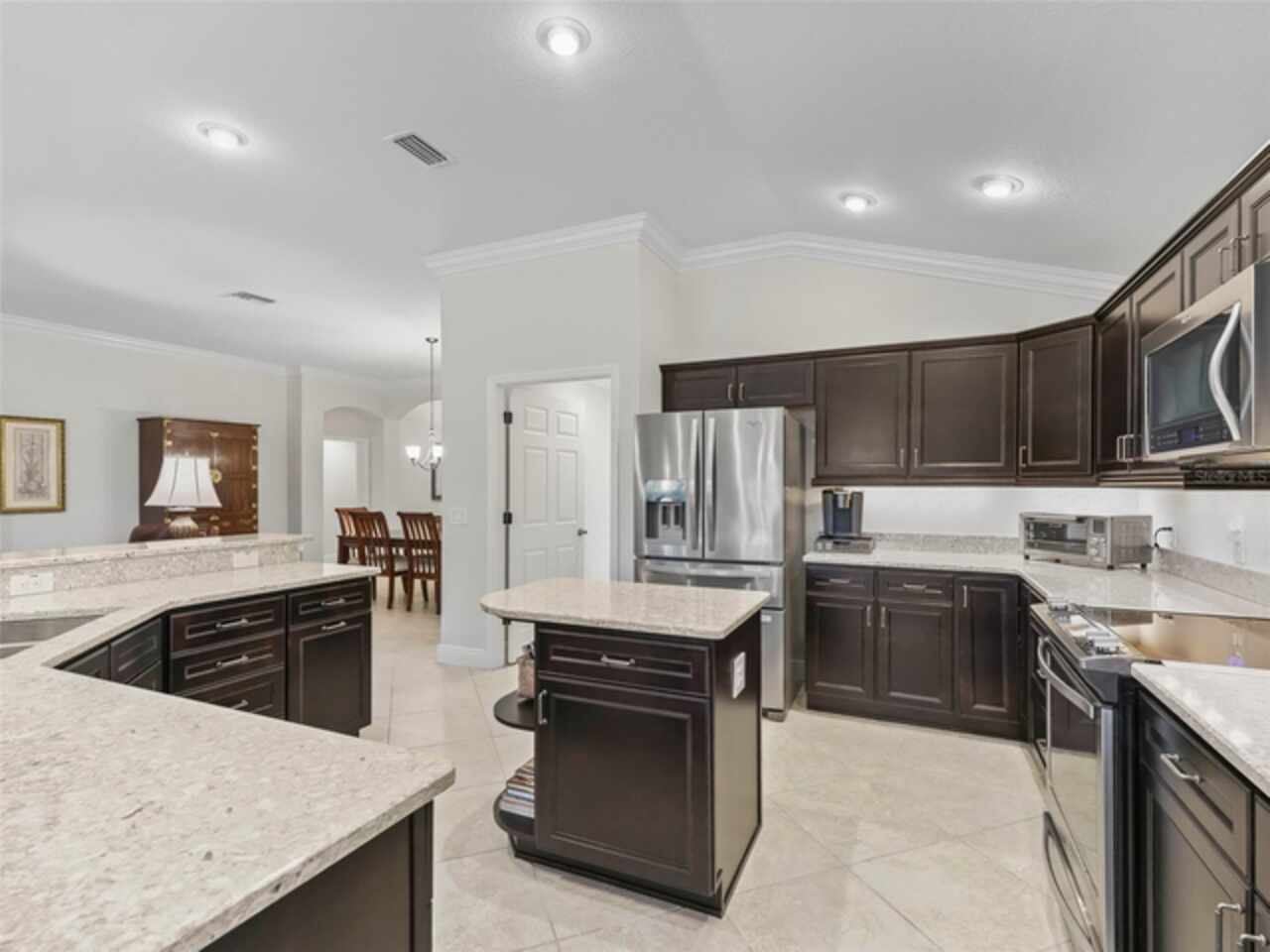 Under contract-accepting backup offers. Beautiful 4-Bedroom Pool Home on Quiet Cul-de-Sac – BOND PAID! Welcome to this stunning FURNISHED/TURN-KEY 4-bedroom, 2-bathroom home located on a peaceful cul-de-sac. Featuring 2, 606 sq. ft. of heated living space and 3, 665 sq. ft. under roof, this spacious residence offers both style and comfort. Step though the large ENCLOSED CLIMATE CONTROLLED sunroom, and outside to your private SOLAR HEATED swimming POOL, with soothing WATERFALL, perfect for year-round enjoyment. The home sits on over a quarter-acre lot and features a STONE paver walkway and driveway, SCREENED front porch, and GLASS-ENCLOSED lanai with A/C—ideal for relaxing or entertaining in comfort. Inside, you’ll love the open-concept great room and gourmet kitchen, complete with an island, pull-out cabinetry, pantry with pull-outs, stainless steel appliances (including a French door refrigerator), and stunning QUARTZ countertops. The luxurious master suite boasts a LARGE walk-in closet, HIS/HER vanities, and a WALK-IN shower. Spacious guest quarters offer privacy and comfort for visitors. Additional upgrades and features include: Crown molding and diagonal tile throughout; Quadruple glass sliding and recessing doors; Plantation shutters; Built-ins in all closets; Water SOFTENER and FILTRATION system; Indoor utility with a desk, folding counter and additional cabinetry; Extra refrigerator and newer STORM doors; Upgraded landscaping with ACCENT LIGHTING; Windows in garage; and Large-capacity hot water heater. Again, NO BOND! This exceptional home is move-in ready and packed with high-end finishes and thoughtful details. Don’t miss your chance to own this incredible home!