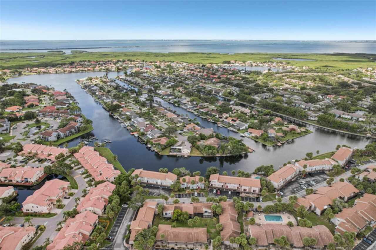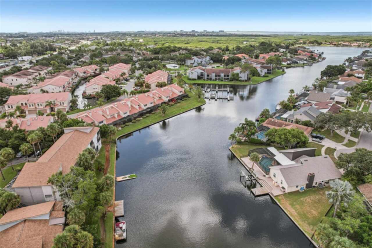 Waterfront Paradise with breathtaking views from almost every room through newly installed Hurricane rated IMPACT RESISTANT windows and sliding glass doors. Featuring an open floorplan and large open balcony on both levels, this is the perfect spot to kick back and enjoy the Florida lifestyle. Starting with your entrance foyer the living level has a well-appointed sunlit kitchen with tile floors, ample counter space, and a large closet pantry. The kitchen flows seamlessly into the living and dining area, which features a wet bar and a large waterfront balcony perfect for entertaining guests or relaxing sunsets. Upstairs you will find an en-suite guest bedroom, laundry area, and primary bedroom with spacious bathroom, walk in closet and large private balcony with double paned storm rated sliding glass doors. Included extras include a storage closet off the balcony, a reserved parking spot and an oversized garage for your convenience. Located in the gated community of North Bay Village, this property offers a unique blend of tranquility and convenience. It is just a short drive away from dining, entertainment, shopping, and provides easy access to Tampa International Airport, the Veterans Expressway, and the world-famous Bay area beaches. North Bay Village is replete with amenities, including multiple pools, tennis courts, a basketball court, and a clubhouse available for private functions. The waterfront walkways and association-controlled boat slips, onsite trailer and boat parking, and a boat lift ensure easy access to the Bay, making it a boater’s dream. Come and make this stunning waterfront condo your new home and indulge in the convenience and beauty that North Bay Village has to offer. !!!UNBEATABLE PRICE for an UNBELIEVABLE UNIT!!!