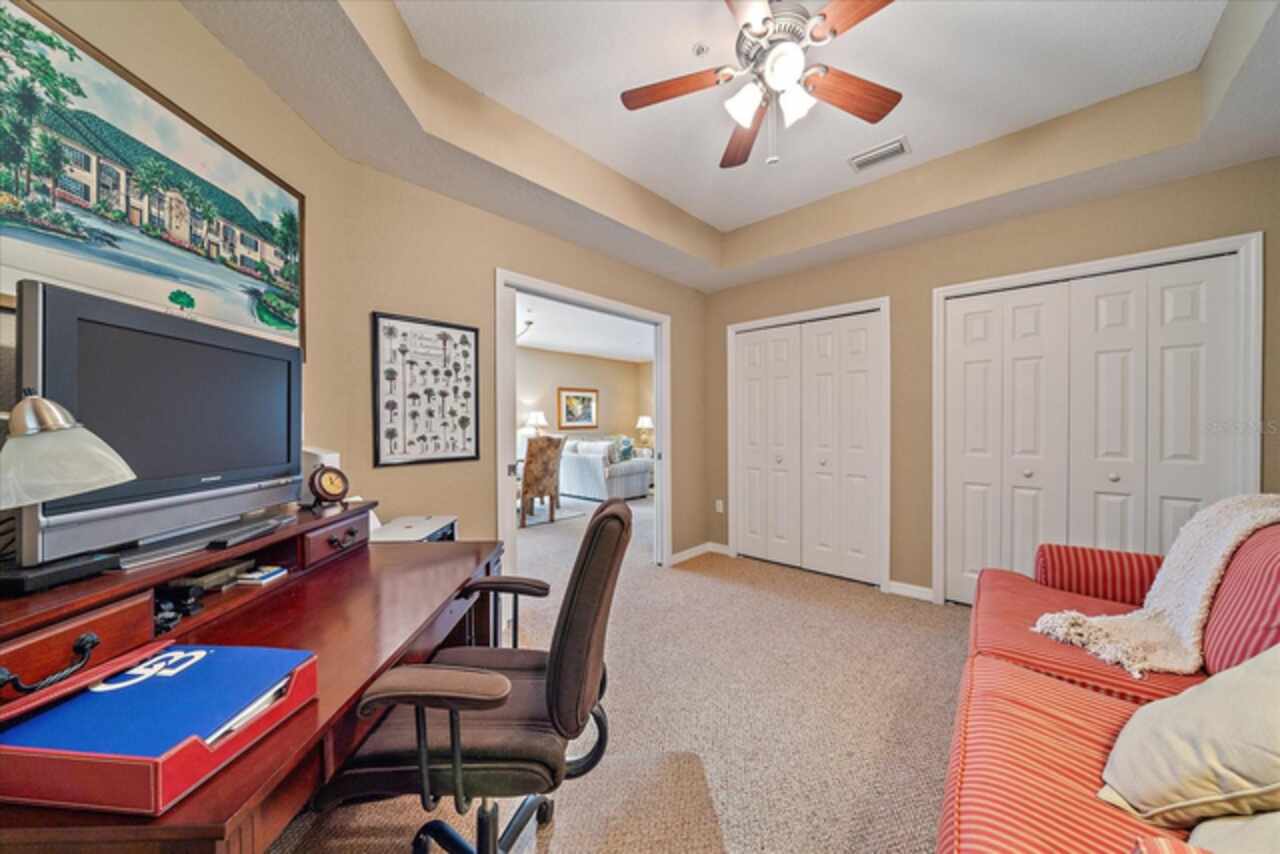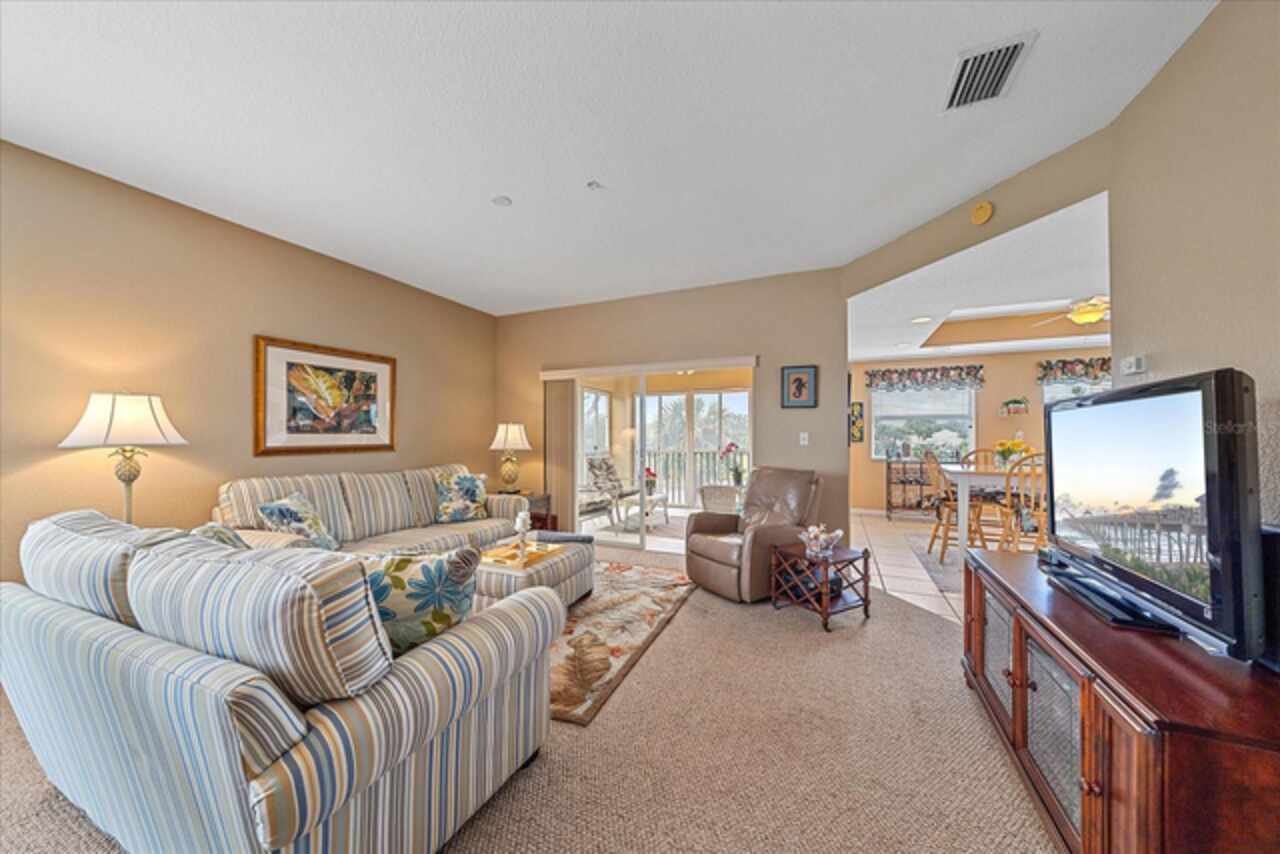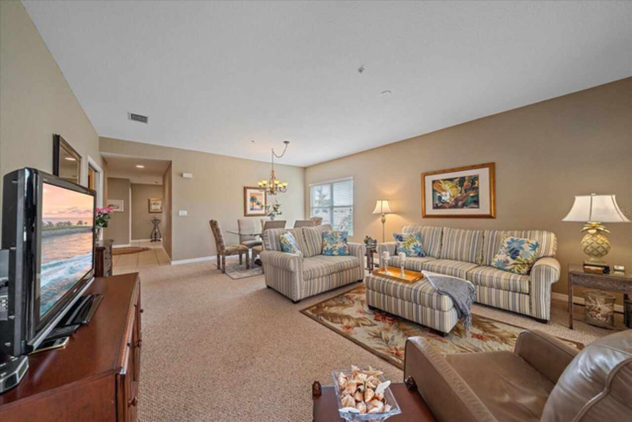 LIVE ON VACATION NOW! You do not want to miss this meticulously maintained 3 Bedroom/2 Bath condo with the most SPECTACULAR view of the the lake and golf course! This rarely available "end unit" has lots of windows with natural light and is very open and bright. Start each and every day by enjoying your coffee and the view! Located in the highly sought-after Tara development, this beautifully furnished home offers resort-style living with low HOA fees that include access to a heated community pool and spa, clubhouse, tennis courts, pickleball, and more. Plus, the HOA covers your water/sewer, internet and cable! ***The kitchen was beautifully UPDATED in 2022 with new appliances and quartz countertops! The open floor plan includes a versatile den, perfect for a home office or additional living space. This space comes fully furnished. This life is not a Dress Rehearsal! Call today and start living on vacation NOW! CDD included in Property Taxes.