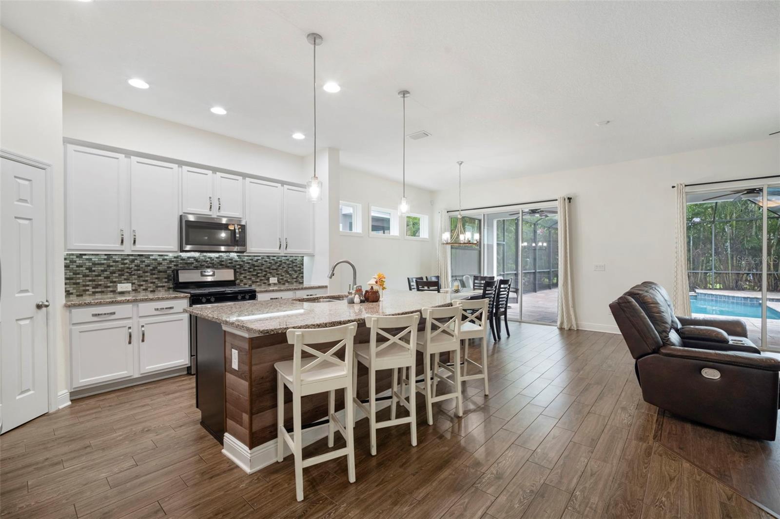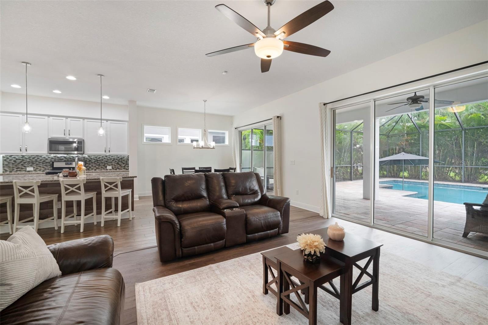 Dive into Florida living at its finest with this heated saltwater pool home in the highly sought-after Waterset community! Surrounded by lush privacy landscaping, this backyard oasis is perfect for relaxing, entertaining, or enjoying year-round sunshine. Inside, you’ll find a beautifully designed 4-bedroom, 3-bath home with an additional office/flex room and a spacious loft offering flexibility for work, play, or guests. The open floor plan features white cabinetry, stainless steel appliances, and a bright, modern feel throughout. With fresh exterior paint and a park located directly across the street, this home combines style, comfort, and location in one perfect package. Residents of Waterset enjoy resort-style amenities, including multiple clubhouses, pools, fitness centers, walking trails, dog parks, playgrounds, and a vibrant calendar of community events. Don’t miss your chance to own this stunning Waterset pool home- move-in ready and designed for the Florida lifestyle.
