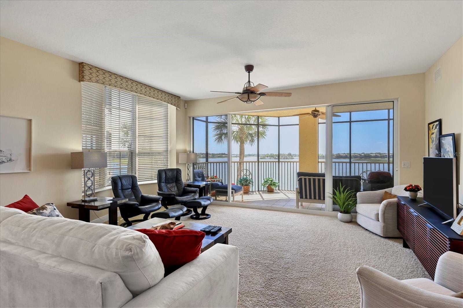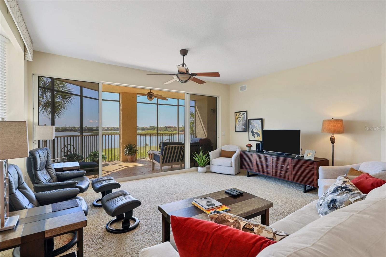 Under contract-accepting backup offers. ONE OF THE BEST VIEWS IN WATERCREST! LAKEFRONT, CLEAN Three bedroom, Three bath, Two car enclosed garage, third floor END UNIT with a stunning view of Lake and Golf Course. FURNISHING'S OPTIONAL Sought after Mirabel floor plan in Watercrest is poised in the middle of Lakewood Ranch overlooking 160 acre Lake Uihlein. Few minutes walk to Lakewood Main street with restaurants, boutiques, and more! Furnishings optional, and 1 year home warranty provided. This unit has one of the best views to enjoy from your Living Area, Primary Bedroom, and Large Screened/Covered Lanai! Large wall to wall sliding doors to fully enjoy the AMAZING view of the Lake! Primary Bedroom also has access to the Lanai, ensuite Bath with soaker tub, separate shower, and dual sinks, with two large walk-in closets. Kitchen is spacious featuring tall wooden cabinetry, granite counters, and a breakfast bar integrated with the dining area, and Great Room open floor plan. Being an end unit there are three large windows in the living area and LOTS of light. Guest bedrooms each have en-suite bathrooms! Bath #2 tub/shower combination, and Bath #3 has a stand up shower, and the 3rd bedroom has its own private juliette balcony! Laundry Room room is off the Hallway featuring a utility closet, full size washer & dryer, sink, and built in ironing board. Lakewood Ranch, is an award winning Master Planned community, has glorious weather, and a perfect location to all. Inland, and safe during storms. Golf Courses, world renowned Siesta, Lido, & Longboat Key, and Anna Maria Island Beaches, Boating, Fishing, Biking, walking trails, etc ...hobbies you can enjoy year round! Short drive to UTC Mall and numerous restaurants. Downtown Sarasota, a jewel of a city with Hip chic vibe, wonderful restaurants...Historic Bradenton, more wonderful restaurants and rooftop bars, and cultural venues to explore. Several international airports within an hour drive or less. Welcome to the Gulf Coast of Florida, a lifestyle second to none!