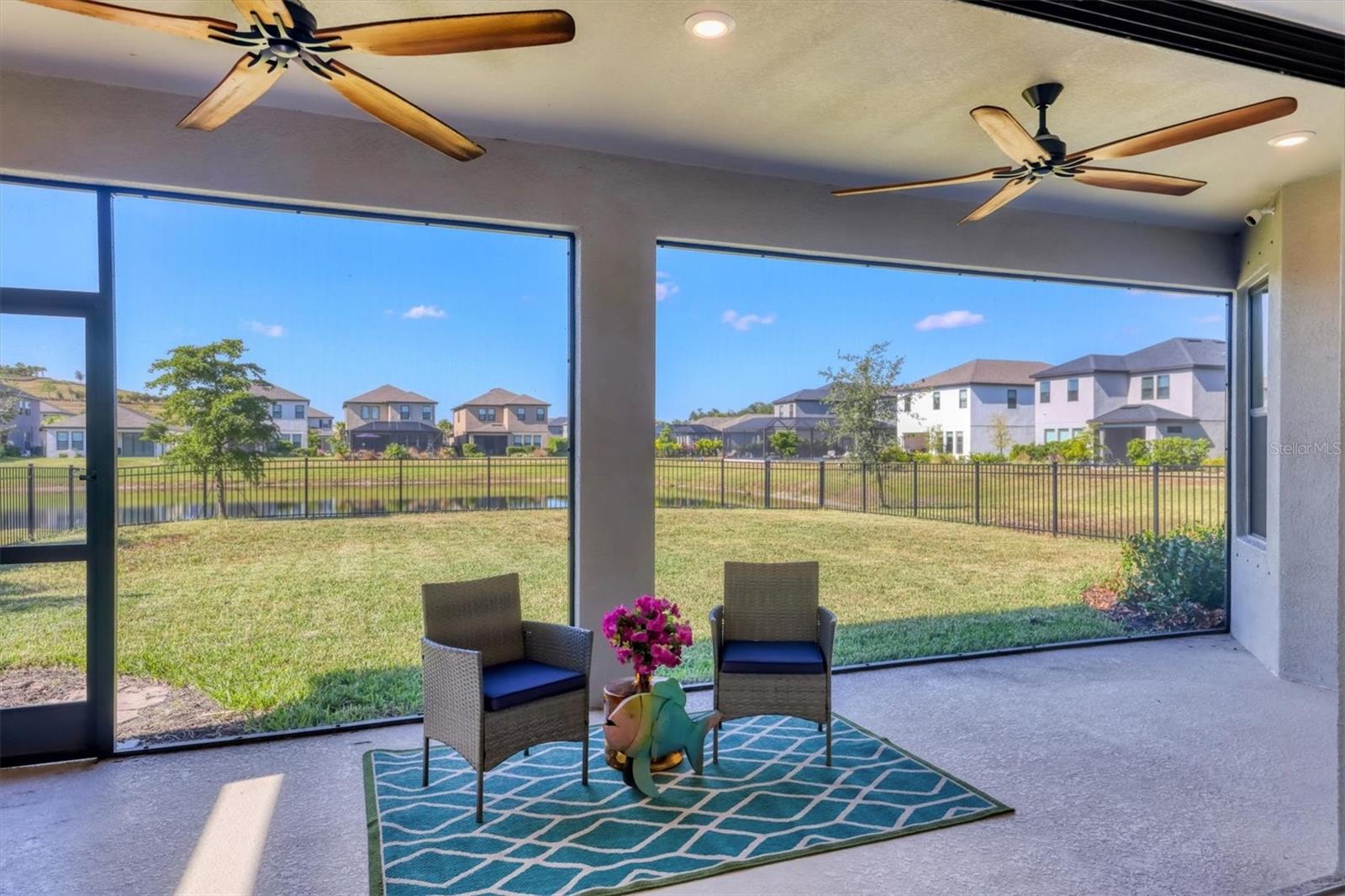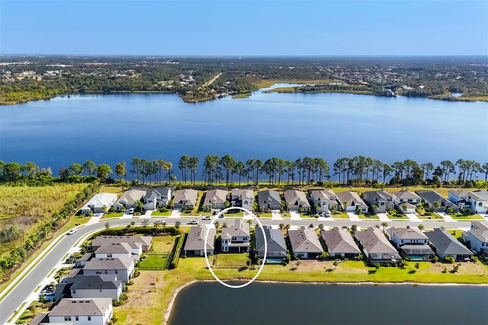 Welcome to the gated community of Grandview at the Heights where luxury and nature converge at this magnificent 2023-built five-bedroom, four-bath residence, with additional office and second story bonus room. Showcasing 3, 422 sq ft of thoughtfully designed space on a premium lake-view lot, this home blends modern comfort, upscale finishes, and seamless indoor–outdoor living. The expansive backyard offers sweeping water views and ample room for a future pool. The open-concept kitchen is an entertainer’s dream, highlighted by quartz countertops, designer tile backsplash, substantial cabinetry, a working island with storage and seating, a farmhouse sink, and built-in stainless steel appliances, including a gas cooktop, built-in oven, microwave, convection oven, and a Bosch four-door refrigerator. A charming bay window in the kitchen breakfast area frames tranquil lake views and overlooks the large fenced backyard. The kitchen flows effortlessly into an airy, sunlit family room featuring a dramatic “disappearing” wall of glass that opens fully to the panoramic screened lanai. Designed for year-round enjoyment, the lanai includes a pre-plumbed summer kitchen and two distinctive ceiling fans—ideal for al fresco dining, sunset watching, or hosting gatherings with ease. The main level also includes a private en-suite bedroom and a spacious, light-filled office with French doors. Wood-look plank tile runs throughout the main floor for a cohesive and contemporary feel. Upstairs, retreat to the serene primary suite featuring a private screened balcony. The spa-inspired bath offers dual sinks, a relaxing soaking tub, and an oversized shower. Three additional lake-view bedrooms, a large bonus/game room, an upstairs laundry room, and two full baths complete the second floor. Residents of Grandview at The Heights enjoy an array of resort-style amenities, including a kayak launch on Ward Lake, sparkling community pool, outdoor kitchen with grill, playground, dog park, basketball courts, and scenic walking trails. The location is unmatched—just minutes from UTC shopping, world-famous beaches, downtown Sarasota, Lakewood Ranch Main Street, and Waterside. With its exceptional layout, refined finishes, and striking lake views, this home offers the perfect blend of luxury living and effortless Florida lifestyle.