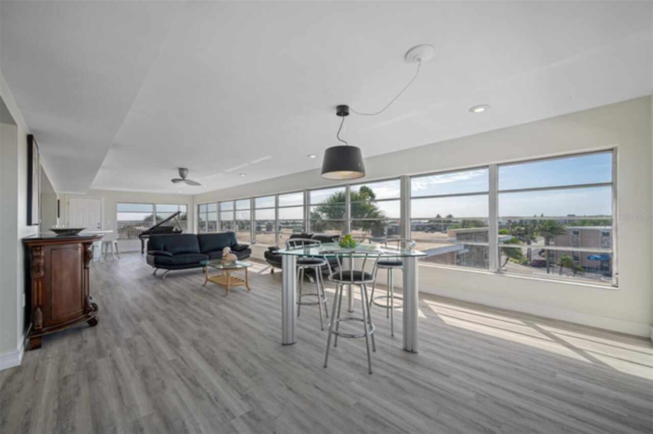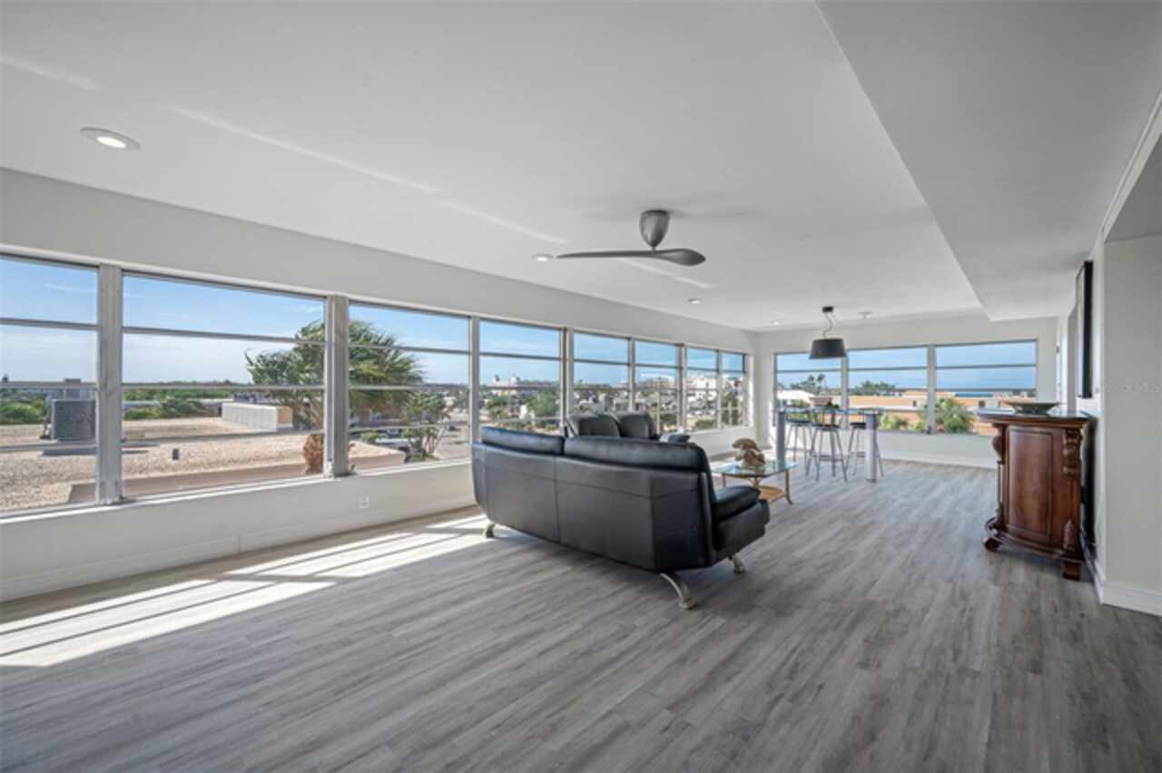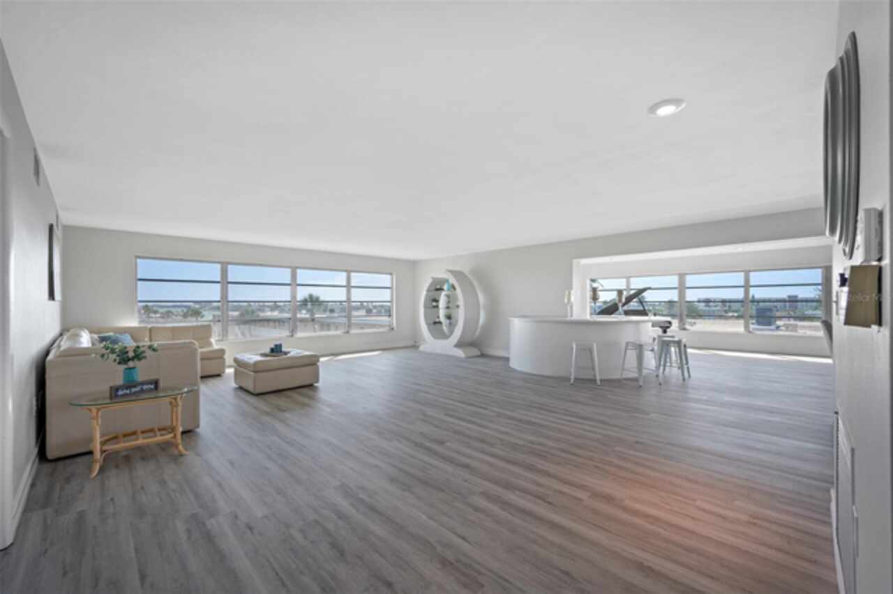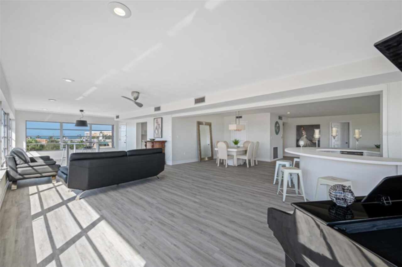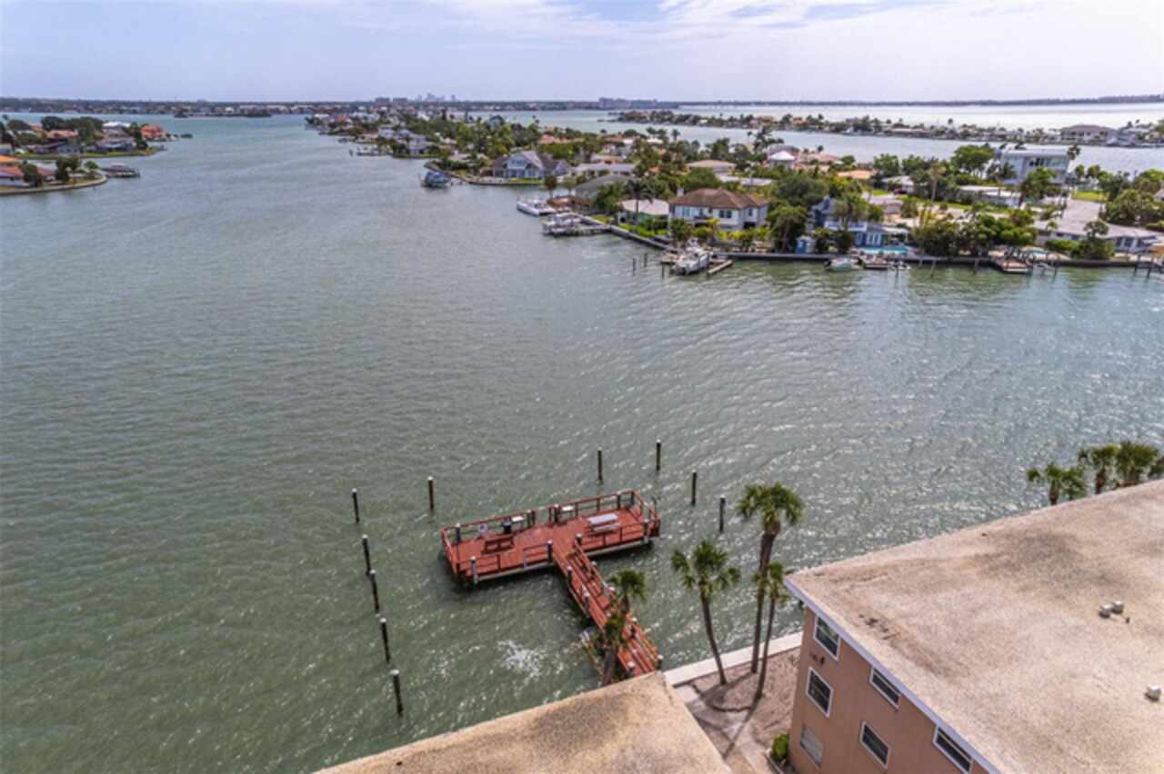 *Exceptional Penthouse Living at The Sylvette, St. Pete Beach** Seize this rare opportunity to own the *one and only* penthouse at The Sylvette, a coveted gem in Saint Pete Beach. Ride the elevator to the top floor and step into a spacious, open-concept masterpiece with unparalleled, panoramic views of both the Gulf of Mexico and the Intracoastal Waterway. This corner unit offers breathtaking sights from every room.The elegant layout includes a formal living and dining room, a stunning lounge area, and a unique circular bar, perfect for entertaining. A generous open-air balcony lets you savor the ocean breeze and endless horizons.This penthouse also features two oversized bedrooms with ample closet space. 2 full bathrooms, and a half bath. Additionally, you'll enjoy two deeded covered parking spaces, a private storage unit. The furnishings are negotiable should you want a fully turnkey option. This is the only unit at The Sylvette with an in-unit laundry for added convenience.Recent updates include fresh paint, new luxury plank flooring, and a recently upgraded HVAC system.Located just across the street from the Gulf, The Sylvette community offers an array of amenities: two pools, shuffleboard courts, community boat slips, and lush, tropical landscaping that creates a true Tropical oasis. With quick access to I-275, Pinellas Bayway, and downtown St Petersburg as well as shopping, dining, and Publix nearby, this one-of-a-kind penthouse is perfectly positioned for luxury and convenience. Don’t miss your chance to experience penthouse living in St. Pete Beach—schedule your appointment today!