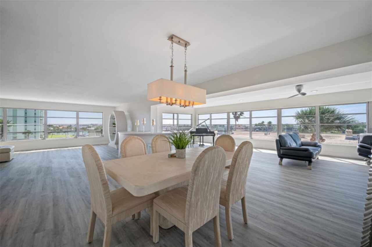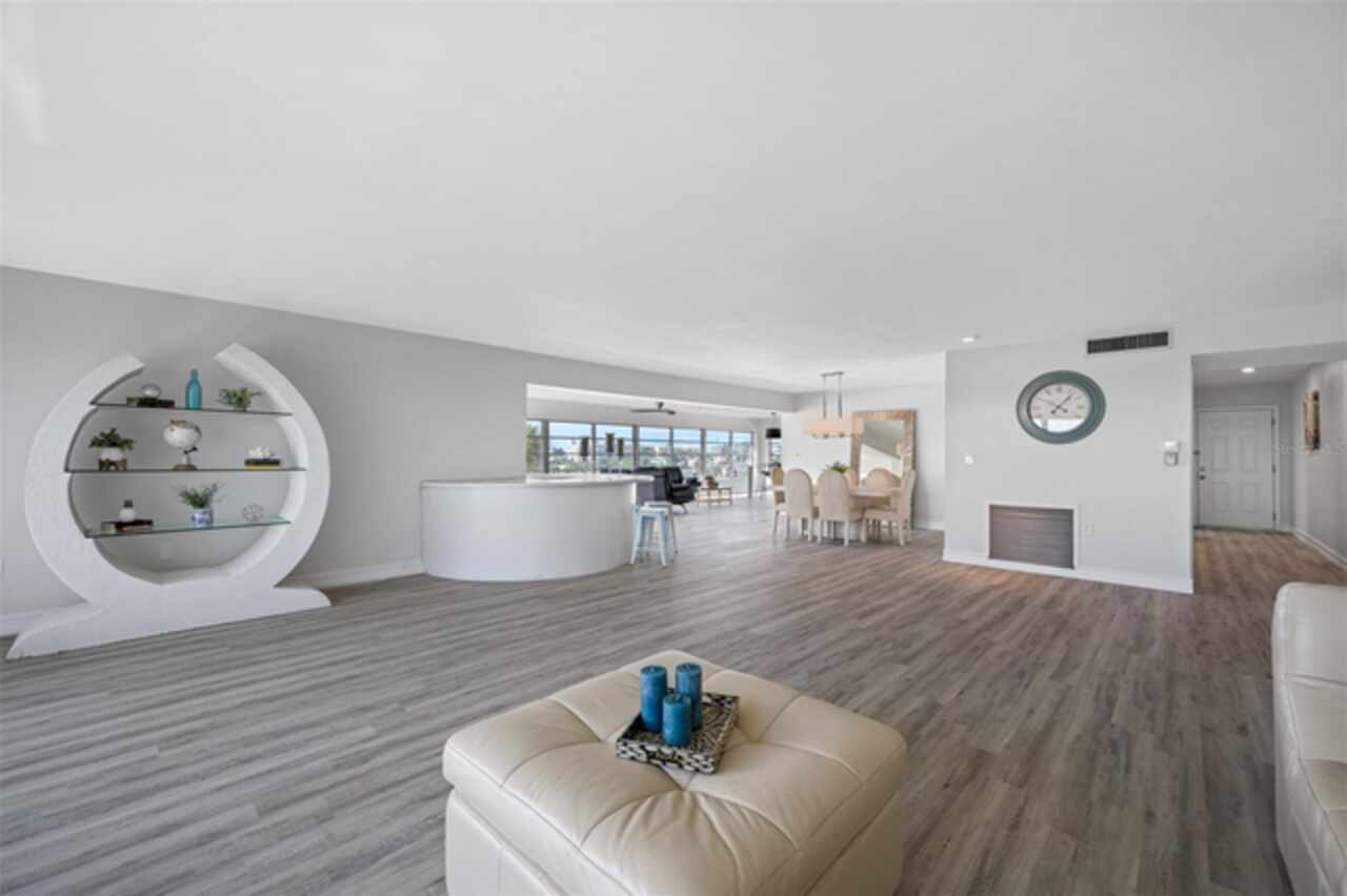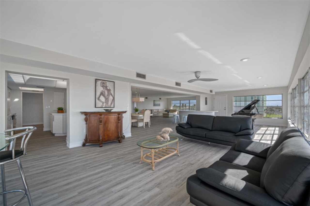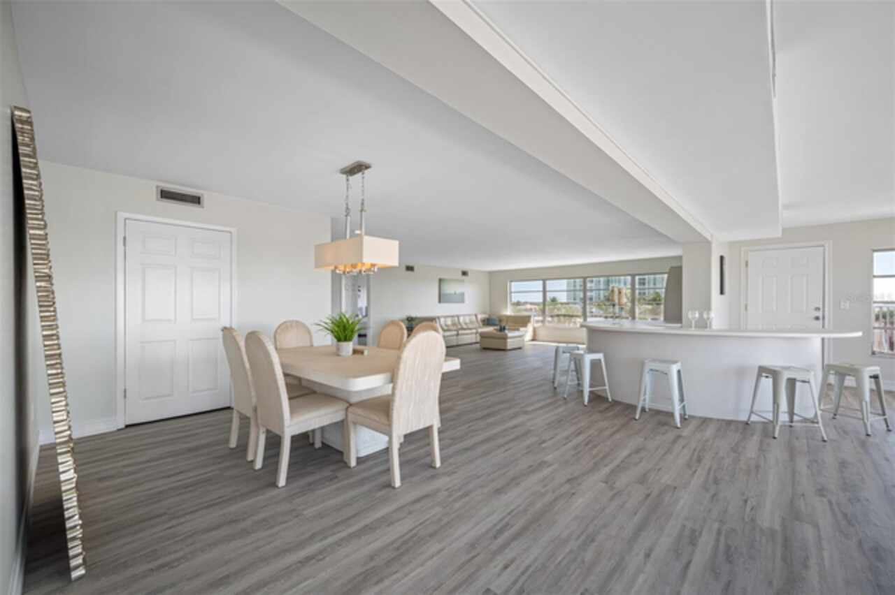 *Exceptional Penthouse Living at The Sylvette, St. Pete Beach** Seize this rare opportunity to own the *one and only* penthouse at The Sylvette, a coveted gem in Saint Pete Beach. Ride the elevator to the top floor and step into a spacious, open-concept masterpiece with unparalleled, panoramic views of both the Gulf of Mexico and the Intracoastal Waterway. This corner unit offers breathtaking sights from every room.The elegant layout includes a formal living and dining room, a stunning lounge area, and a unique circular bar, perfect for entertaining. A generous open-air balcony lets you savor the ocean breeze and endless horizons.This penthouse also features two oversized bedrooms with ample closet space. 2 full bathrooms, and a half bath. Additionally, you'll enjoy two deeded covered parking spaces, a private storage unit. The furnishings are negotiable should you want a fully turnkey option. This is the only unit at The Sylvette with an in-unit laundry for added convenience.Recent updates include fresh paint, new luxury plank flooring, and a recently upgraded HVAC system.Located just across the street from the Gulf, The Sylvette community offers an array of amenities: two pools, shuffleboard courts, community boat slips, and lush, tropical landscaping that creates a true Tropical oasis. With quick access to I-275, Pinellas Bayway, and downtown St Petersburg as well as shopping, dining, and Publix nearby, this one-of-a-kind penthouse is perfectly positioned for luxury and convenience. Don’t miss your chance to experience penthouse living in St. Pete Beach—schedule your appointment today!