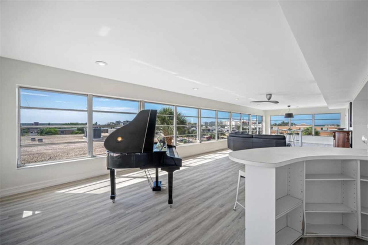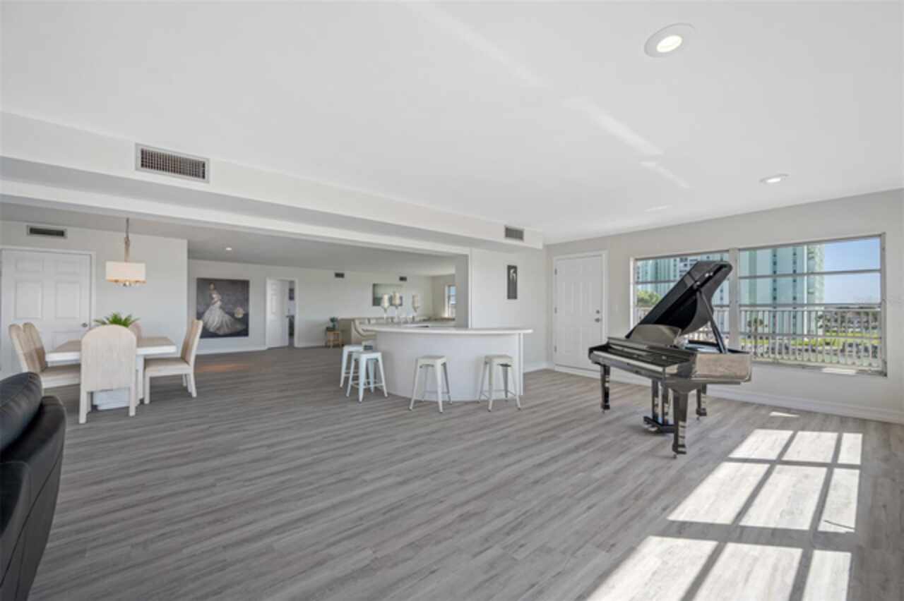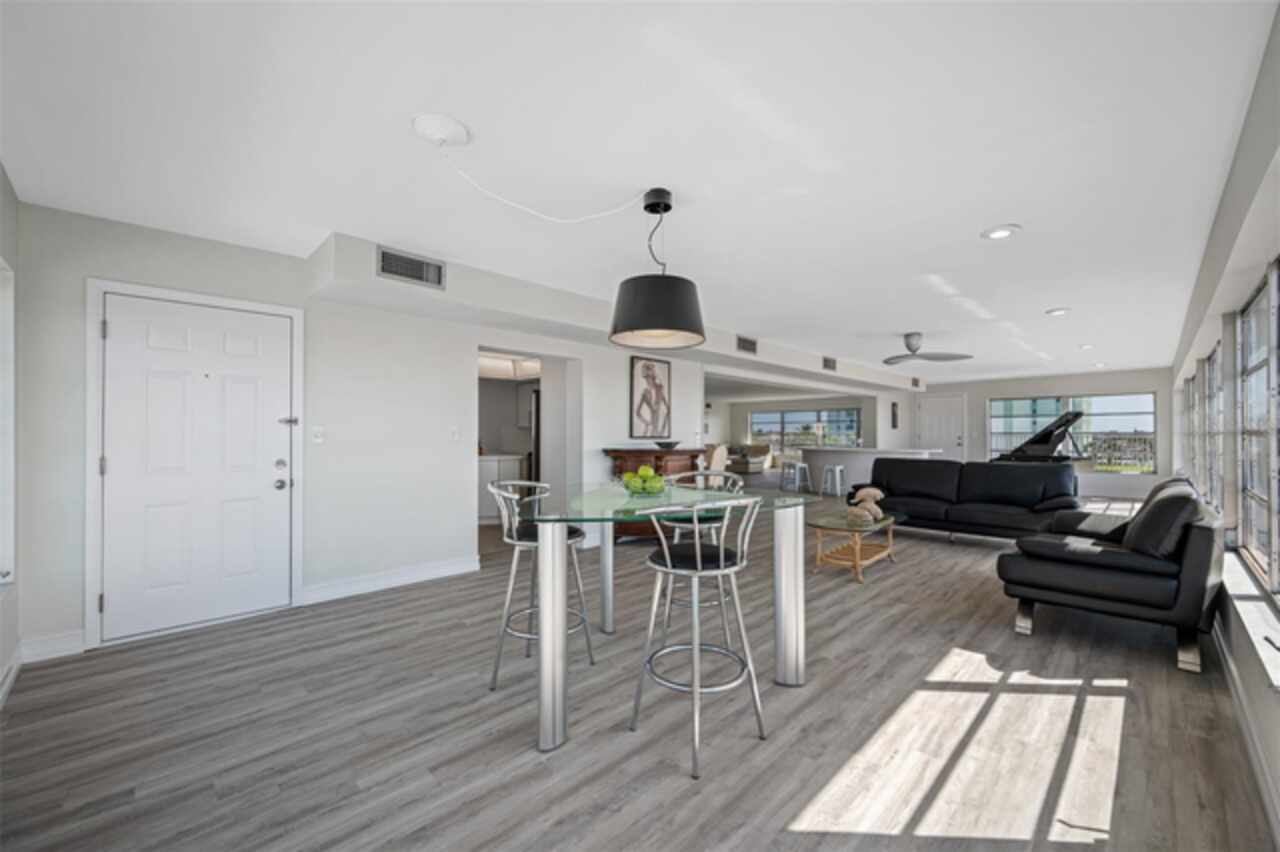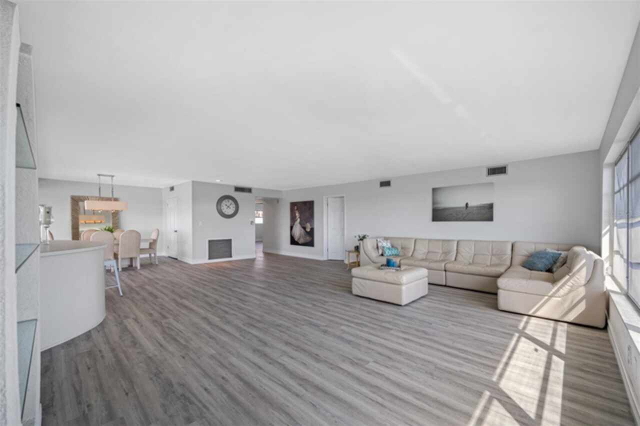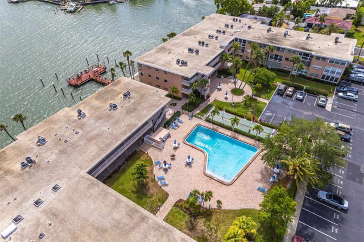 *Exceptional Penthouse Living at The Sylvette, St. Pete Beach** Seize this rare opportunity to own the *one and only* penthouse at The Sylvette, a coveted gem in Saint Pete Beach. Ride the elevator to the top floor and step into a spacious, open-concept masterpiece with unparalleled, panoramic views of both the Gulf of Mexico and the Intracoastal Waterway. This corner unit offers breathtaking sights from every room.The elegant layout includes a formal living and dining room, a stunning lounge area, and a unique circular bar, perfect for entertaining. A generous open-air balcony lets you savor the ocean breeze and endless horizons.This penthouse also features two oversized bedrooms with ample closet space. 2 full bathrooms, and a half bath. Additionally, you'll enjoy two deeded covered parking spaces, a private storage unit. The furnishings are negotiable should you want a fully turnkey option. This is the only unit at The Sylvette with an in-unit laundry for added convenience.Recent updates include fresh paint, new luxury plank flooring, and a recently upgraded HVAC system.Located just across the street from the Gulf, The Sylvette community offers an array of amenities: two pools, shuffleboard courts, community boat slips, and lush, tropical landscaping that creates a true Tropical oasis. With quick access to I-275, Pinellas Bayway, and downtown St Petersburg as well as shopping, dining, and Publix nearby, this one-of-a-kind penthouse is perfectly positioned for luxury and convenience. Don’t miss your chance to experience penthouse living in St. Pete Beach—schedule your appointment today!