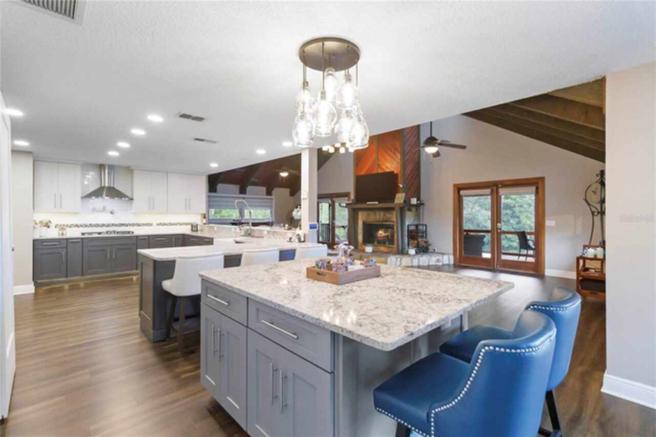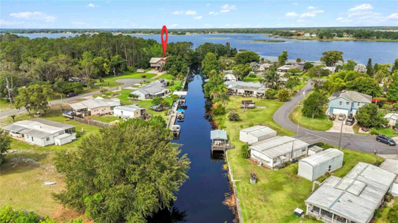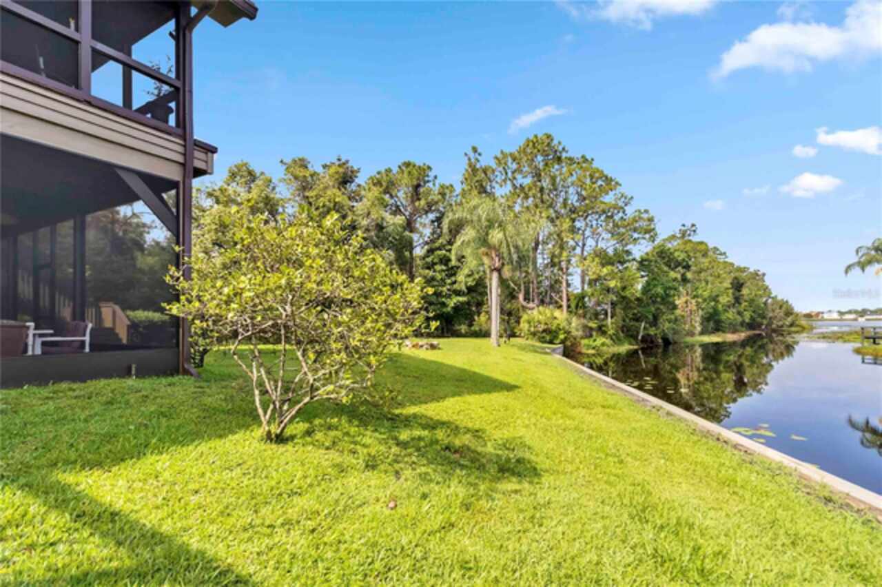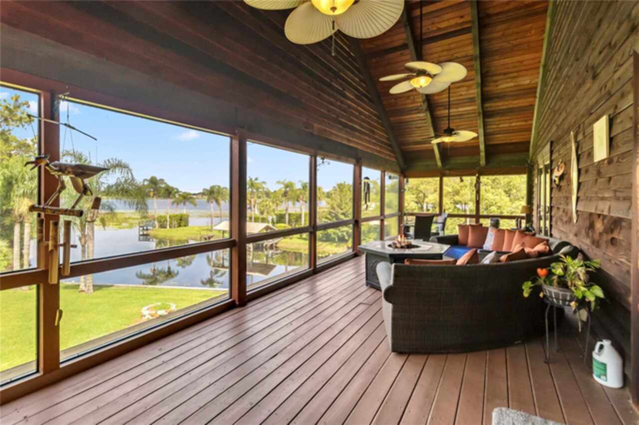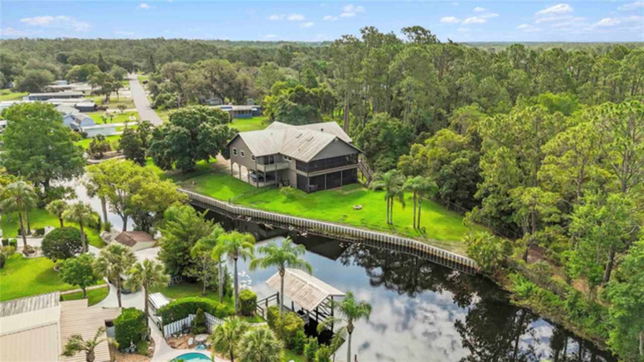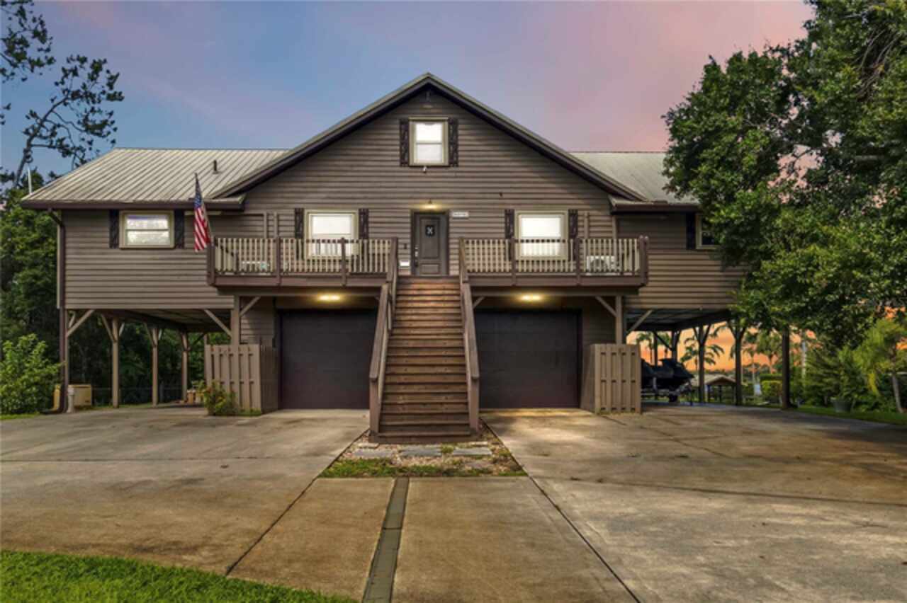This stunning Elevated Lakefront home is a RARE find. Perfectly situated on Lake Lizzie with Conservation area on one side and Waterfront on the other. This 5-bedroom, 3-bathroom home invites Relaxation and Comfort. Enter from the stairs leading to the front door of this Completely Remodeled one-of-a-kind home and walk through the Entryway that leads into an open concept kitchen, dining and living area with vaulted wood ceilings and a Large Stone Wood Burning Fireplace. The area is light and bright with skylights and double French doors, with Hunter-Douglas (2019/2020) remote powered shades on the upper level. The Chef’s kitchen is well appointed, including quartz countertops, ceramic farmhouse sink, GE (‘Café’) double ovens, microwave, 5 burner gas stovetop and hood, Tru cabinets, Bosch dishwasher and built in pot filler. After dinner, relax and enjoy the sunsets and wildlife, on the large newly screened in porch. There are additional lake views on the unscreened decks with sliding glass doors off the dining area and the master suite. Take the spiral staircase to the In-Law apartment, complete with it’s own full-sized kitchen and bath. The apartment has it’s own Newly Screened Porch with a Large Swim Spa installed in 2021, West facing on the lake. The entire home is set up for Home Automation. The most recent Upgrades to the home include Metal Roof, Front Door, Attic Insulation for Energy Efficiency, Rebuilt Seawall, Fencing, Fire Pit. There is also a Generac 24kW generator installed in 2017 that seamlessly keeps power on throughout the home. There is a Community Boat Ramp Conveniently located adjacent to the property.