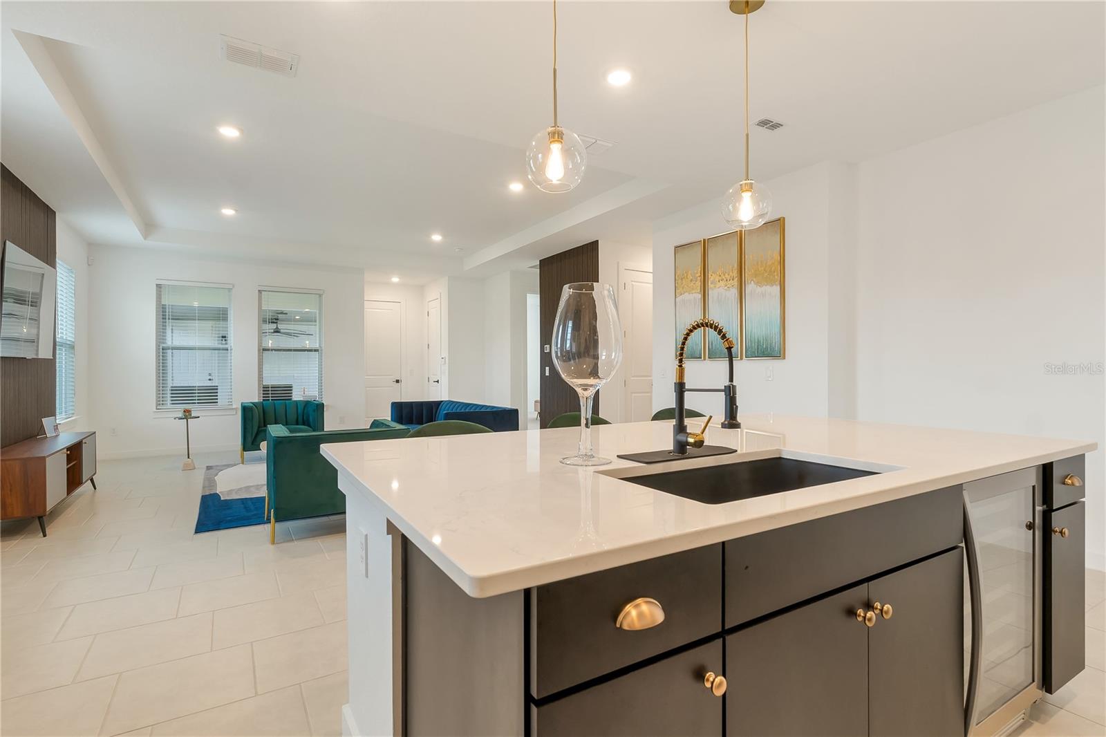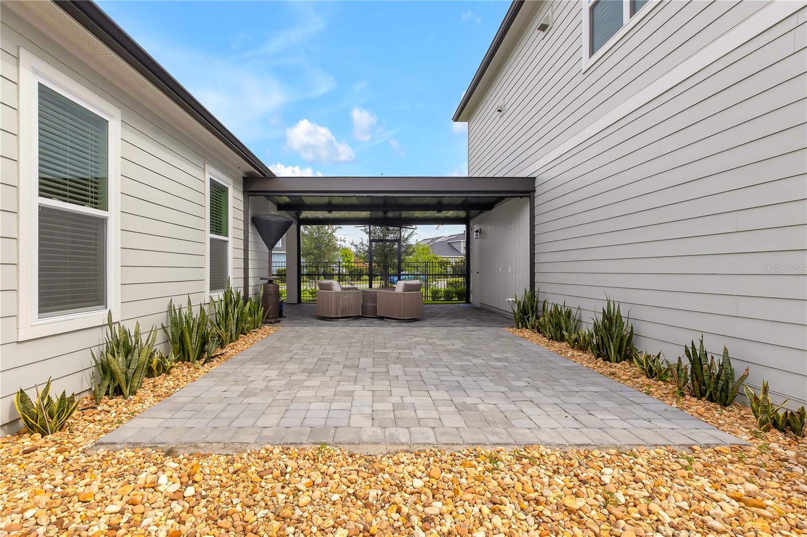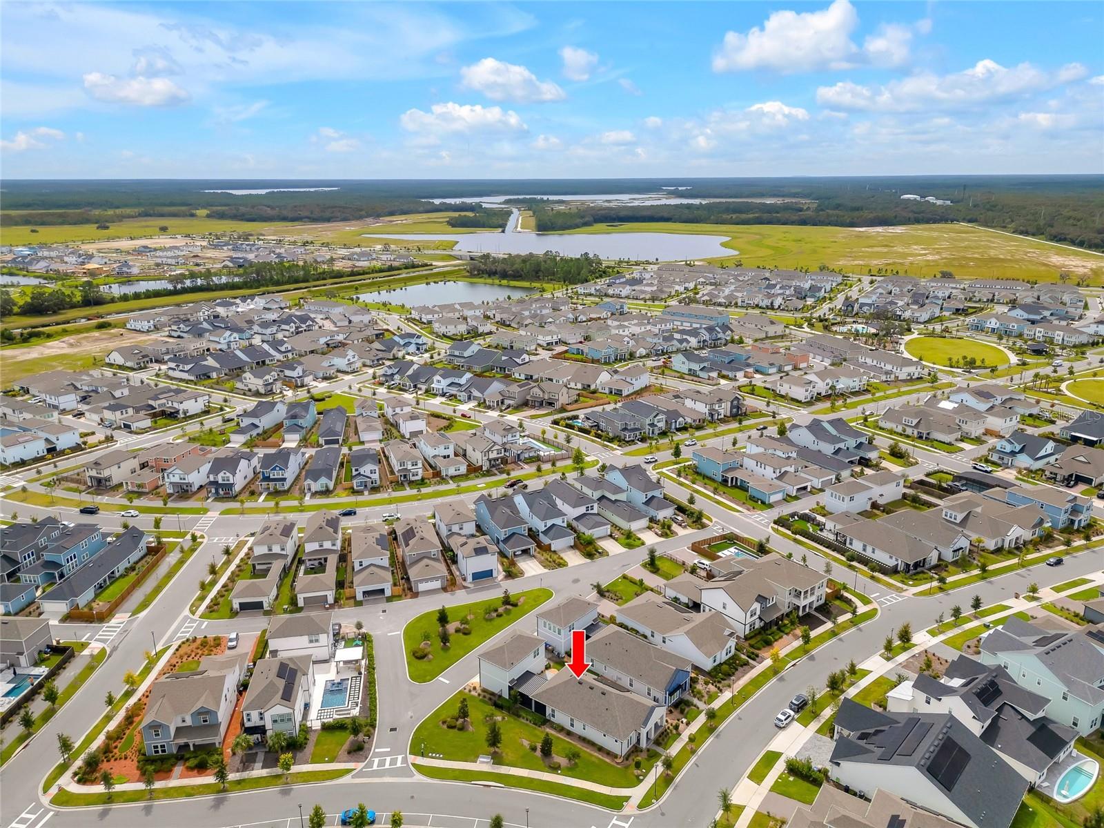 Fall in love with this stunning modern 4 bedrooms, office/den and 3.5 bathroom home. The main home features 3-bedroom, 2.5-bath single-story home and a detached 1-bedroom, 1-bath garage apartment, all nestled in the community of Weslyn Park at Sunbridge. The main house offers just under 2, 100 sq. ft. of thoughtfully designed living space with high ceilings, beautiful tile flooring, and modern neutral paint throughout. The open floor plan includes a versatile bonus room ideal for an office, study, or guest suite, and a gourmet kitchen equipped with quartz countertops, stainless steel appliances, a large center island with a sink and breakfast bar, and ample upgraded kitchen cabinets. The spacious family room features a tray ceiling and seamlessly connects to the kitchen and opens to a covered back patio. The private primary suite is located at the rear of the home and features a, large walk-in closet, and a luxurious ensuite bath with dual vanities and a large shower. Sunbridge is a community founded on the idea that spending time in nature is more than an every-once-in-a-while luxury. It’s an everyday essential. What’s coming to life here is more than just beautiful new homes. It’s also workplaces. Eateries. Parks and pools. Shops and schools. And one more ingredient: an awe-inspiring, life-changing abundance of Florida nature. Two additional bedrooms share a full hall bath. At the back of the property, enjoy the paved covered pergola with an electric screen, and a detached 3-car garage, which includes a second-floor garage apartment. This charming 1-bedroom, 1-bath apartment boasts, an open-concept living space, granite countertops, stainless steel appliances, a kitchen island with breakfast bar, a spacious bedroom with closet, and a full bathroom with shower and laundry closet with washer and dryer—ideal for guests, extended family, or rental income.
